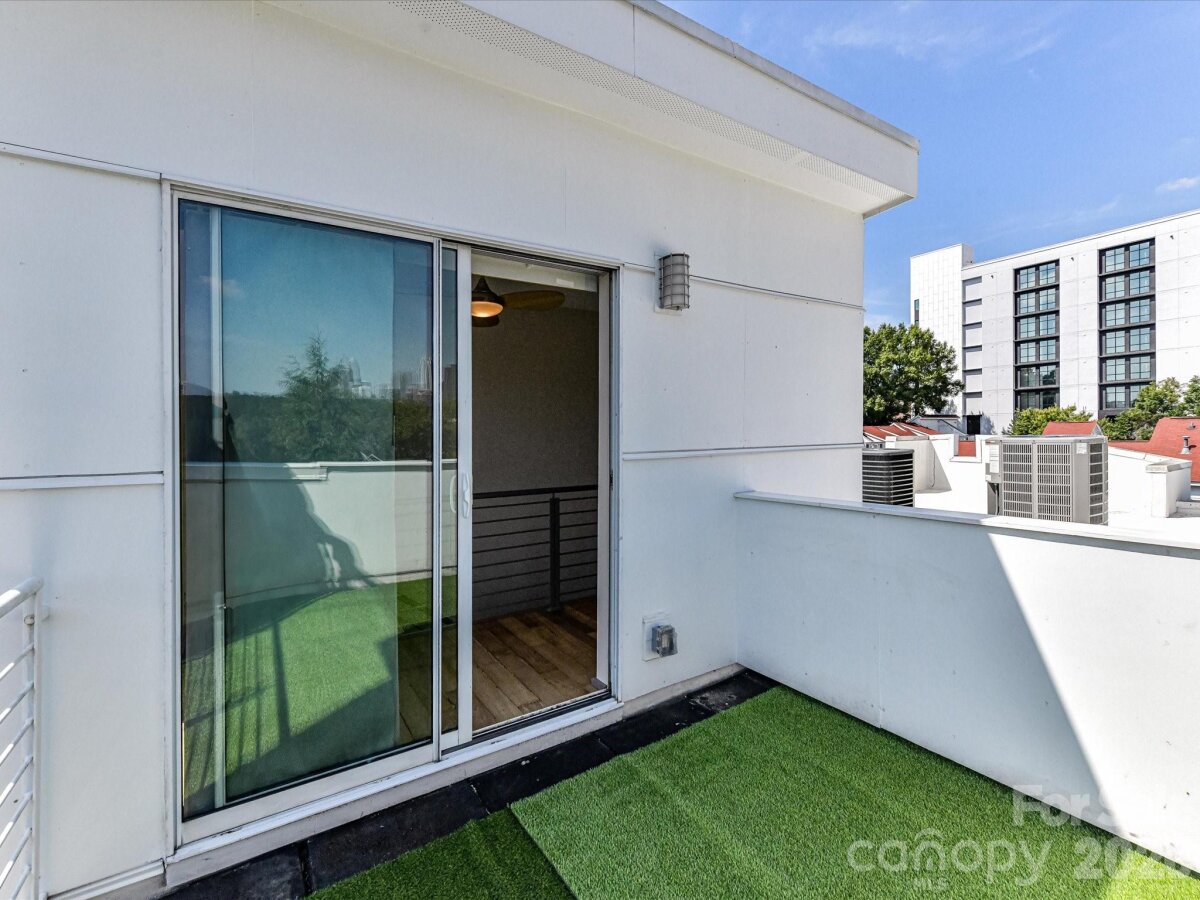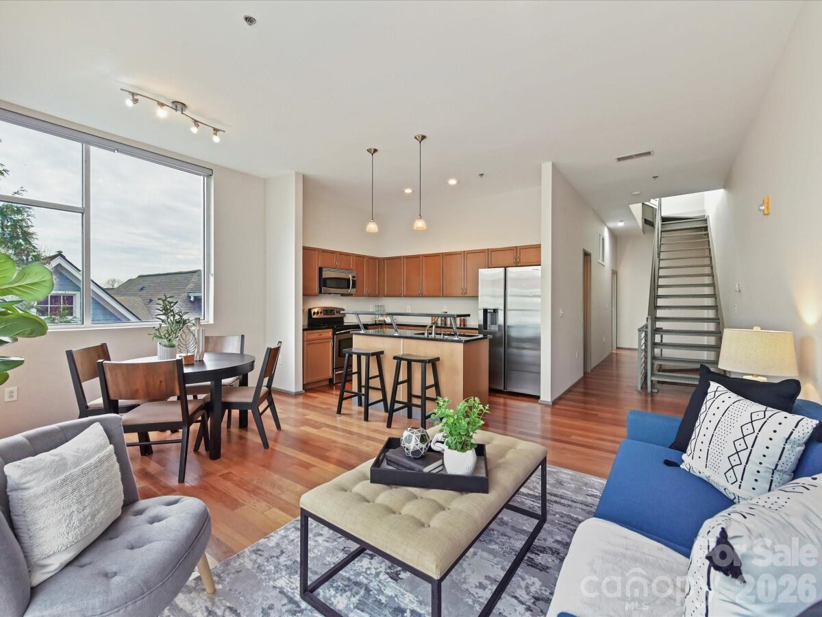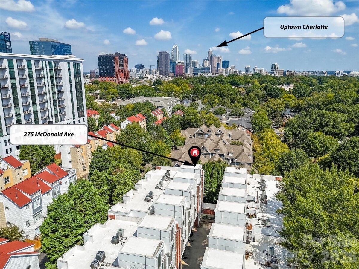 **The Seller is offering to prepay $15K, with an acceptable offer, toward temporarily elevated HOA dues related to a completed exterior community project**Welcome to Lofts Dilworth, a contemporary condo complex located in the heart of Dilworth and just minutes to Southend! Enjoy the wonderful walkability to some of Dilworth's best restaurants or enjoy the ease of shopping at the Atherton Mill in Southend. This 3 bedroom 3 FULL bath condo is a rare floorplan in this complex and with it being an end unit, located closest to the city, you cannot beat the Uptown Charlotte & Southend skyline views from your very own rooftop terrace! The main level consists of two spacious bedrooms, each with their own ensuite bath and a laundry room that features a stackable washer & dryer which convey with the unit. The upper level features a sleek and modern kitchen that is open to the main living room and breakfast nook and then a third bedroom with it's own ensuite third full bath. Enjoy the lovely exterior views from every level out the floor to ceiling windows that flood the property with natural light. Hard to find this price for this much square footage in the heart of Dilworth! This condo has been freshly painted throughout and had a new HVAC unit installed in 2024. The windows have treatments/shades that will convey.