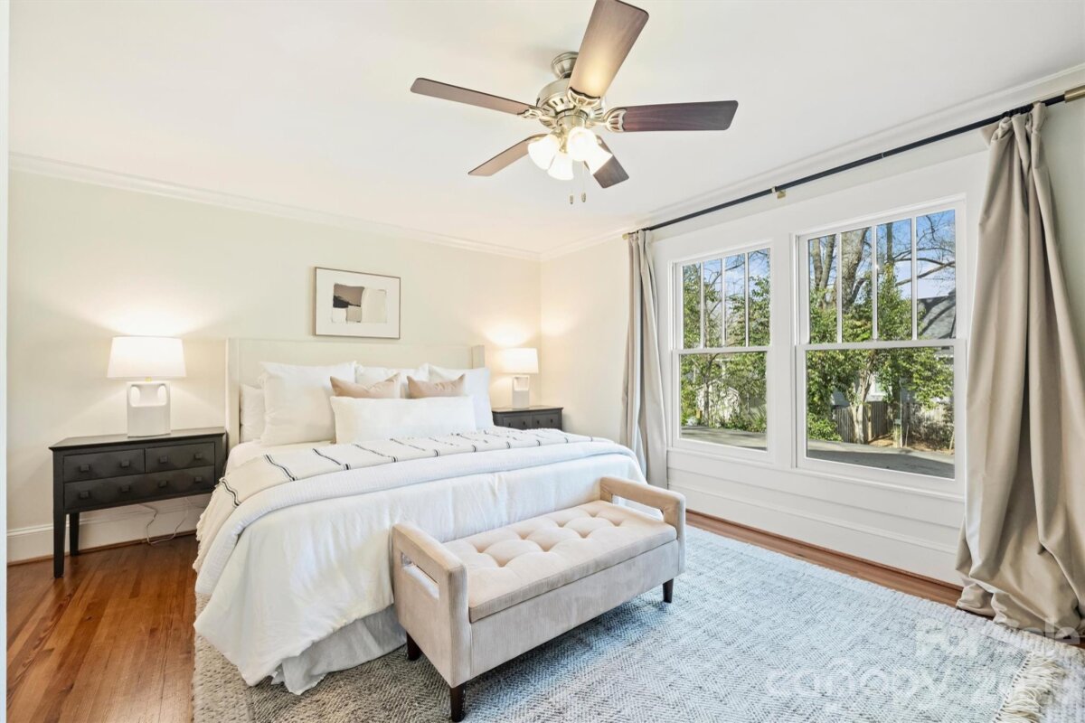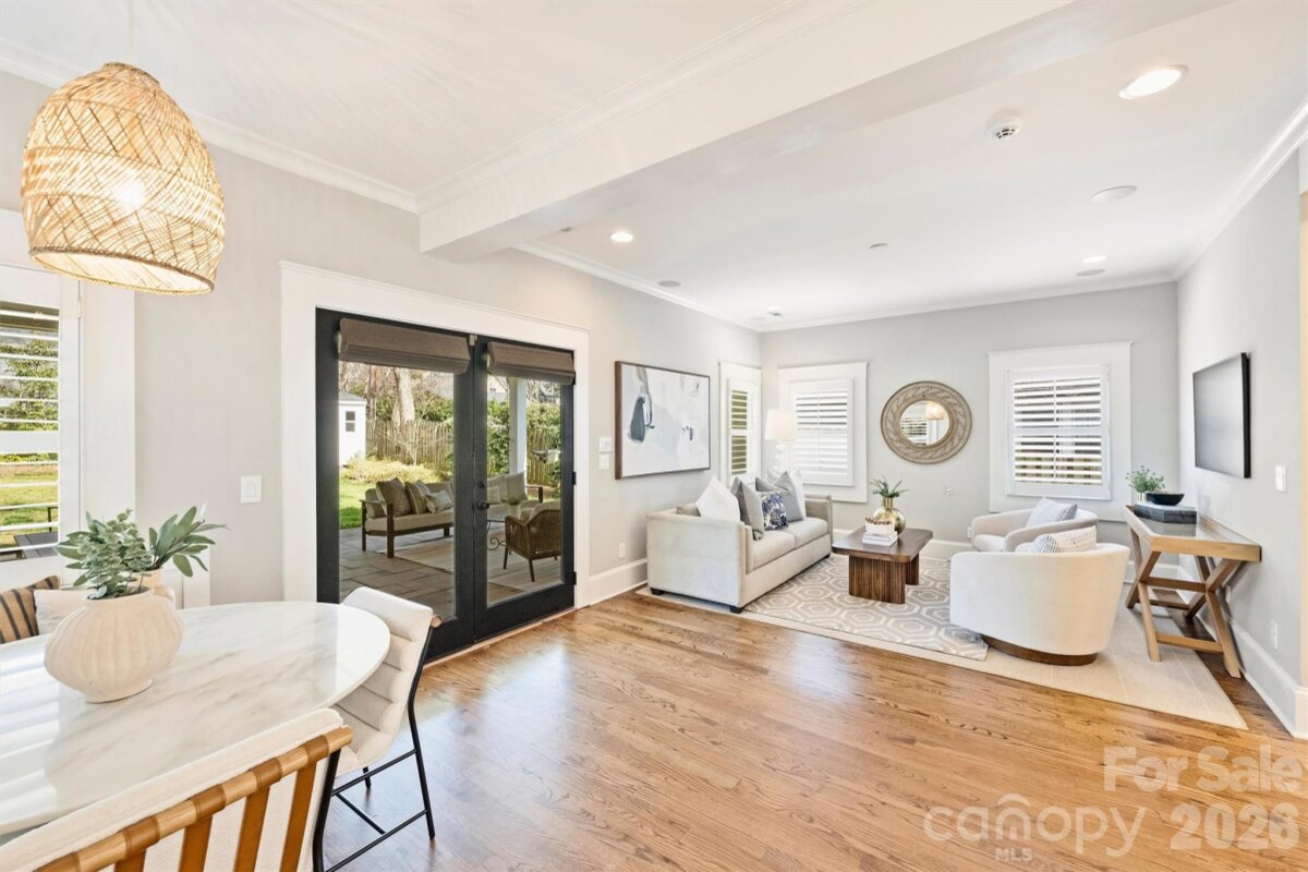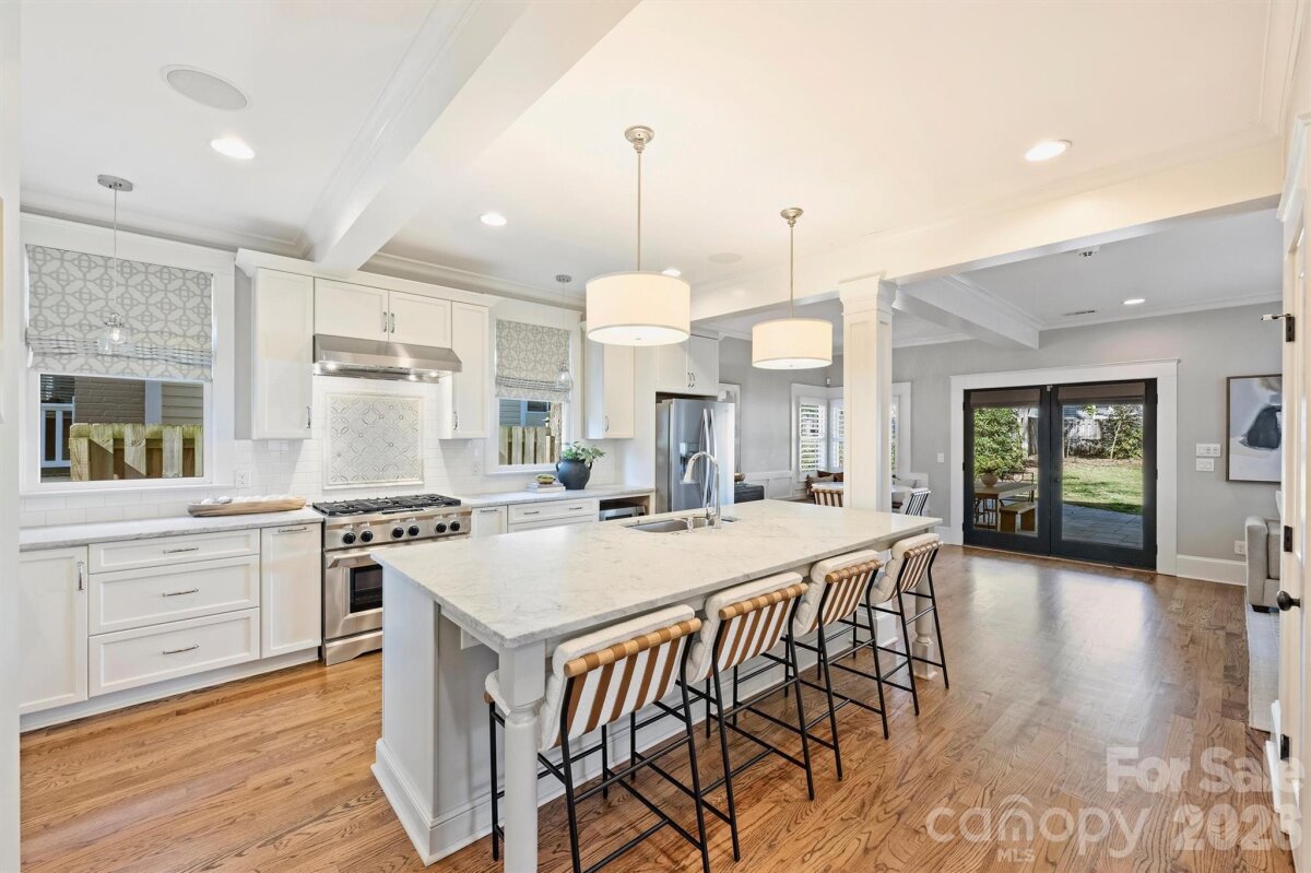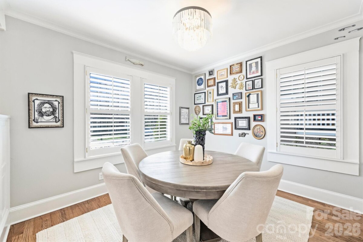 Welcome to this beautifully updated home located in Dilworth, one of Charlotte’s most desirable neighborhoods. Built in 1925, this charming residence perfectly blends historic character with modern updates, offering over 2,200 square feet of thoughtfully designed living space. Featuring 3 bedrooms and 2.5 bathrooms, the home showcases tons of natural light, an open floor plan, large backyard and covered outdoor living space.The open-concept main living area flows seamlessly into a well-appointed kitchen featuring a large center island, marble countertops, stainless steel appliances, a gas range, and a cozy breakfast nook. The den opens directly to the expansive covered porch, creating the ideal indoor-outdoor lifestyle. The porch, designed for year-round enjoyment with built-in heaters, overlooks the fully fenced, level backyard.  Upstairs, the spacious primary suite features a walk-in closest and renovated bathroom with a frameless glass walk-in shower, soaking tub, and double vanity.  Home also features a dedicated laundry room, irrigation around home, renovated half bath, 2 sheds, and ample storage in the basement and attic.  Situated in the heart of Dilworth, this home is just moments from South End’s top restaurants, breweries, and shopping, while still offering the charm and tranquility of one of Charlotte’s most beloved historic neighborhoods.