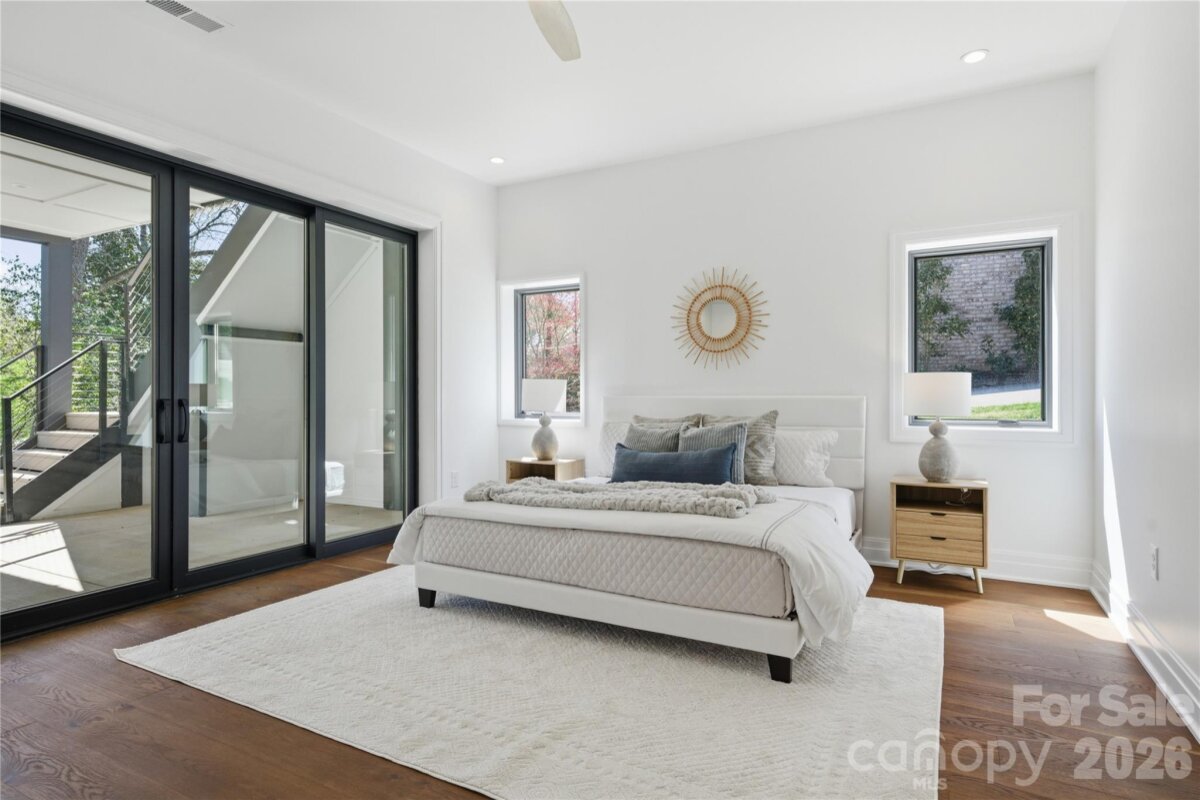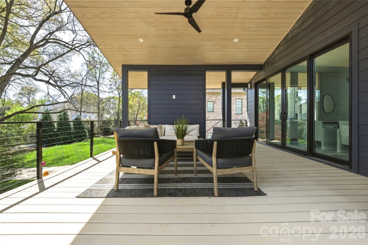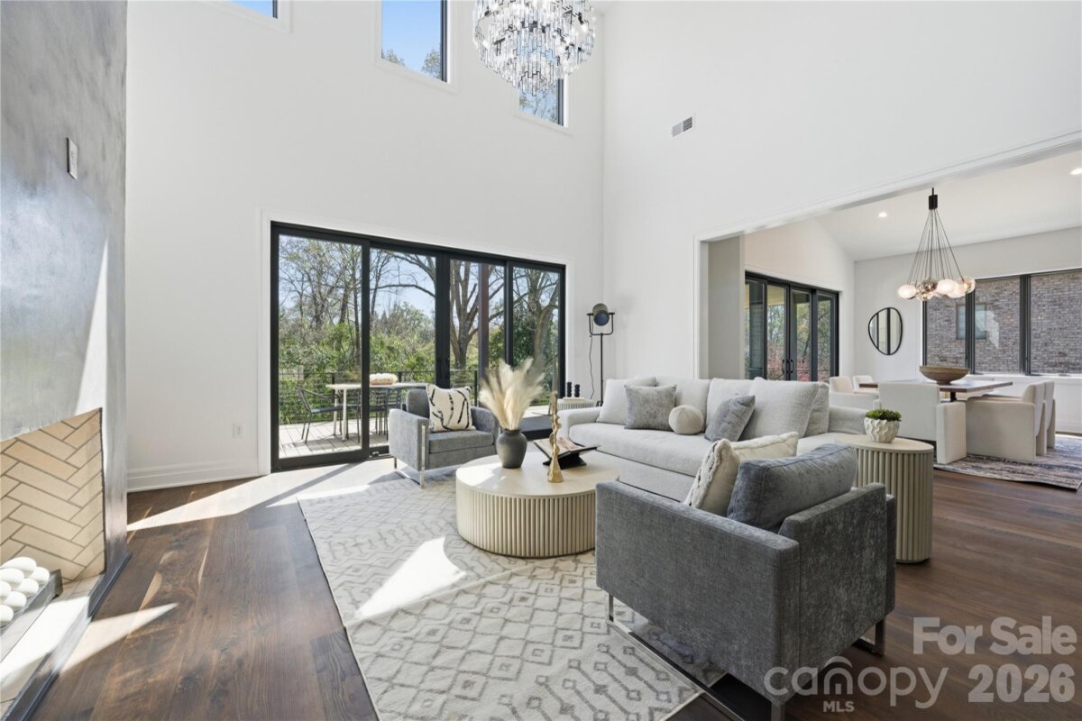 A fresh take on modern living, this stunning new home sits on an oversized lot with peaceful pond views in one of Charlotte’s most desirable neighborhoods. The setting offers a rare mix of privacy and space, with plenty of room to create your dream outdoor retreat. Designed to balance privacy with exceptional livability, the property offers generous outdoor space—perfectly suited for a future pool and a variety of entertaining possibilities. Spanning approximately 5,500 square feet, the thoughtfully designed floor plan flows effortlessly, creating an inviting atmosphere ideal for both everyday living and hosting. Dramatic vaulted ceilings, premium appliances, a striking Isokern fireplace, and a dedicated wine cellar elevate the home’s modern sophistication. Outside you will enjoy multiple covered and open-air spaces that make indoor-outdoor living feel natural and easy—perfect for everything from quiet mornings to lively gatherings. All of this is set in an unbeatable in-town location, close to top schools, Uptown, great restaurants, shopping, and greenways. An optional elevator adds flexibility for the future, with the added possibility for future owners to access from Wrenwood Lane.