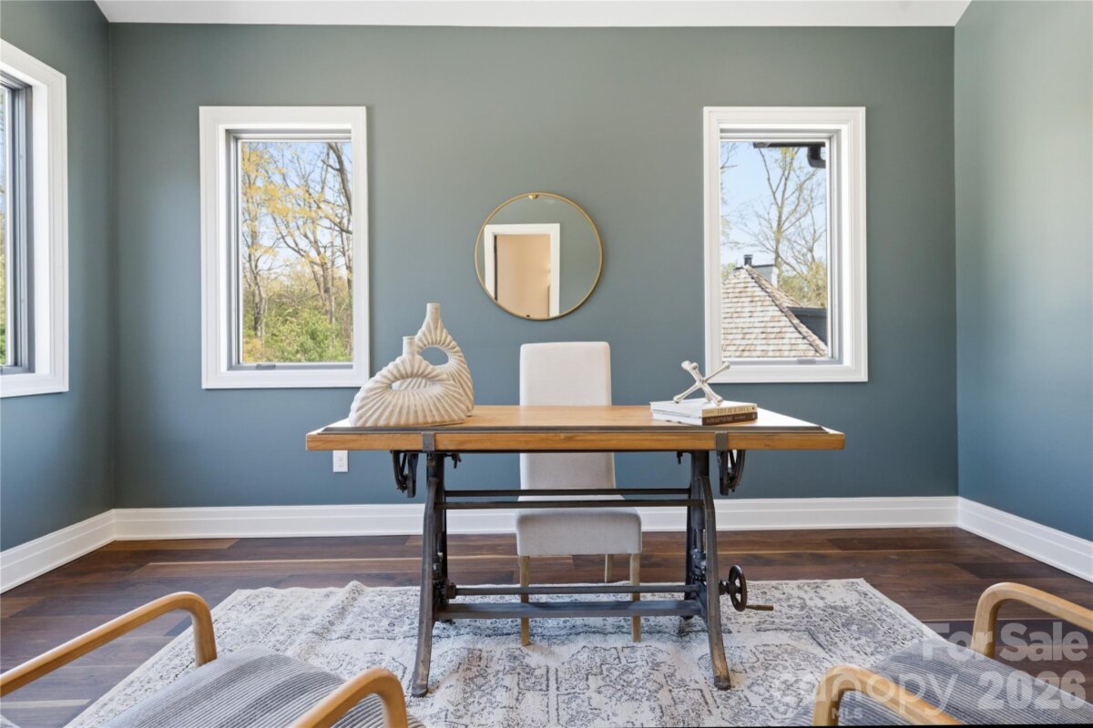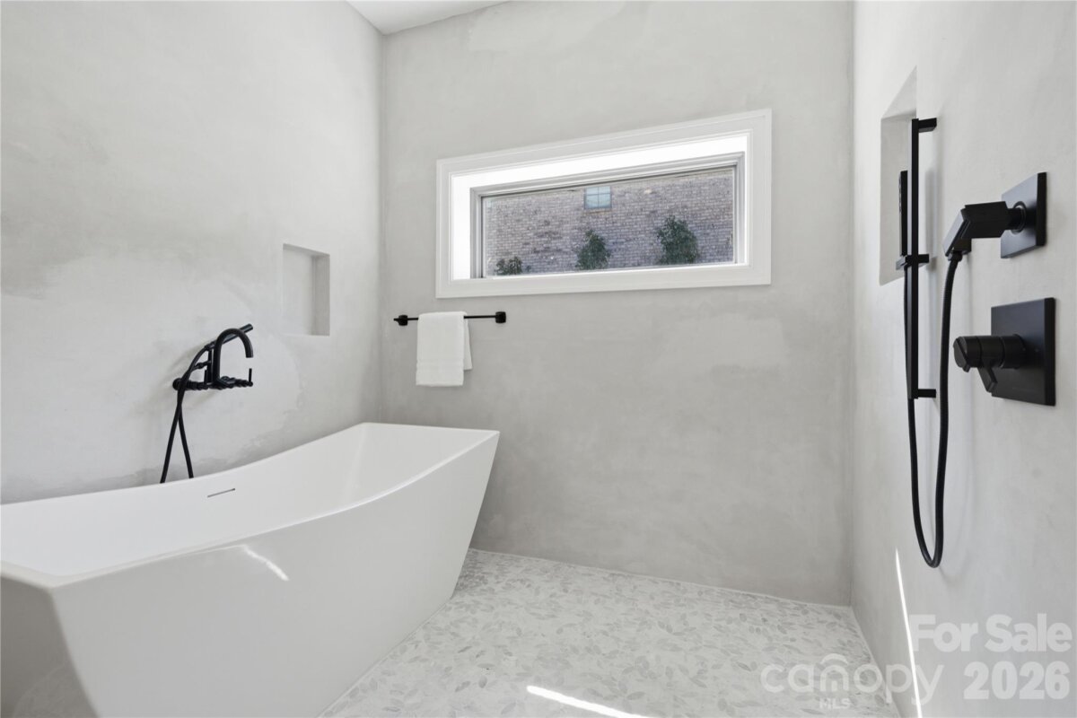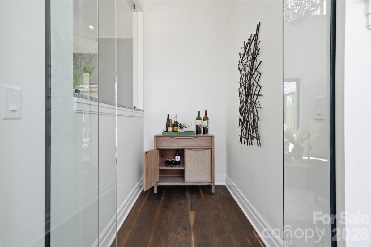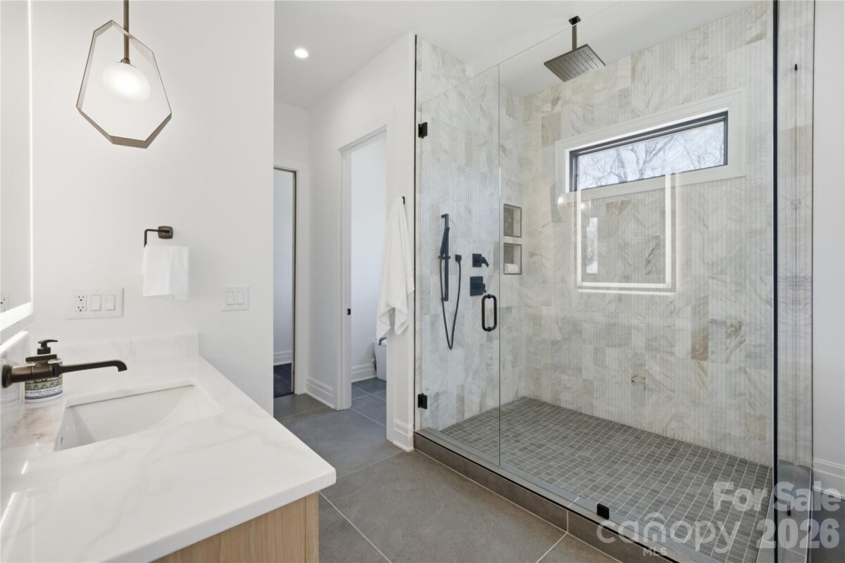 A fresh take on modern living, this stunning new home sits on an oversized lot with peaceful pond views in one of Charlotte’s most desirable neighborhoods. The setting offers a rare mix of privacy and space, with plenty of room to create your dream outdoor retreat. Designed to balance privacy with exceptional livability, the property offers generous outdoor space—perfectly suited for a future pool and a variety of entertaining possibilities. Spanning approximately 5,500 square feet, the thoughtfully designed floor plan flows effortlessly, creating an inviting atmosphere ideal for both everyday living and hosting. Dramatic vaulted ceilings, premium appliances, a striking Isokern fireplace, and a dedicated wine cellar elevate the home’s modern sophistication. Outside you will enjoy multiple covered and open-air spaces that make indoor-outdoor living feel natural and easy—perfect for everything from quiet mornings to lively gatherings. All of this is set in an unbeatable in-town location, close to top schools, Uptown, great restaurants, shopping, and greenways. An optional elevator adds flexibility for the future, with the added possibility for future owners to access from Wrenwood Lane.