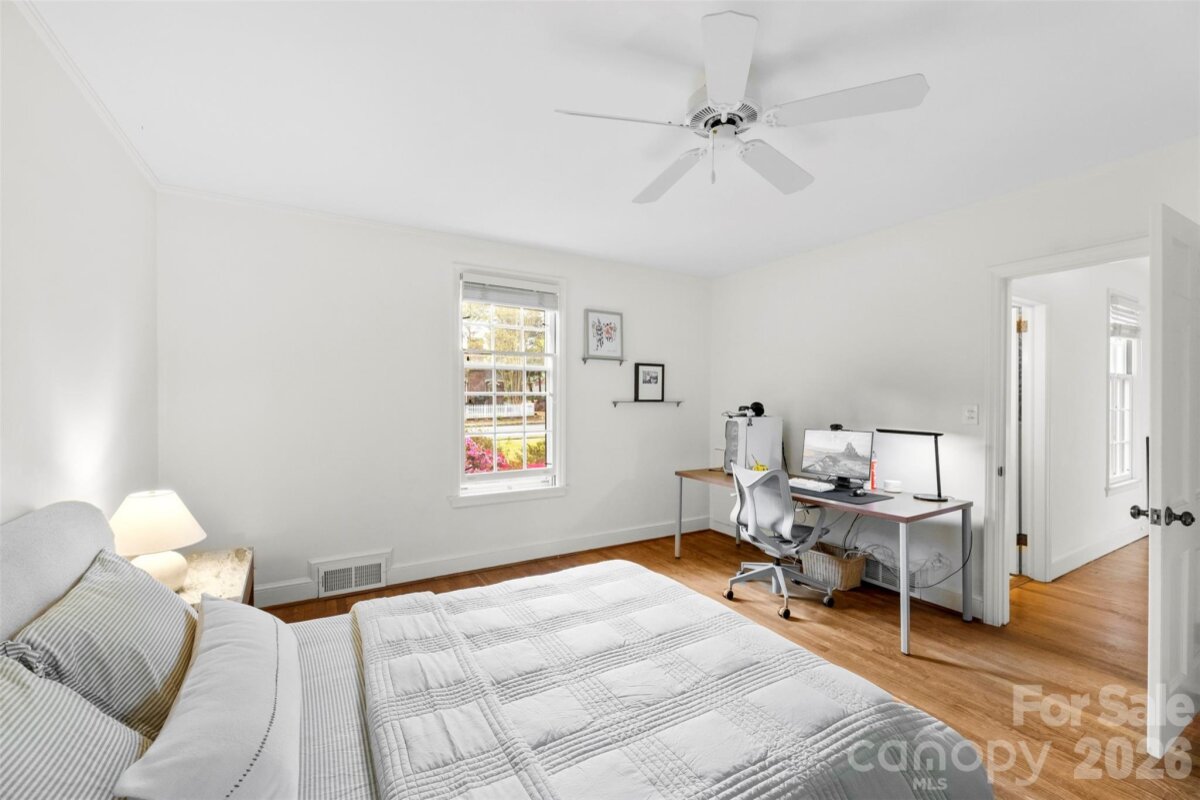 One-of-a-kind Eastover home built from reclaimed brick from Charlotte’s historic Ebenezer Baptist church - rich in character and impossible to duplicate. Set well back from the road on a rare .38-acre lot in the highly sought-after 28207 & Myers Park school district, this property puts you in the center of everything - just steps from Providence Road Sundries and Pasta & Provisions, and minutes to Uptown, Plaza Midwood, NoDa, and all of Charlotte’s best dining, shopping, and entertainment. Inside, the home blends original charm with highly livable space - crown molding, a gas fireplace, custom maple cabinetry, and a standout brick-floored sunroom overlooking the backyard. Beautiful original hardwood floors run throughout the home. The main level includes a large bedroom and full bath, perfect for guests or a home office. Upstairs offers two bedrooms, a renovated bath, a conveniently added laundry area near the bedrooms, and a flexible bonus space with real upside - ideal for a playroom, sewing or hobby room, additional office, or future expansion into a true primary suite.  Out back, a fully fenced yard with driveway gate and plenty of parking creates a private setting ideal for pets, play, or entertaining, along with a detached cottage with HVAC and electricity - perfect for studio, gym, office or creative space. Move in now, renovate over time, or fully expand - properties with this lot size, location and character rarely come to market at this price point. A standout opportunity in the heart of Eastover with both immediate livability and long-term upside.