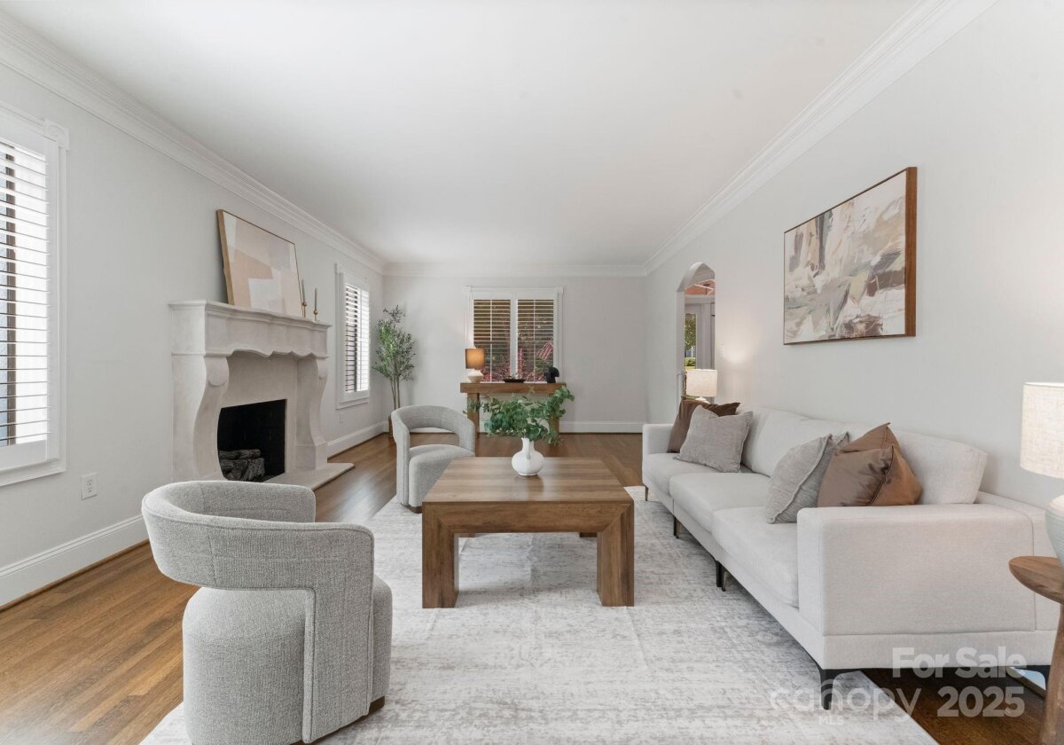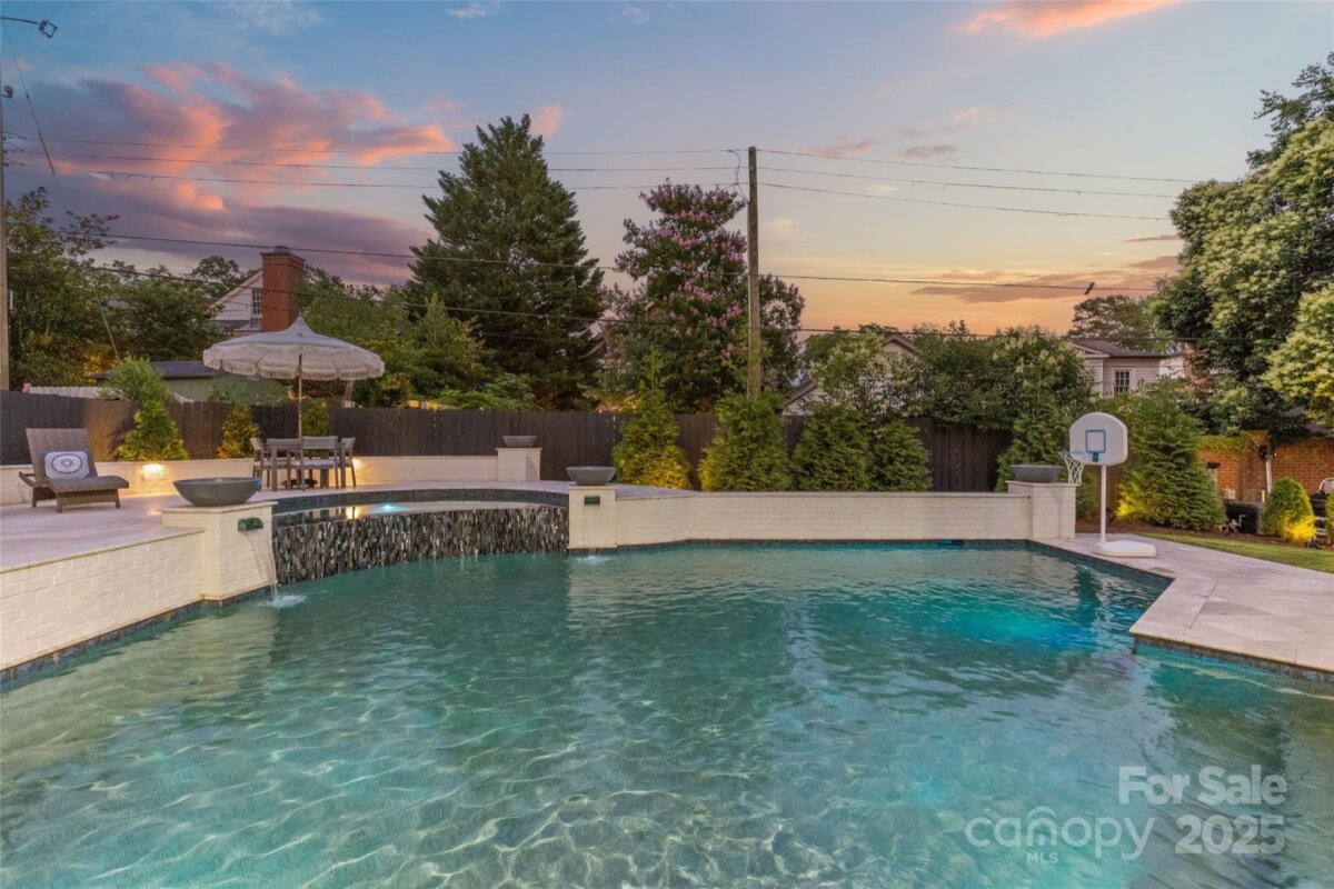 Stately 4 bed, 4.5 bath brick home in Eastover, one of Charlotte's most sought-after neighborhoods. This classic two-story plus basement offers effortless indoor-outdoor living. The main level features an open-concept living room and den with dual stone fireplaces, a gourmet kitchen with richly-stained cabinetry and a center island, and both formal and casual dining areas. The spacious primary suite includes two walk-in closets and a grand en-suite bathroom with separate vanities and a soaking tub. 3 secondary bedrooms, 2 full bathrooms, and a work-from-home space round out the second level. The finished basement adds versatile flex space and has a full bathroom. Hardwood floors, mudroom with built-ins, and a 2-car attached garage enhance the home's functionality. The outdoor space truly shines thanks to the private, gated backyard with multiple seating areas, a sparkling pool with water features, a hot tub and gas fire pit. All just minutes from dining, shops, green spaces, and more!