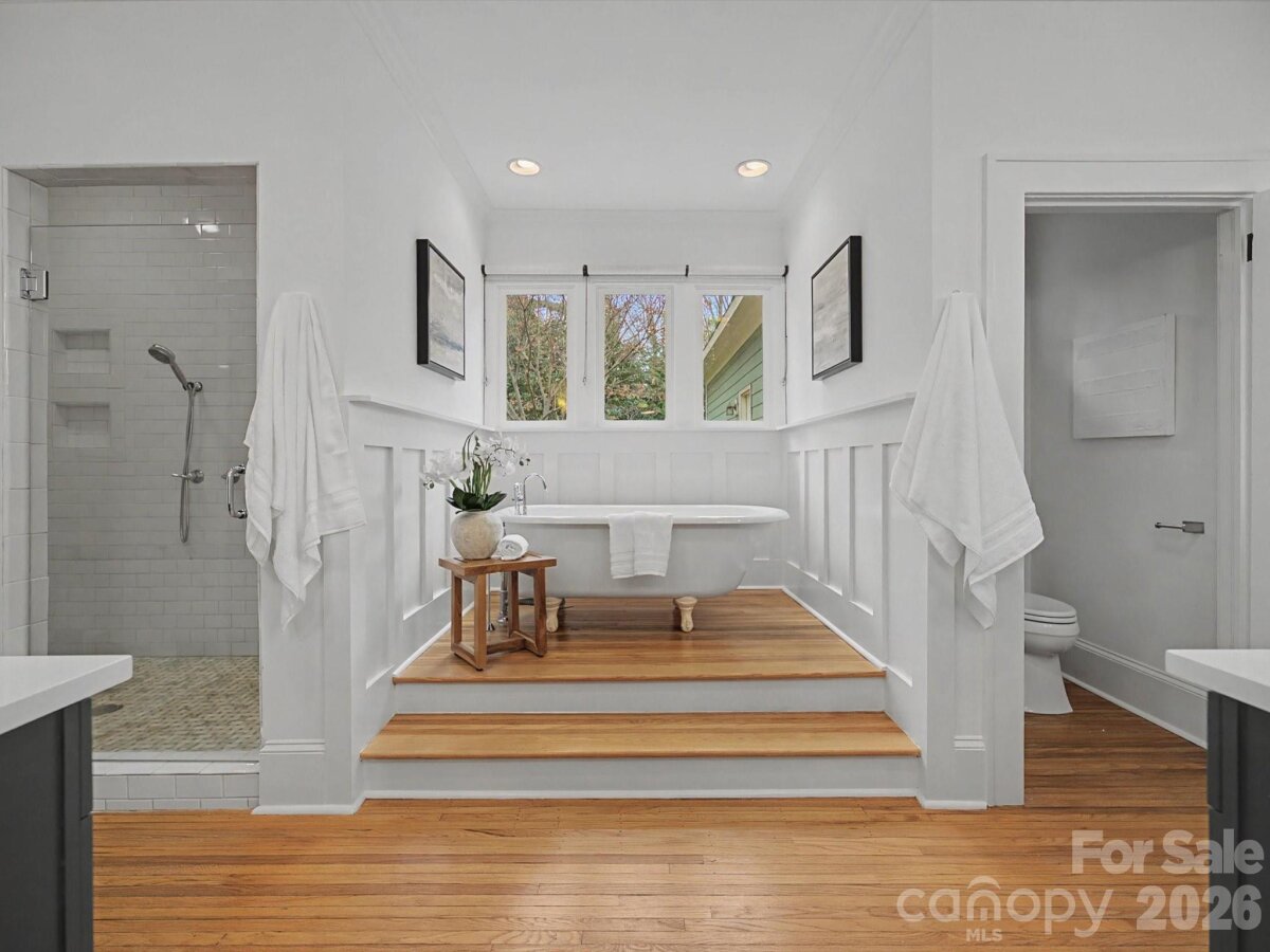 Built in 1924, this Eastover classic is rich in timeless character and charm. A huge covered front porch welcomes you into a spacious home featuring 5 bedrooms plus a large bonus room, along with a sunroom, office/study, and additional flex space ideal for an exercise room or playroom. Hardwoods flow throughout. The primary suite is conveniently located on the main level and offers two closets and a beautiful, spacious bath. A second bedroom with full bath is also located on the first floor. The renovated kitchen has been thoughtfully updated to meet today’s needs while maintaining the home’s historic appeal. The upper level includes three additional bedrooms, a bonus room, and flex space. Enjoy a private backyard complete with a paved patio and fire pit, perfect for outdoor entertaining. Additional highlights include a two-car detached garage and an unbeatable Eastover location within walking distance to coffee, shopping, and dining.
