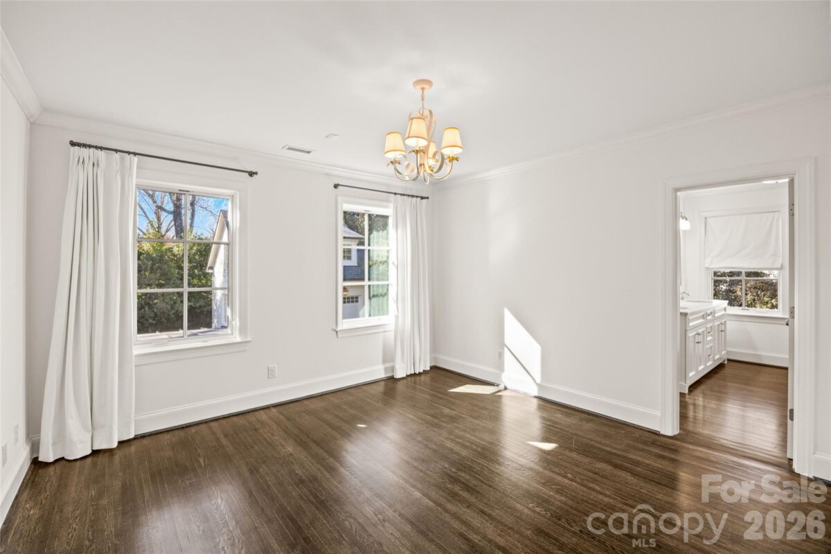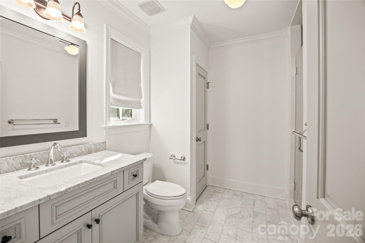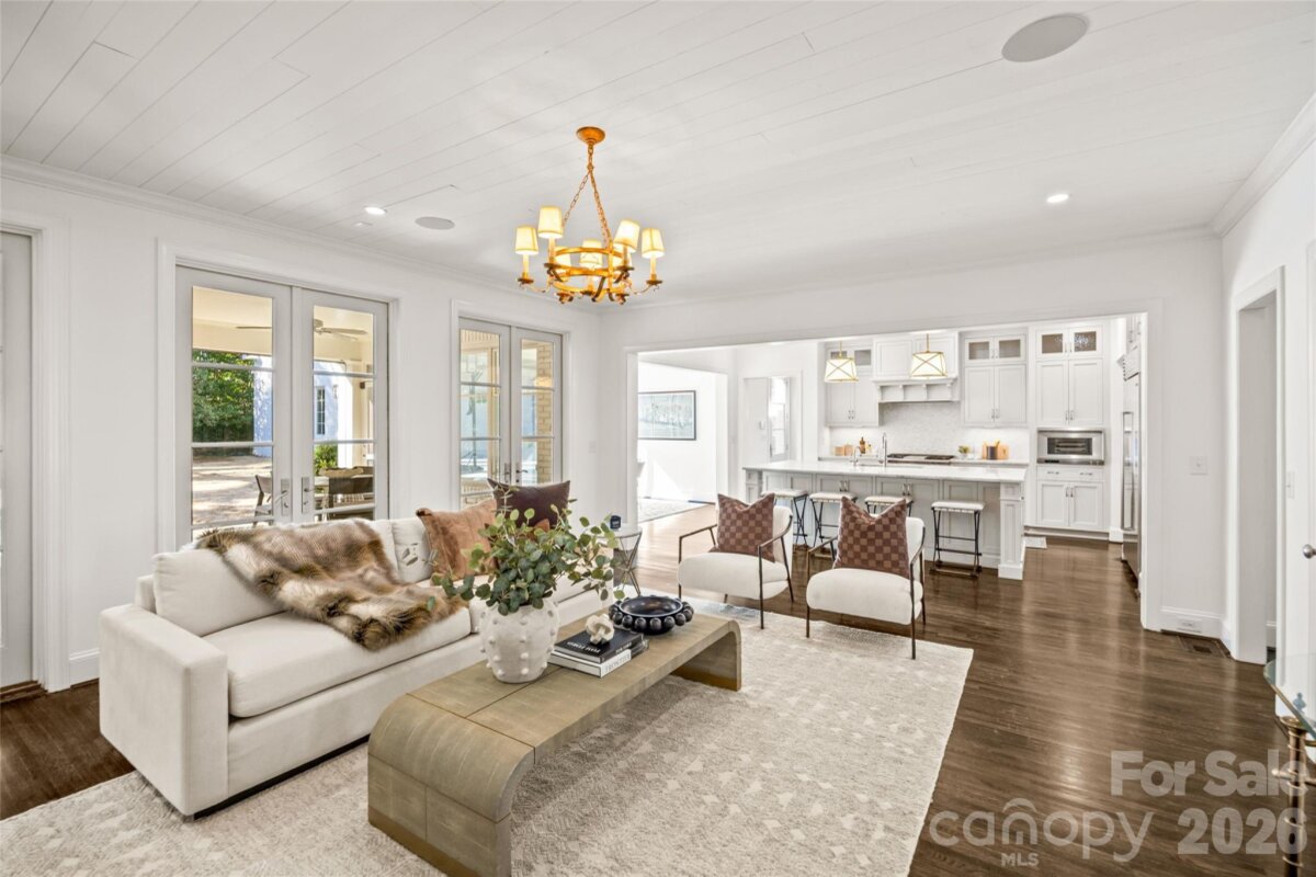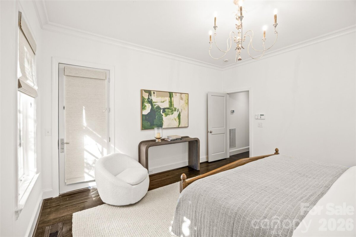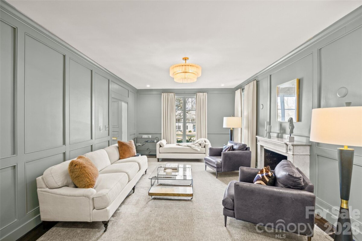 Exceptional high-end Eastover residence offers nearly 7,000 square feet of refined living space across the main house and a beautifully appointed carriage house. Extensively renovated to the studs in 2011–2012 by Frank Smith and Knight Residential Group, this home blends timeless architecture with modern luxury. Situated on prestigious Colville Road on a .44-acre lot, the stately cast stone entry with gas lanterns opens to a luxurious interior with high ceilings, hardwoods, designer fixtures, and gracious formal spaces. Spacious family room opens to the gleaming chef’s kitchen with marble countertops, large island, high-end appliances, scullery, and sunny breakfast room. The main level Primary Suite impresses with custom walk-in closet and marble bath with soaking tub. The upper level offers four en-suite bedrooms, bonus room, and office/playroom. The finished basement adds a rec space and full bath. The carriage house (added in 2021) includes flexible living spaces, a full kitchen, bedroom, two full baths, and laundry—ideal for guests or home office. Covered porch with automated screens looks over the flat landscaped yard, offering year-round outdoor living. The house has a whole house generator also. Truly a one-of-a-kind home in one of Charlotte’s most sought-after neighborhoods!