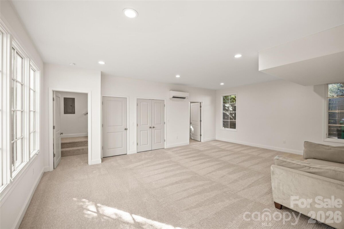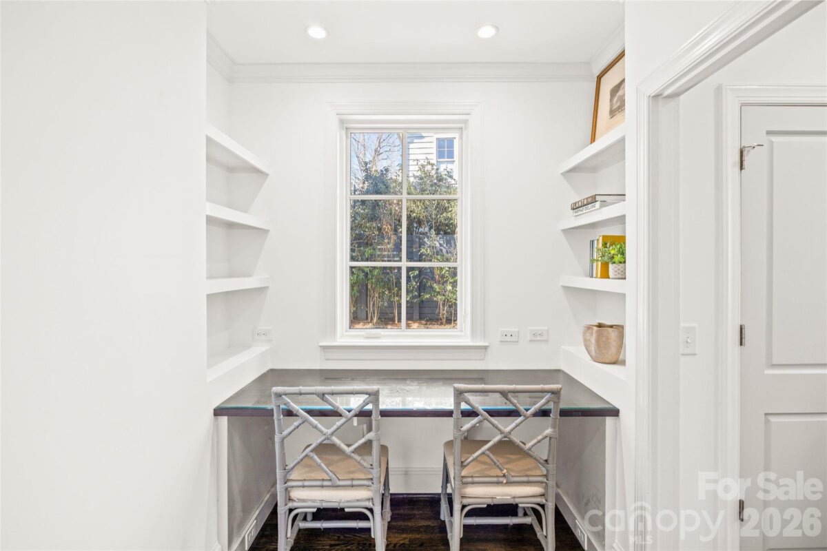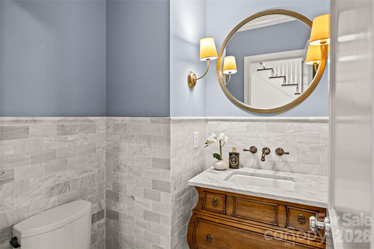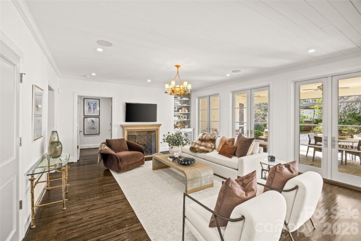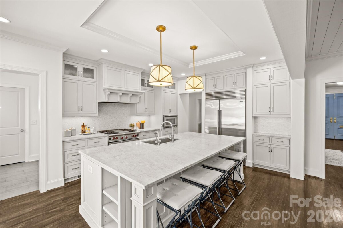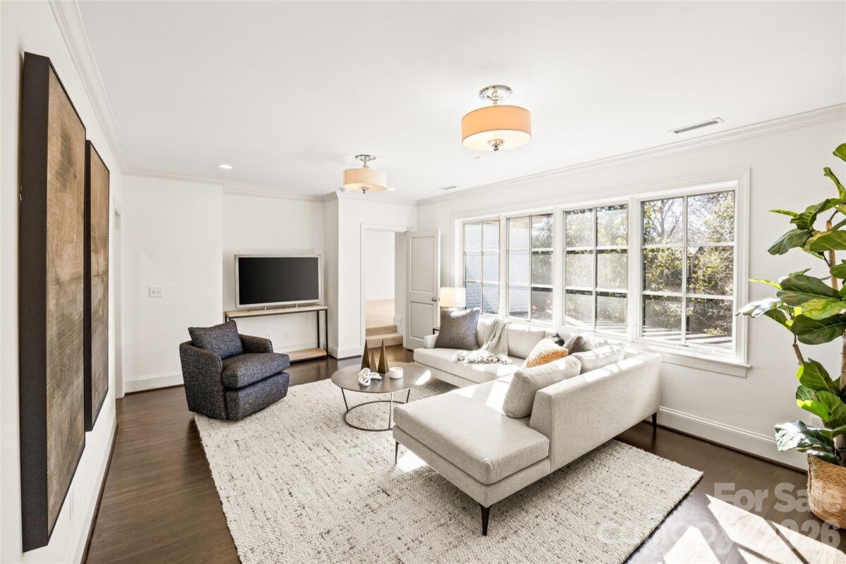Exceptional high-end Eastover residence offers nearly 7,000 square feet of refined living space across the main house and a beautifully appointed carriage house. Extensively renovated to the studs in 2011–2012 by Frank Smith and Knight Residential Group, this home blends timeless architecture with modern luxury. Situated on prestigious Colville Road on a .44-acre lot, the stately cast stone entry with gas lanterns opens to a luxurious interior with high ceilings, hardwoods, designer fixtures, and gracious formal spaces. Spacious family room opens to the gleaming chef’s kitchen with marble countertops, large island, high-end appliances, scullery, and sunny breakfast room. The main level Primary Suite impresses with custom walk-in closet and marble bath with soaking tub. The upper level offers four en-suite bedrooms, bonus room, and office/playroom. The finished basement adds a rec space and full bath. The carriage house (added in 2021) includes flexible living spaces, a full kitchen, bedroom, two full baths, and laundry—ideal for guests or home office. Covered porch with automated screens looks over the flat landscaped yard, offering year-round outdoor living. The house has a whole house generator also. Truly a one-of-a-kind home in one of Charlotte’s most sought-after neighborhoods!