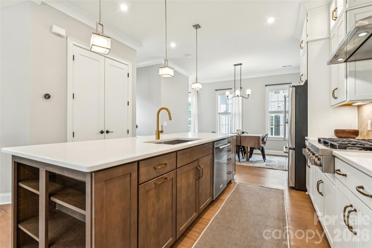 A perfectly positioned end-unit townhome in Elizabeth Glen! This boutique townhome neighbor within historic Elizabeth is known for its charm, tree lined streets, and close proximity to Uptown, Novant, Atrium, dining, and local favorites, 200 Emerson Avenue offers refined, low maintenance living in one of Charlotte’s most sought-after neighborhoods. The lower level features a double door side entrance with a welcoming foyer and includes a private guest suite with full bath, and access to the attached two car garage with an extended eave that adds to the architectural charm. The Main level is designed for entertaining and everyday living with an open concept layout filled with natural light, tall ceilings, crown molding, and light natural oak flooring with warm undertones. The kitchen anchors the space with a six-burner gas range, built in microwave, wall oven, oversized island with seating for five, ceiling height cabinetry with glass accents and lighting. A private balcony and sunroom with plantation shutters extend the living area. The upper level features a primary suite with a trey ceiling, dedicated seating area, two custom walk-in closets, and a spa inspired bath with dual vanity and oversized tiled shower with built in bench. A secondary bedroom with private bath and the laundry closet completes this level. The fourth floor offers a versatile bonus room with attached powder room and access to a private rooftop terrace, delivering exceptional living in the heart of Elizabeth! Walk to Plaza Midwood, Eastover and Myers Park! .