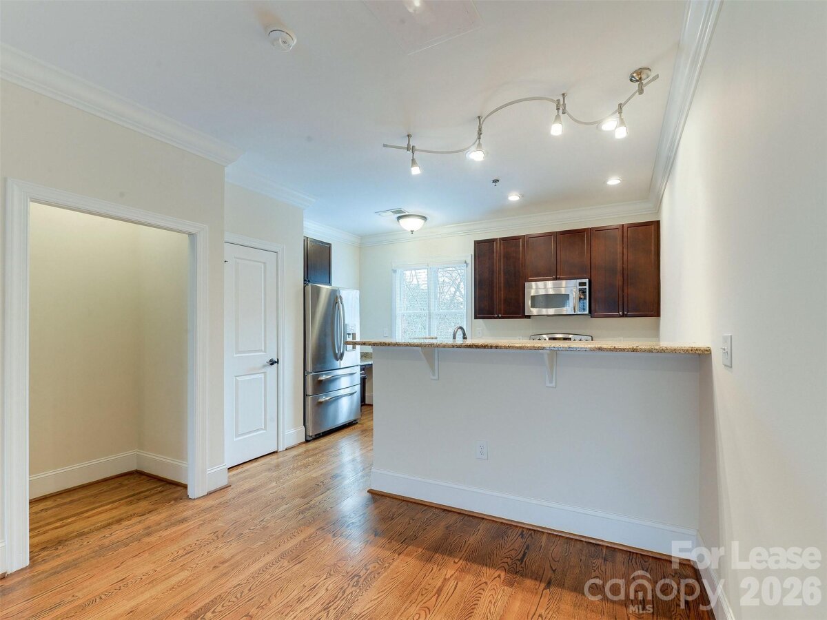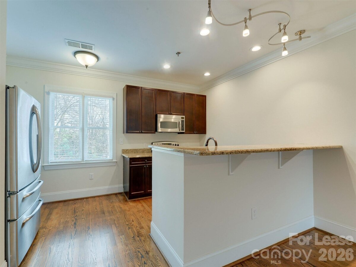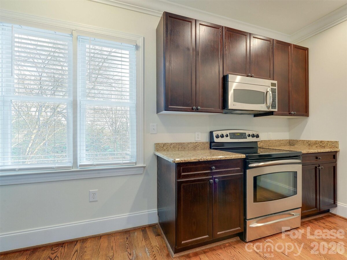 Like new town home style condo in the best zip code in Charlotte. Laurel Ridge is an exclusive enclave of luxury homes just minutes to all that Elizabeth and Eastover have to offer. Just seconds to the Mint Museum, fine dining, coffee shops, boutiques and so much more all just a few blocks from one of the two close medical centers. This home has just had new paint and carpet! From the lower level entrance, you can go right into the bonus space that would make a great home office or workout room. That connects to the one car garage. As you head upstairs to the main level you walk in to the dining area and large living room. The large windows let in lots of light that bounce off the hardwood floors! The kitchen is well laid out and features a desk and pantry...not to mention granite countertops and stainless steel appliances. This main level also has a bath for guests. Heading to the top floor, you find the guest bedroom and bath as well as the large primary suite. The primary has an en suite bath and walk in closet for your enjoyment. Right behind the home is guest parking and a driveway that could be a spot for a small car. Take a look today!