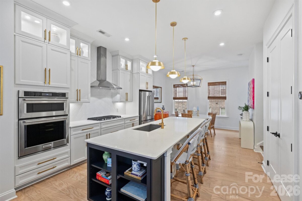 Welcome to this updated stylish townhome in highly sought-after Elizabeth Glen neighborhood! Step inside to discover a true chef's kitchen featuring to-the-ceiling white cabinets with glass inset accents, a gas cooktop, stainless steel range hood, herringbone tile backsplash, & elegant brass pendant lights & cabinet hardware. The spacious primary suite boasts a tray ceiling and walk-in closet with custom built-ins. The primary bathroom is an oasis, complete with upgraded back-lit mirror & designer light fixtures. Ascend to the bright and inviting 4th floor, currently serving as a home office with custom arched built-ins & private half bath, all connecting to a delightful rooftop terrace—perfect for relaxing after a long day. This meticulously maintained home features hardwood floors & updated lighting throughout. The 2-car garage provides side-by-side parking & generous storage room. Ideally located just blocks from popular spots like the Crunkleton, Rosemont, and Puerta!