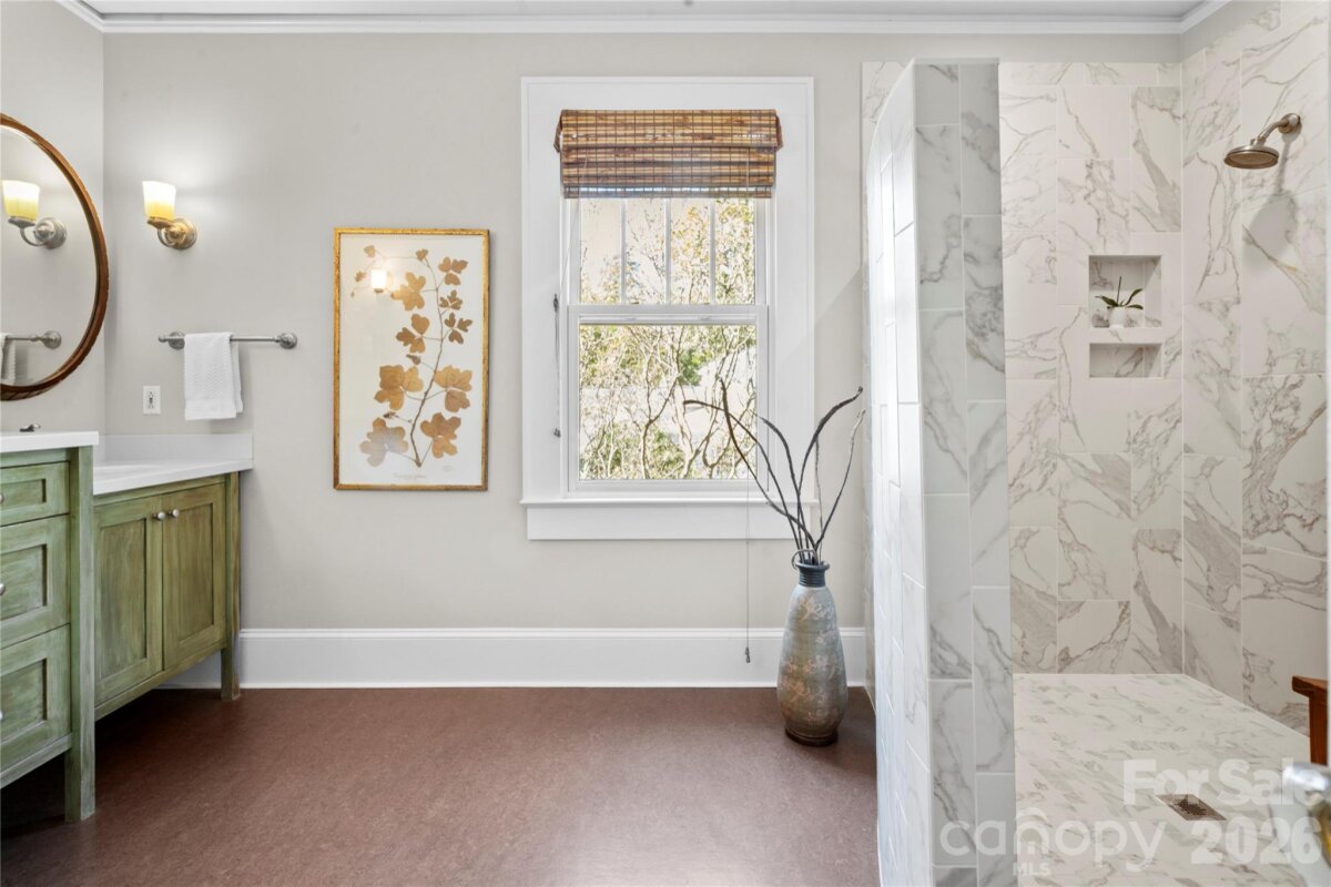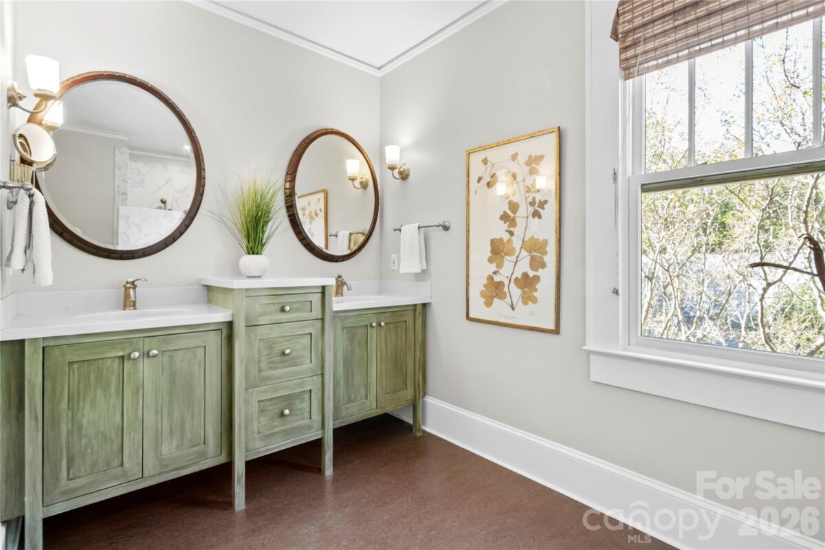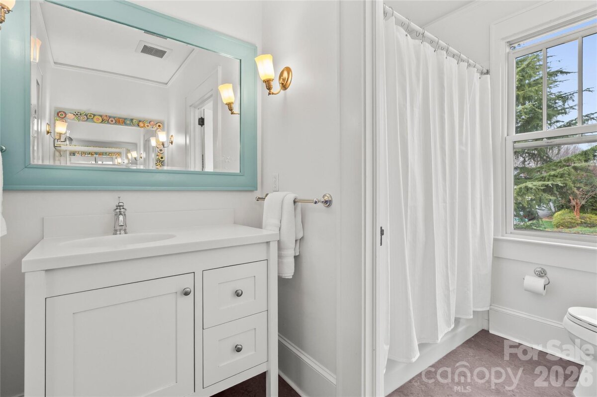 Welcome to 2400 Kenmore Avenue in the heart of Historic Elizabeth.Thoughtfully renovated to meet North Carolina’s Healthy-Build Certification, this residence sits on a private .60-acre lot and combines timeless character with forward-thinking design. The home features four spacious bedrooms, three full and two half baths, and an expansive finished basement with serene views of the back porch and landscaped yard. Every detail reflects a commitment to energy efficiency—20 solar panels, heated floors, high-performance windows and doors, radiant heat with supplemental HVAC, and a 3,000-gallon cistern system, that irrigates the entire property.Inside, light fills a floor plan that flows easily from room to room. The open living, dining, and kitchen spaces create an inviting environment for both everyday comfort and entertaining. Each bedroom offers a calm retreat with generous storage, and the bathrooms blend modern style with thoughtful finishes.Outdoors, the private backyard is an extension of the living space—a roaming garden, stone fireplace, and separate firepit area, plus a half-court basketball space nestled beneath mature hardwoods.2400 Kenmore Avenue is where historic Elizabeth charm meets modern efficiency—a rare blend of sustainability, space, warmth and luxury! This property has a public storm drainage improvement project plan by the City of Charlotte