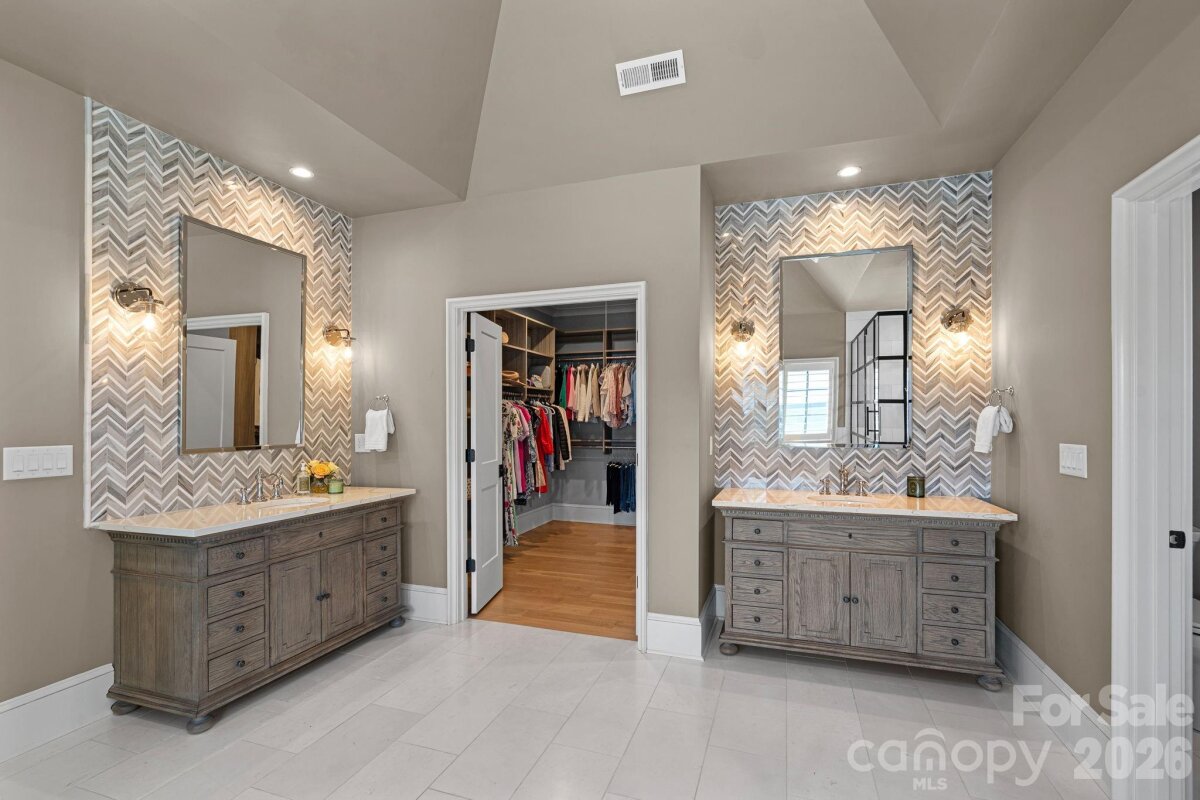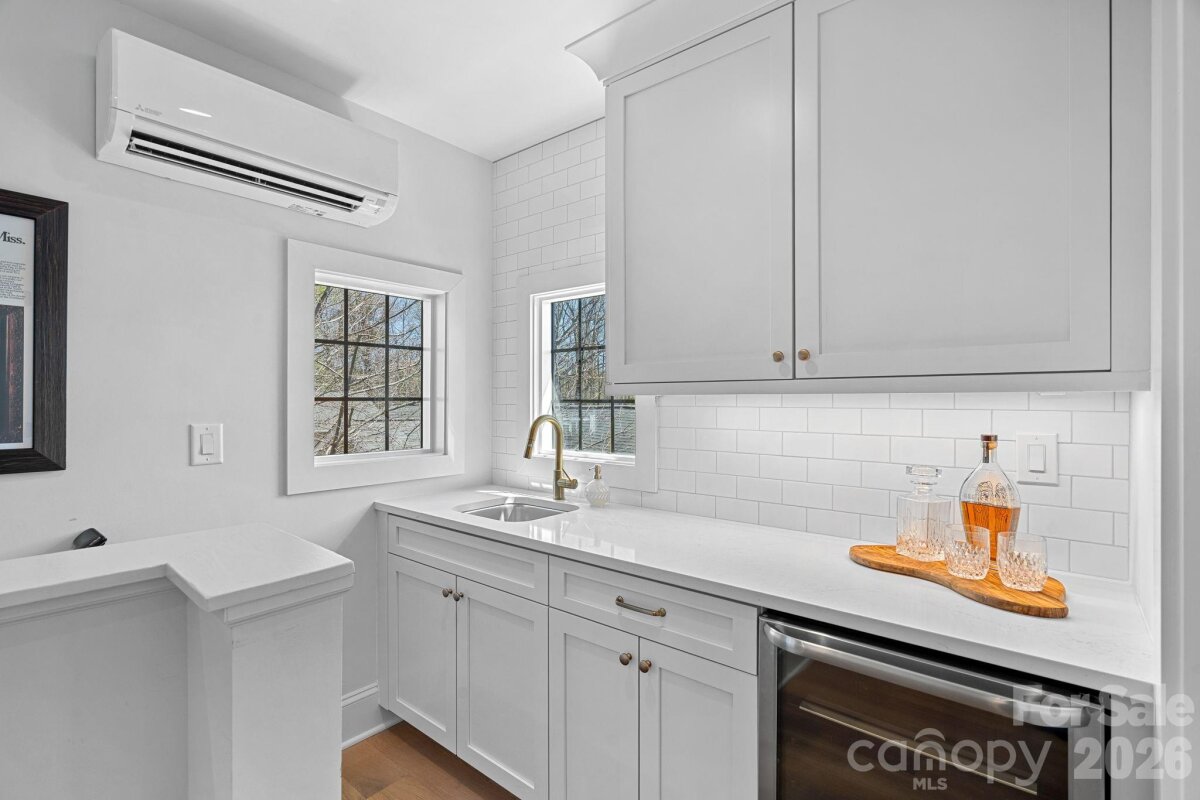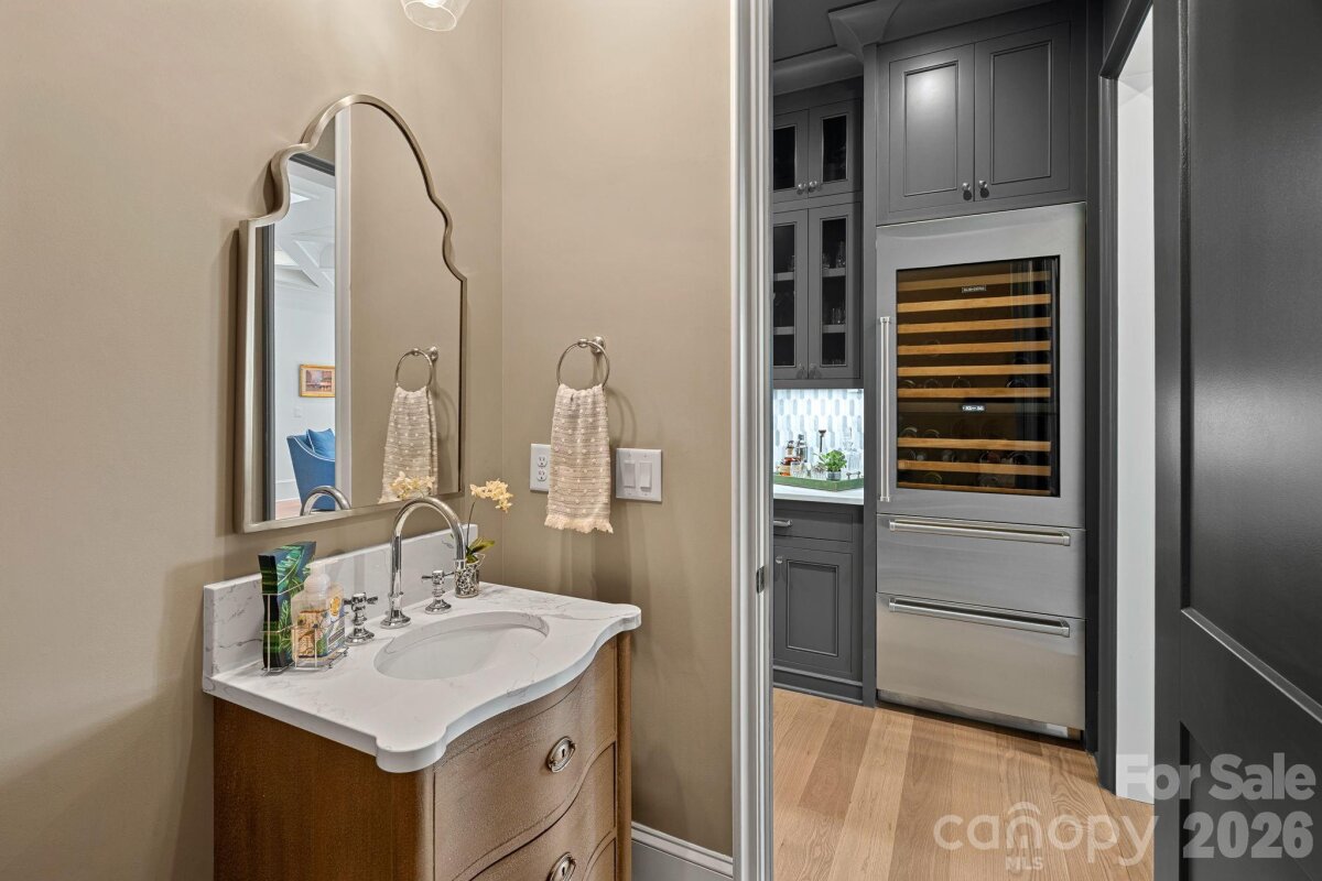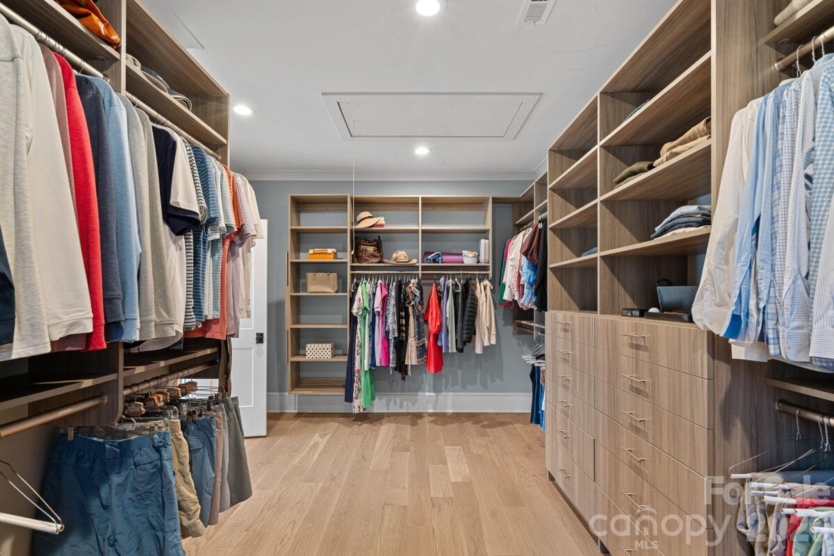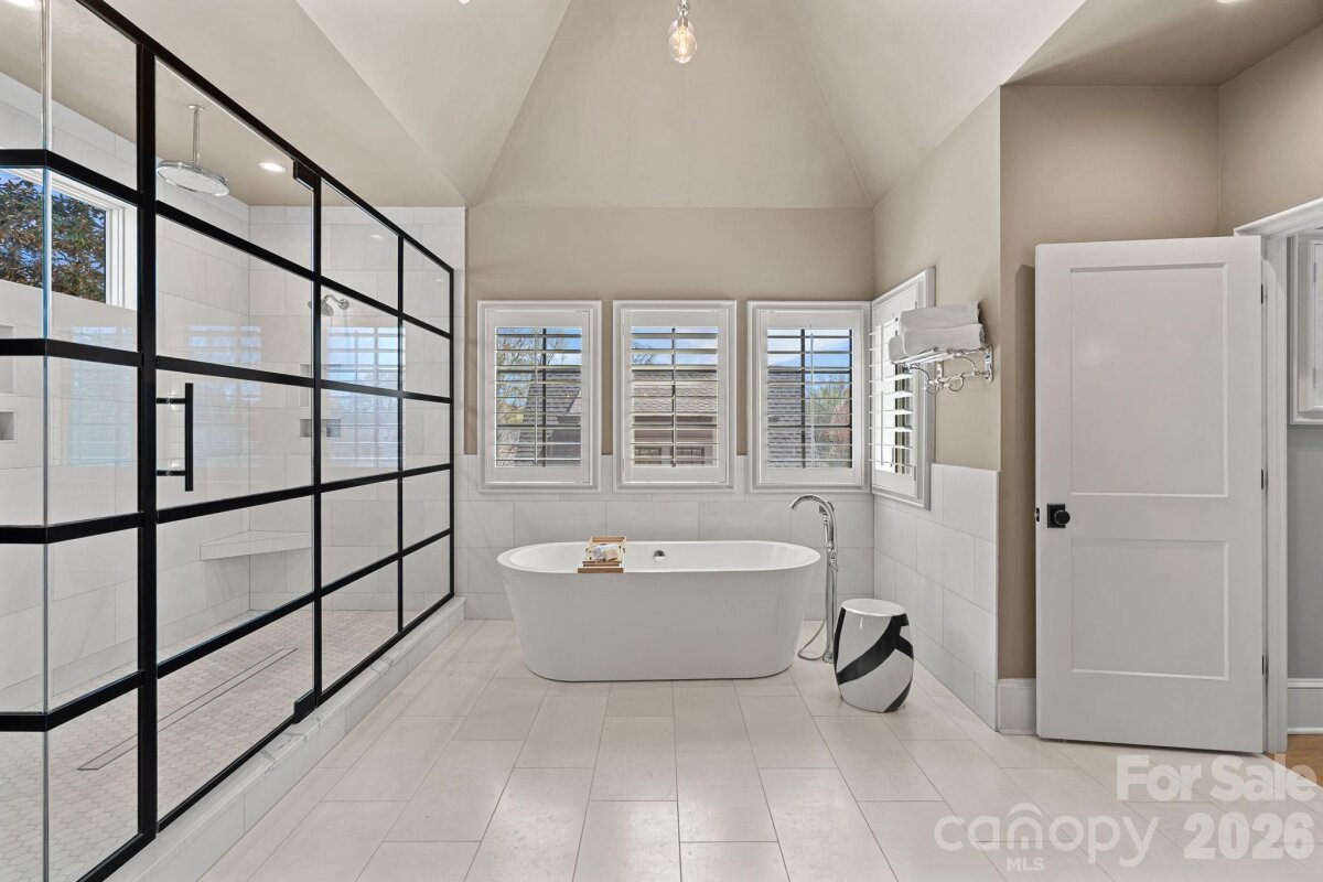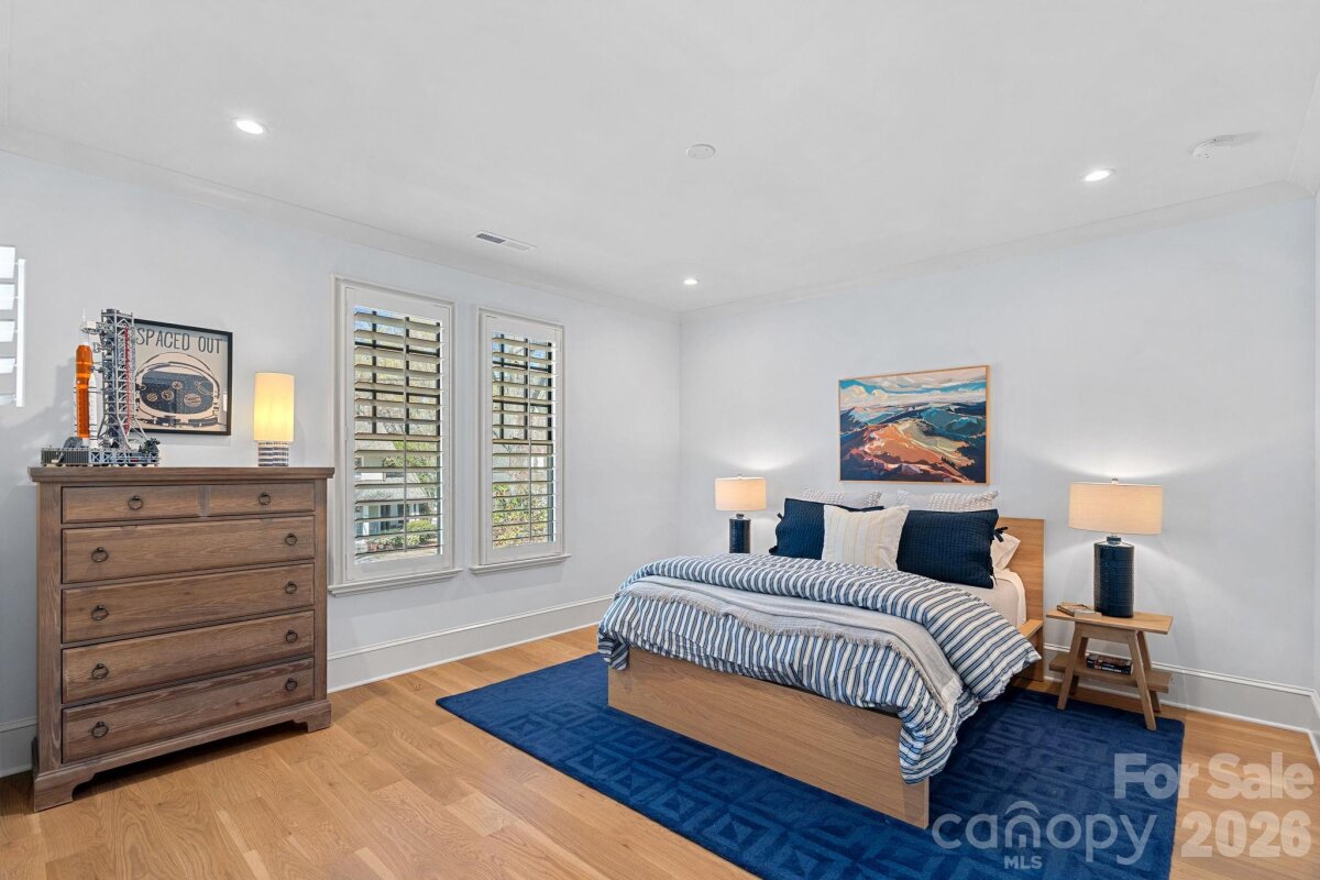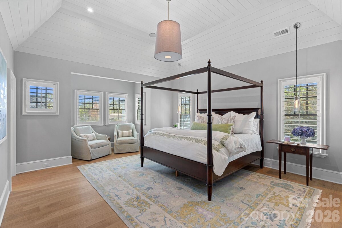 Stunning newer construction with timeless charm in the vibrant and historic Elizabeth neighborhood! Situated on a beautiful corner lot just minutes to Uptown, this light-filled home offers an exceptional open floor plan with refined architectural details throughout. Newly refinished wide-plank, white oak floors, coffered ceiling, intricate moldings, custom designer lighting and three fireplaces create a warm, sophisticated atmosphere. The main level flows seamlessly from the elegant living room to the dining room highlighted by a designer chandelier and dramatic floor to ceiling windows and extends to the great room. A main-level guest suite or private study features custom built-in shelving, detailed moldings, and a full en-suite bath. The luxury chef's kitchen boasts extra thick quartz countertops, an oversized center island with bar seating, custom white cabinetry, a built-in Dacor refrigerator and 6 burner gas range with custom hood, tile backsplash, under cabinet lighting, breakfast room & walk-in pantry. Convenient mud room off kitchen includes stainless steel sink, built-in cabinetry with cubbies and door leading to backyard. Bar area offers built-in SubZero beverage refrigerator with wine cooler and refrigerated drawers, decorative tile backsplash, custom glass-front cabinetry, floating shelves and coffee station. Great room features gas center fireplace with slate surround and shiplap detail above mantle, built-in cabinetry and integrated speakers. Cascading stacking sliding doors open to covered flagstone porch with retractable screen, ceiling heaters and a gas fireplace- perfect for year-round indoor-outdoor living. An enormous walk-in closet under the staircase provides abundant storage and houses the whole-house Savant smart home system plus a new whole house water filtration system. Dramatic grand staircase with wrought iron railings leads to the second level featuring primary suite, two secondary bedrooms with en-suite baths, incredible spacious laundry room with sink and built-in cabinetry and a versatile loft space. The impressive primary suite offers a sitting area and vaulted ceiling with shiplap accents, custom chandelier and pendant lights over nightstands. The luxurious spa-like primary bath includes oversized marble walk-in shower wi/ dual shower heads plus rain shower head, soaking tub, dual vanities with quartz countertops, custom chandelier and vanity lighting, spacious walk-in closet w/ built-in organization system. The detached 2 car garage is a rare gem for this area and provides over 400+ square feet of additional living space above complete with kitchenette and full bath- ideal for home office, nanny or guest suite, gym or flexible living space! The professionally landscaped backyard is fenced and gated and includes full yard irrigation. All of this within 5 minutes of Uptown and walking distance to some of Charlotte's most coveted restaurants and amenities!