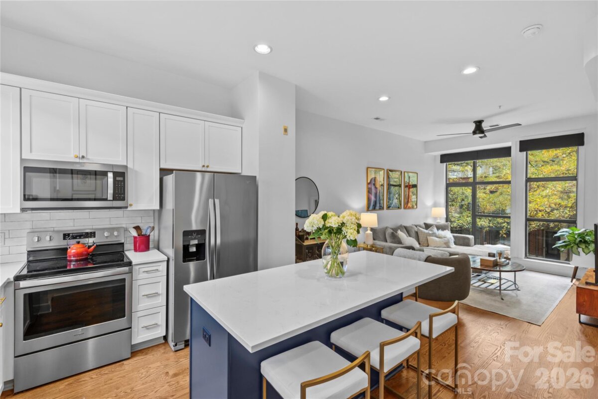 Nestled on a picturesque tree-lined street just moments from Uptown, this impeccable renovated three-level residence combines sophistication, comfort, and convenience. The open-concept main level features a seamless flow between the living, dining, and kitchen areas, an inviting space for both daily living and entertaining. The third floor showcases an elegant primary suite complete with a full bath and a flexible loft, perfect for a home office or sitting area. A private rooftop terrace offers sweeping seasonal views of the Uptown skyline. The lower level includes a guest bedroom, full bath, and additional flexspace with private patio access. Assigned parking completes this rare offering. Don't miss the opportunity to own a refined urban retreat in vibrant Charlotte.