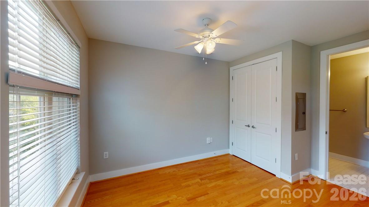 This stunning uptown condo has it all in a great part of Uptown. Just steps from the elevator, you are greeted with tons of natural light pouring in the bank of windows. The large kitchen is great for the home cook with lots of cabinets space and a bar top for entertaining. All the appliances are included (w/d too!) The large living room is a great hang out space and the private balcony has park views to the left and Uptown views from the right. The bedroom is tucked away and private yet open so the condo feels bigger than it is. The bathroom has plenty of room for storage and has the laundry center. All of this and more in a great building that features a courtyard and secure entry. The parking garage is secure as well and the parking space is assigned. Less than 3/4 of a mile to Bank of America Stadium for Panther's games, Charlotte FC game and great concerts! A mere seconds to everything Uptown has to offer as well as just minutes to all the great restaurants and breweries in Freemore West. You can't beat a huge park with walking trails right next door! Take a look today!