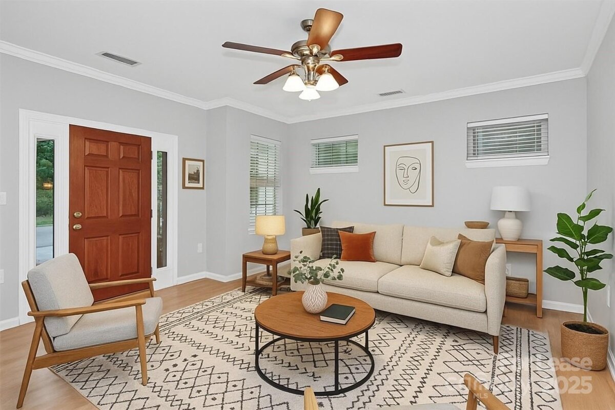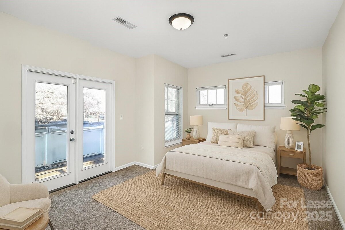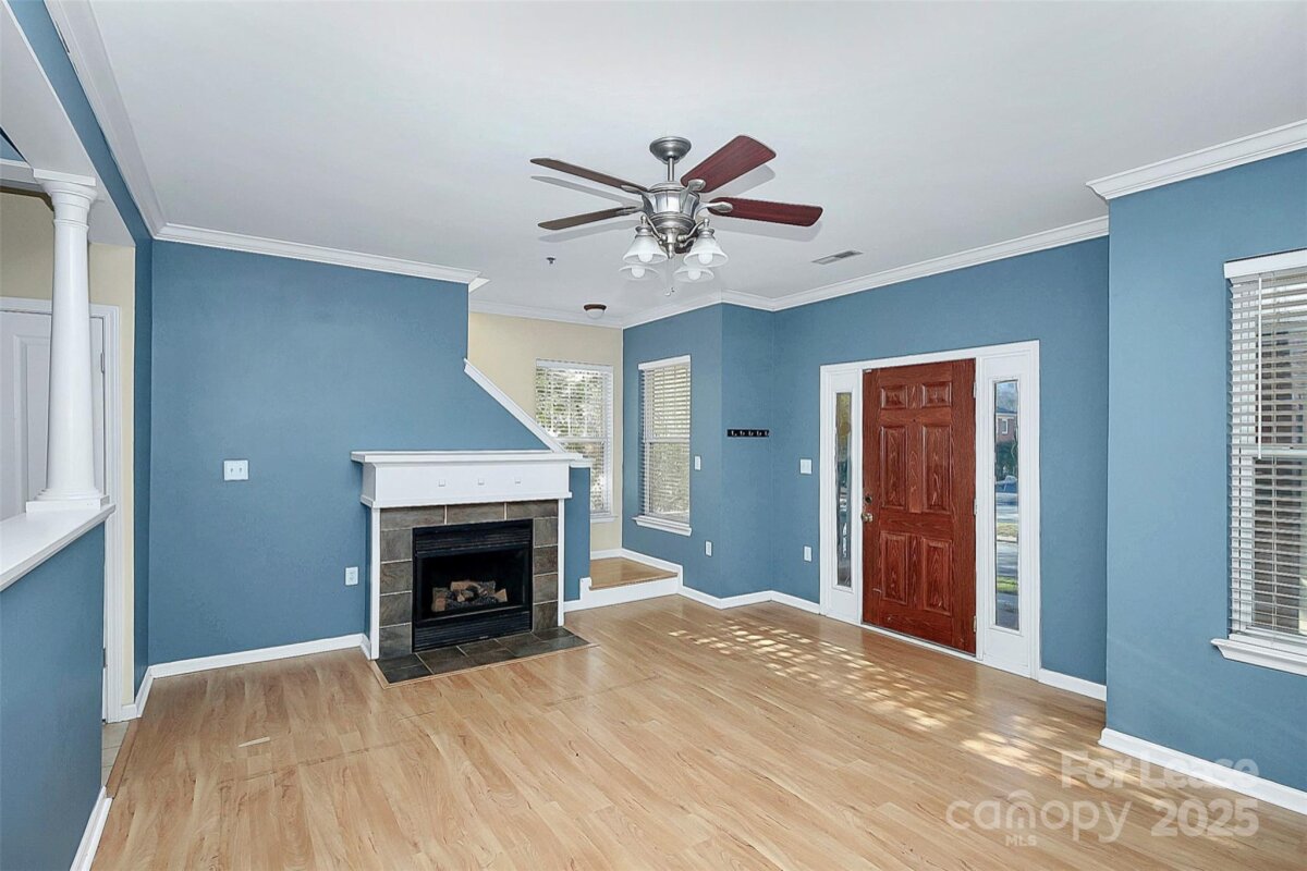 Welcome to this beautifully maintained 3 bedroom/2.5 bathroom condo nestled in the heart of First Ward—just steps from First Ward Park, the light rail, and all the energy of Uptown Charlotte. A charming, covered front porch invites you into a bright and airy living room featuring a cozy fireplace—an ideal retreat after a long day. The galley-style kitchen flows effortlessly into the dining area, creating a warm, open-concept space that's perfect for both everyday living and entertaining. Upstairs, the oversized primary suite offers a private en-suite bath and access to a wraparound deck with stunning views of the Charlotte skyline—perfect for morning coffee or winding down. Two additional bedrooms provide versatility for guests, a home office, or flex space, and share a well-appointed full bathroom. Enjoy the tranquility of a residential neighborhood while staying just minutes from city attractions, major highways, and everyday essentials.