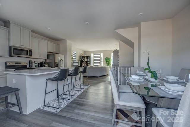 Short sale listing. Immaculate End-Unit Townhome with Upgrades in Sought-After Gastonia Community This beautifully maintained end-unit townhome is filled with natural light and offers a spacious, open layout perfect for modern living. The main floor features an inviting living area, a chef’s kitchen with a large quartz island, stainless steel appliances, and a bright dining space that opens onto a private deck—ideal for outdoor enjoyment. Upstairs, the primary suite offers a walk-in closet and ensuite bath, with two additional bedrooms and a full bath providing ample space for family, guests, or a home office. Additional perks include extra end-unit windows, upgraded finishes throughout, Tankless water heater, and convenient entry from both the rear-load garage and the front porch. Two private parking spaces are located at the rear of the home, with additional guest parking available in front. Home is currently owner-occupied. Please refer to the attached list of upgrades and optional features included with this unit. Special condition: This is a short sale and is subject to lender and third-party approval