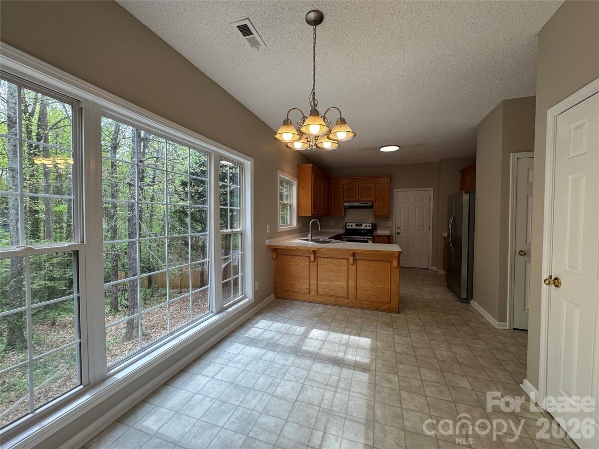 Home for rent in the Huntington Forest neighborhood, Gastonia, NC! This home features over 2,200 square feet with 4 bedrooms, 2.5 baths. On the entry level you will find a spacious living room with hardwood floors & gas log fireplace. 1/2 bathroom in the hall, a bonus room off the living room could be used as a formal dining room, home office or playroom. Eat-in kitchen has bar top seating for 2, plenty of cabinet/countertop space and does come with courtesy use only appliances, (refrigerator/no icemaker, dishwasher, electric range/oven & tabletop microwave). Off the kitchen is access to the deck that provides a mountainesque view. Upstairs you will find the spacious primary suite with tray ceilings, walk-in closet & ensuite bathroom with dual vanity, garden tub & stand-up shower. There are 2 additional bedrooms, with a 4th bedroom that could be used as a theater or bonus room. In the hallway you will find another full bathroom and laundry room that does come with courtesy use washer/dryer. But wait, that's not all! The huge unfinished basement provides tons of storage space and access to the backyard. **The homeowner will have an owner's closet in the basement that is kept locked with their personal belongings, still leaving plenty of space for the tenants. Exterior features a 2 car garage. This home won't last long, set up your showing today! *No Pets