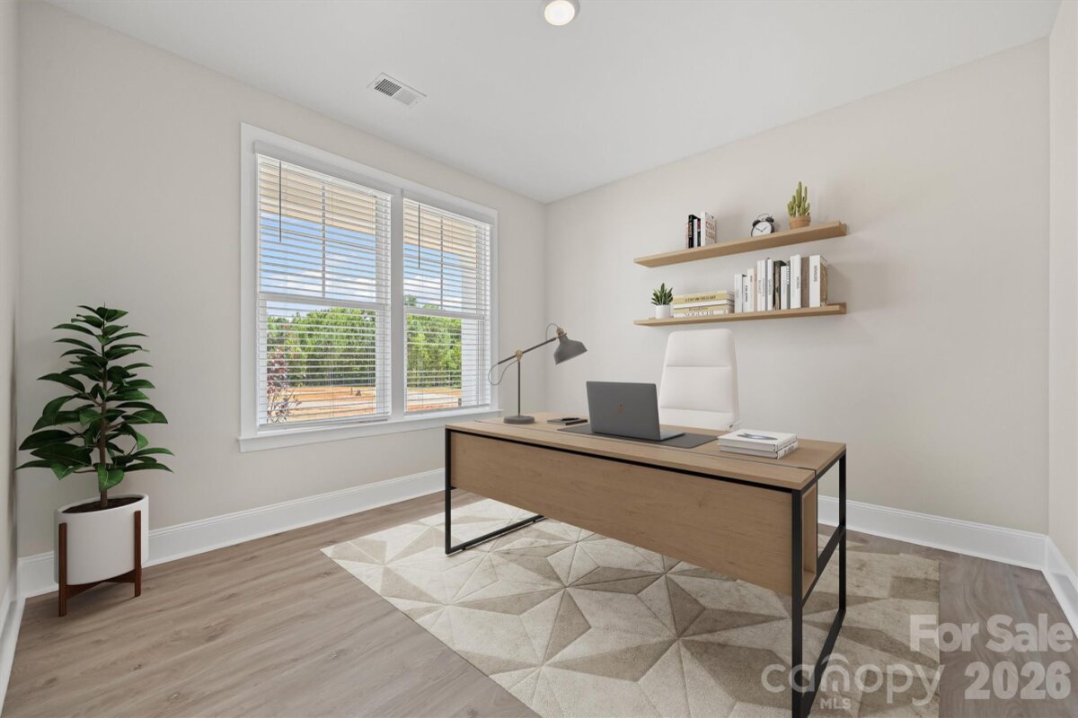 1504 Baileys Run is situated on 1 acre in the beautiful new 10 home subdivision of Baileys Farm. This thoughtfully designed Wells plan offers 4 spacious bedrooms, 3 full baths, and a dedicated office. From the moment you arrive, you'll notice the attention to detail, with an inviting front porch leading to a warm and welcoming entryway. Inside you'll discover a beautifully appointed family room with a coffered ceiling that flows seamlessly into a bright and airy kitchen, complete with stacked cabinets, a generous island, and high-end gourmet appliances. The main floor primary suite is a true retreat, featuring a spa-like bath and a large walk-in closet. Upstairs, a very large loft area connects two additional bedrooms and a full bath. Enjoy outdoor living on the covered rear porch, ideal for relaxing or entertaining. Baileys Farm offers the perfect blend of luxury, comfort, and community—making sure to check all the boxes!