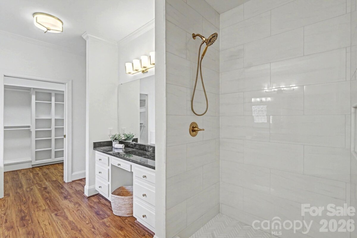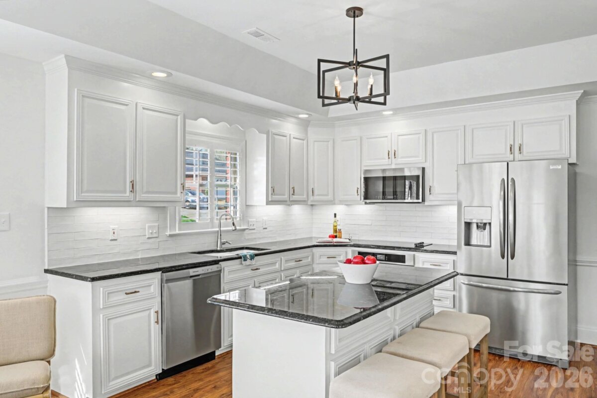 You will love this all-brick home in the sought after Kendrick Place community. It has been beautifully updated throughout, beginning with the kitchen, which features freshly painted cabinets, a new tile backsplash, and brand new appliances including a range/oven, dishwasher, disposal, and microwave. The interior has been freshly painted and enhanced with stylish new lighting fixtures. The primary suite feels like a private retreat, offering new faucets, a gorgeous newly added tiled shower with a frameless glass door, double sinks, a garden tub, a dedicated makeup counter, and a walk-in closet complete with an organizer system. The additional baths have also been thoughtfully updated. Other improvements include new electric logs in the fireplace, new carpet upstairs, and plantation shutters. Step outside to a charming patio with a retractable awning—perfect for enjoying your morning coffee. The yard is beautifully maintained, the roof was replaced in 2024, and the home comes equipped with a whole-house generator for added peace of mind. This special home has been lovingly improved and is absolutely beautiful. It will not last