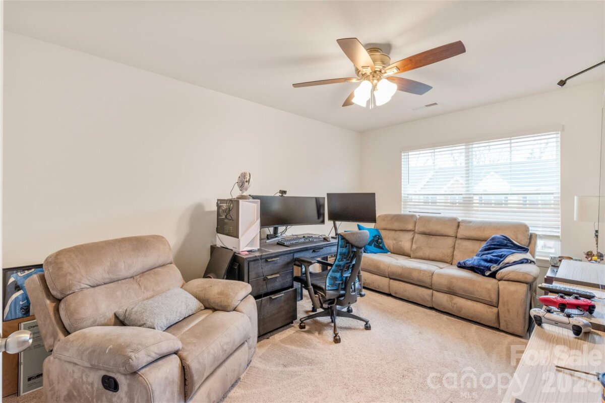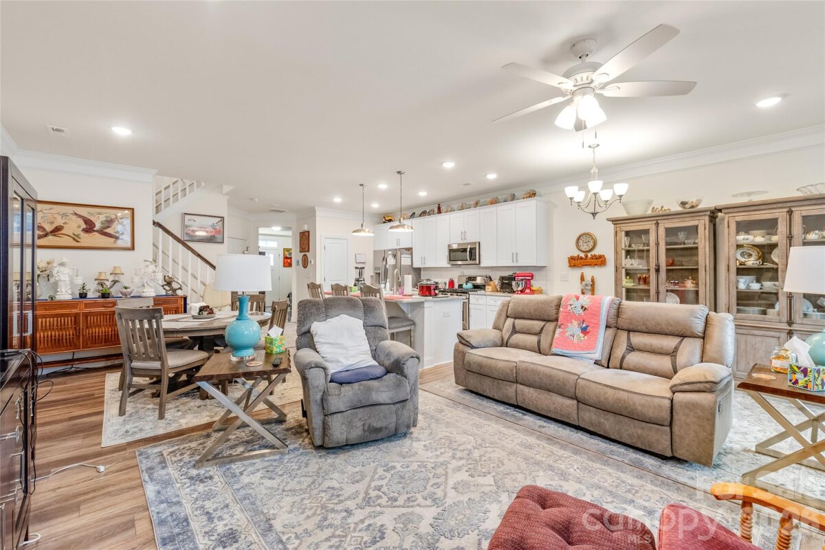 Beautifully Maintained 3BR Townhome with Loft & Resort-Style Amenities If you’ve been waiting for the right townhome, this is your opportunity. Offering approximately 1,919 square feet, this 3-bedroom, 2.5-bath home delivers the perfect combination of space, upgrades, and low-maintenance living. The open main level features durable luxury vinyl plank flooring and a bright, welcoming layout ideal for both everyday living and entertaining. The kitchen is thoughtfully designed with white cabinetry with crown molding, granite countertops, ceramic tile backsplash, and stainless steel appliances—all included. Tasteful rugs have been used to help preserve the flooring, keeping it in excellent condition. Upstairs, a versatile loft provides additional living or workspace flexibility, along with two secondary bedrooms, a full bath, and a spacious primary suite. The primary bath offers a relaxing garden tub with tile surround, a separate tiled shower with semi-frameless glass door, and quality finishes throughout. Quartz countertops in all bathrooms and upgraded trim details elevate the home’s overall feel. Additional highlights include a tray ceiling in the foyer, privacy fencing between rear yards, and a stair lift that conveys—adding both value and accessibility. Washer and dryer also remain. Enjoy a true lock-and-leave lifestyle with community amenities that include a dog park, paved walking trails, pool, cabana, and playground. The low $170/month HOA covers yard maintenance, making upkeep simple and stress-free. Conveniently located near shopping, dining, and major highways—this home offers comfort, convenience, and a carefree lifestyle.