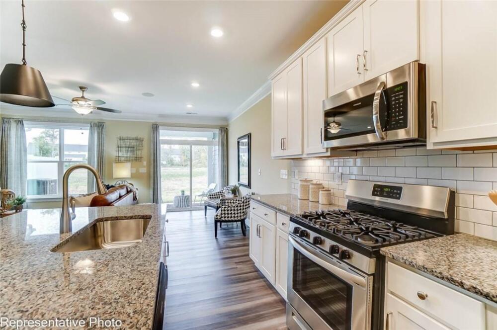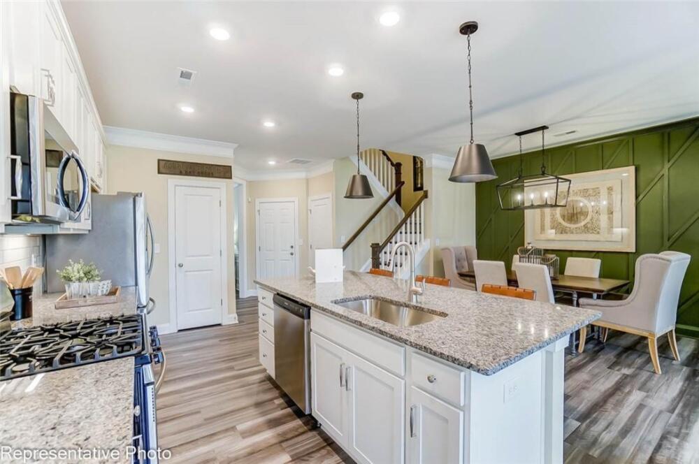 New townhomes in Harrisburg! Walking distance to shops, eateries, and other conveniences! This Ashland plan has 3 bedrooms, 2.5 baths, and more than 1,800 square feet. The open main floor includes a beautiful designer kitchen, dining area, and spacious family room. Beautiful and durable EVP flooring runs throughout the main level. The second floor has a loft, laundry room, two secondary bedrooms, and the primary suite. The kitchen features white cabinets with crown molding, quartz counters, a ceramic tile backsplash, and stainless appliances, including a gas range. Additional 'extras' include a tray ceiling in the foyer, a beadboard drop zone, quartz counters in all baths, and an upgraded trim package. This home has a privacy fence between rear yards. Dog park, paved walking trail, and playground now open. Pool & cabana scheduled to open Summer 2023.