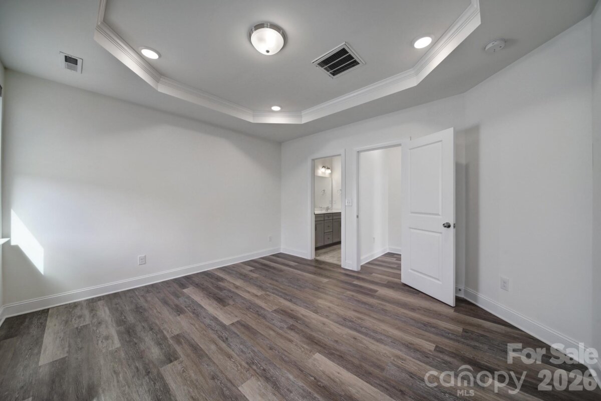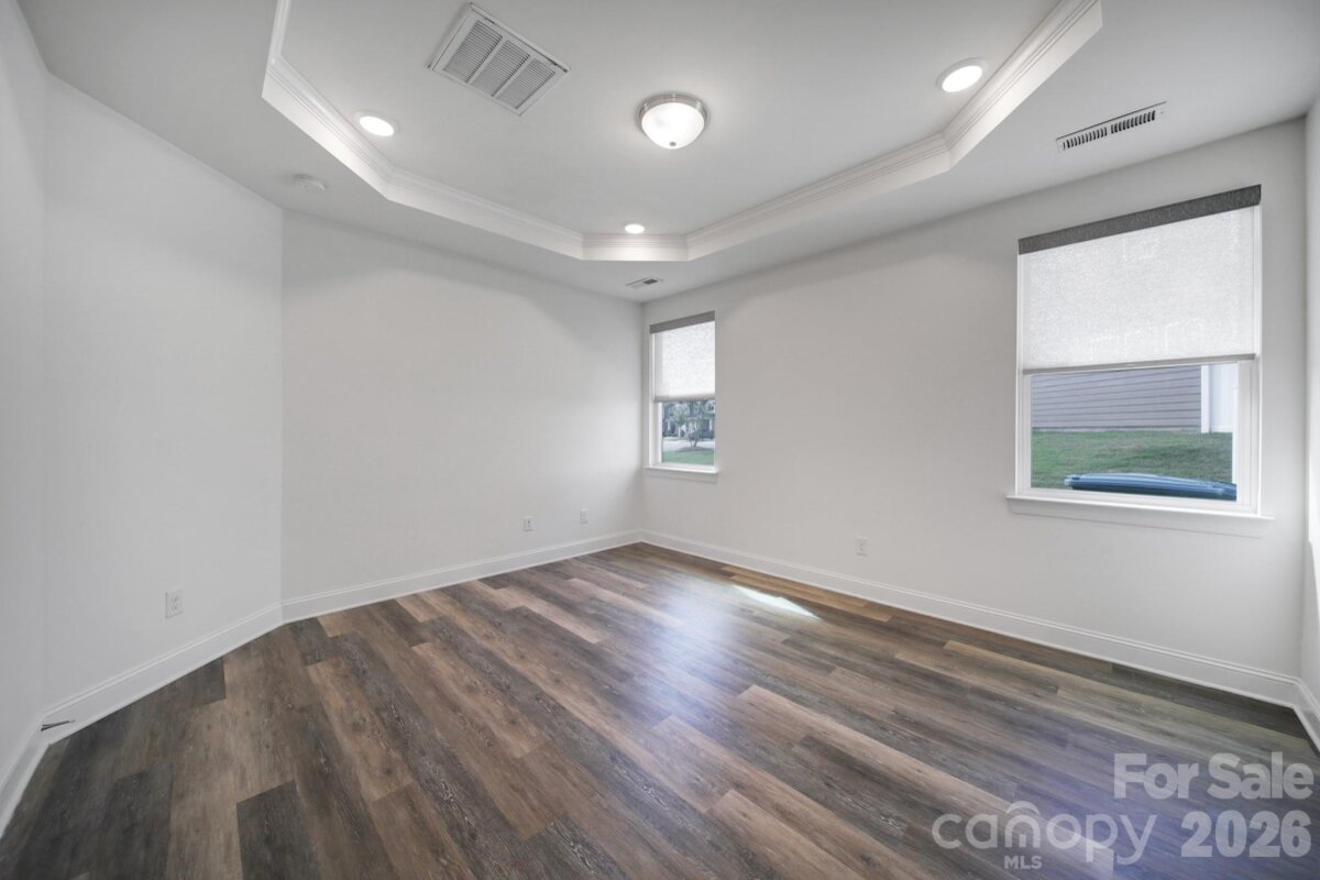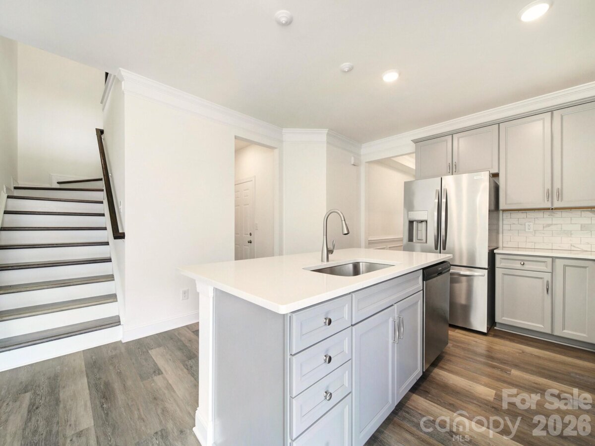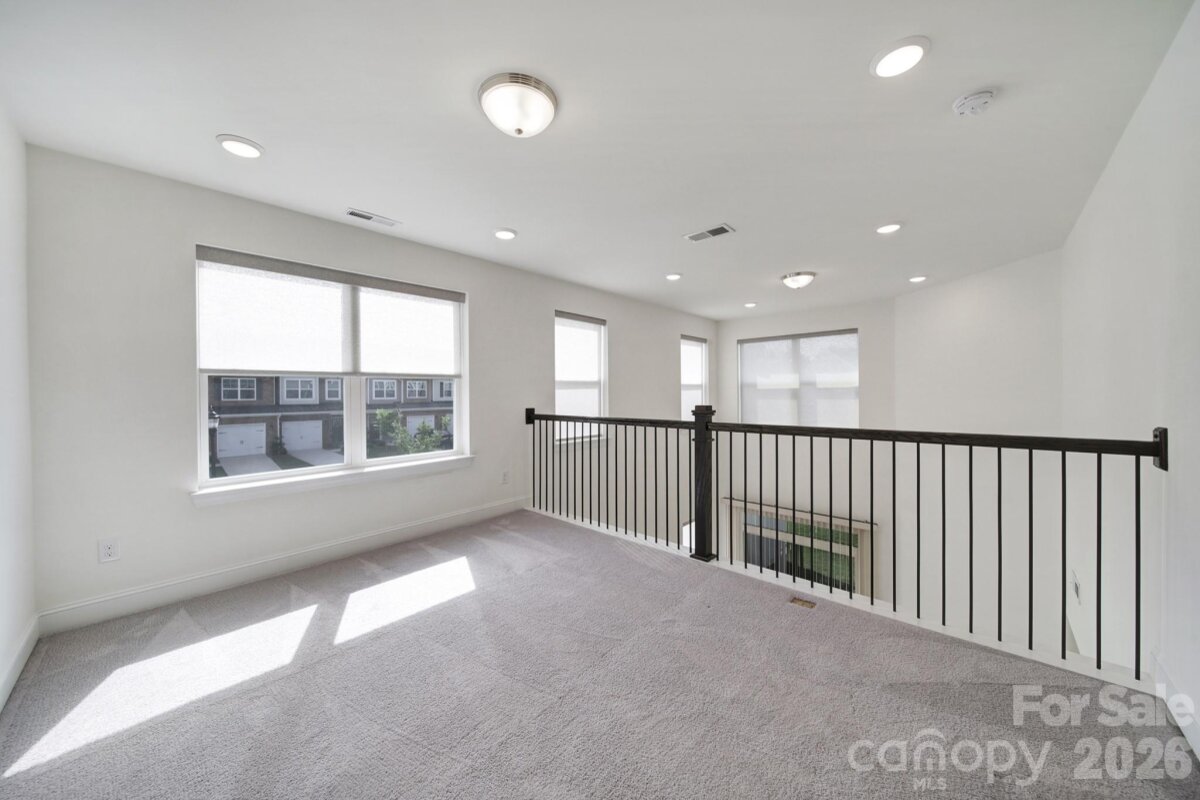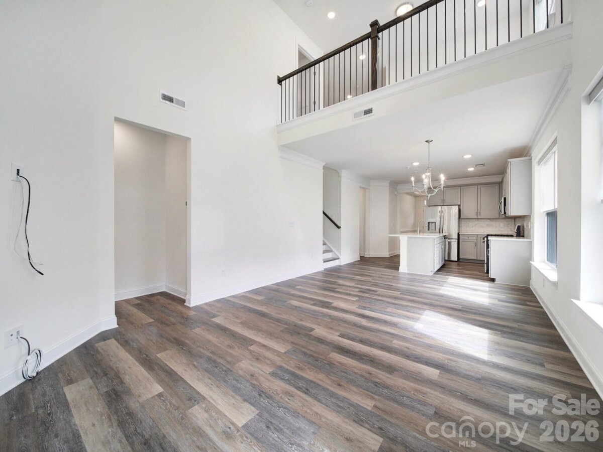 Beautiful, like-new construction, end-unit townhome located in the desirable Harrisburg Village community. Step inside this popular Cary plan, featuring a two-story great room that’s perfect for relaxing or entertaining. The freshly painted interior includes luxury vinyl plank flooring on the main level and custom blinds throughout. The kitchen boasts Shaker-style cabinets, quartz countertops, a subway tile backsplash, stainless steel appliances including a gas range, and an adjacent dining area. The primary suite offers a tray ceiling and an en-suite bathroom with a dual-sink vanity, a tiled shower with a semi-frameless door, and a walk-in closet. Upstairs, you’ll find two bedrooms, a bed/bonus room (no closet), a full bathroom, and a versatile loft. An attached one-car garage provides convenience, and the refrigerator and washer/dryer convey. Community amenities include a pool, playground, dog park, and walking trails.