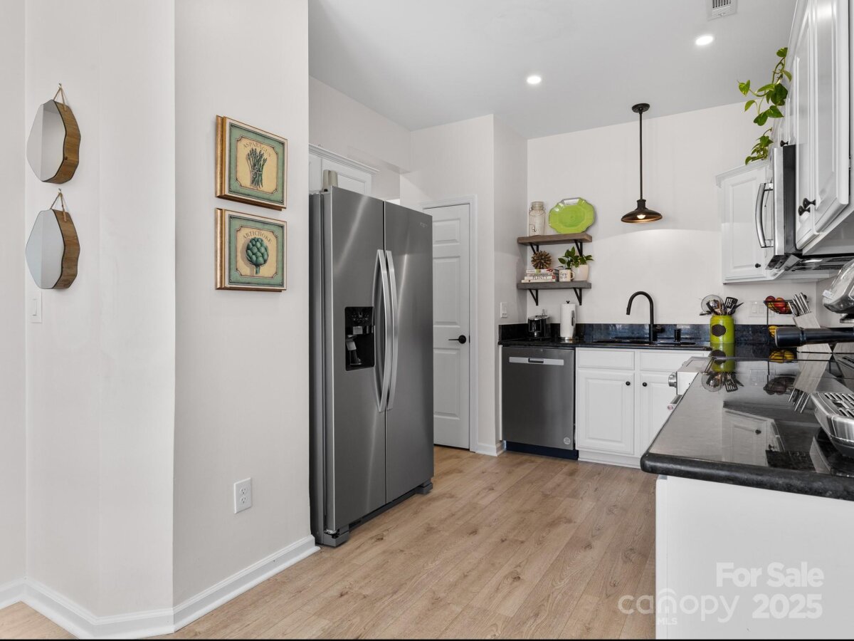 FRESHLY PAINTED. NEW APPLIANCES: DISHWASHER, MICROWAVE, FLAT GLASS TOP SLIDE IN Electrical STOVE and REFRIGERATOR. Main floor Primary bedroom suite with Primary Bath tiled shower and new vanity. Functional and spacious END unit with second floor LOFT with lots of light as it is END unit in the building. Two stories great room. FENCED back patio that is great for entertainment or family events and functionality. GRANITE countertop in kitchen. Recessed lights in both hallways, new upgraded light switches everywhere. Light LVP flooring throughout first and second floor. Garage painted and floor finished with anti-slippery EPOXY paint. Every bedroom has a huge walk in closet that is so important to keep all your clothes, packaging, hobbies' equipment organized. The unit is great for any life style. Huge walk-in finished attic. Plenty of parking on the street and parking lot for your family and friends. The disclosure- this property was primary residence of listing agent