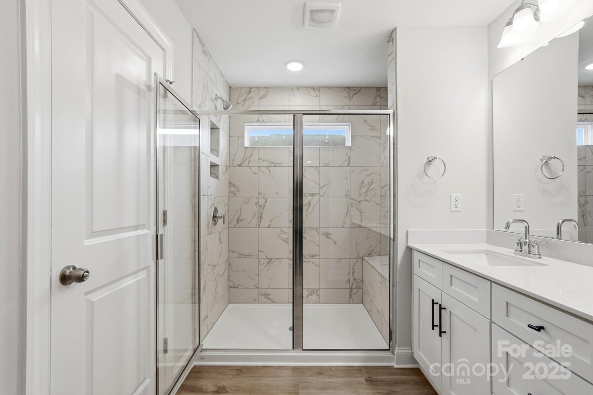 New townhomes in Harrisburg! This Bristol plan offers 3 bedrooms, 2.5 baths, and more than 1,700 square feet of living space. Upgraded wood trim creates a classic look to the foyer that has a large coat closet as well. The kitchen features white cabinets, white quartz countertops, and a white, subway tile backsplash. The kitchen also has plenty of storage cabinets and a walk-in pantry along with stainless appliances. Beautiful and durable Enhanced Vinyl Plank flooring (EVP) runs throughout the main level, and all baths feature quartz counters. The primary suite, located on the upper floor, includes a large walk-in closet and the primary bath features a tiled shower with bench seat and built-in niches and a dual-sink vanity. The upper floor also features two additional bedrooms, a full bath with tub/shower combo, and the laundry space. Enjoy the outdoors on the rear patio with a privacy fence panel between homes. Community amenities include outdoor pool & cabana, dog park, paved walking trail, and playground.