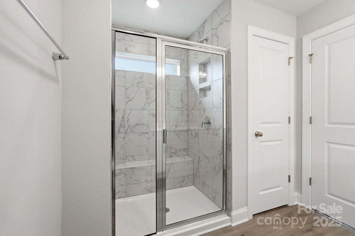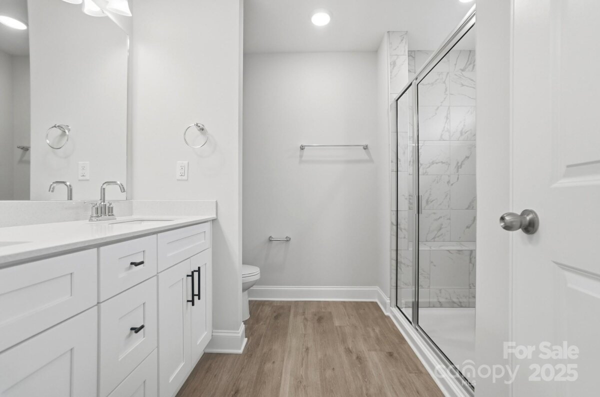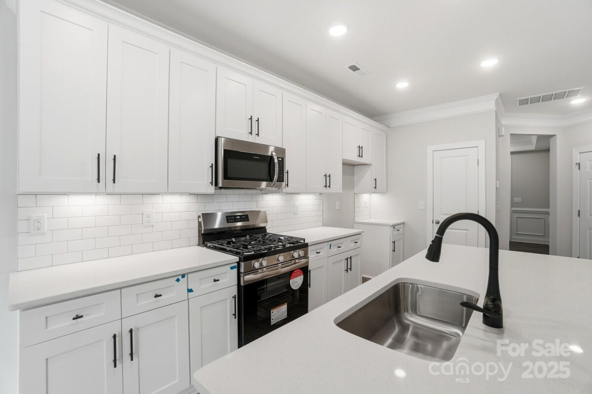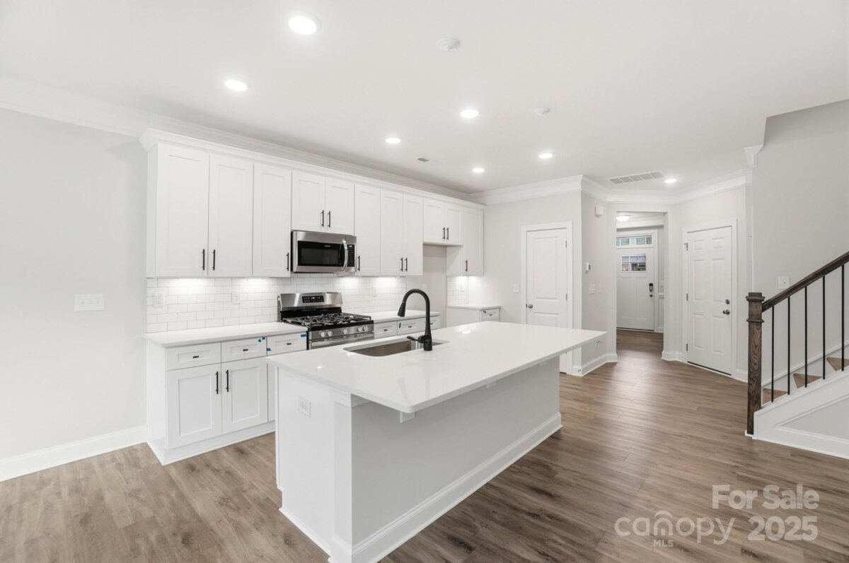 READY FOR YOU NOW! This Ashland plan has 3 bedrooms, 2.5 baths, a rear covered porch, and more than 1,800 square feet of living space. Crown molding lines the main living areas with wainscoting and a tray ceiling in the foyer. Beautiful Enhanced Vinyl Plank (EVP) flooring runs throughout the main level. The kitchen features a spacious island, white cabinets, white quartz counters, and a white subway tile backsplash to create an inviting, bright space. Stairs with composite treads & metal balusters lead to the upper floor that has a loft, laundry room, two secondary bedrooms, and the primary suite. The primary bath has a tiled shower with a bench seat and built-in niches along with a double-bowl vanity and linen closet. This home has a covered porch in the back that is enclosed on one side to give privacy. Community amenities include a dog park, playground, paved walking trail, outdoor pool & cabana.