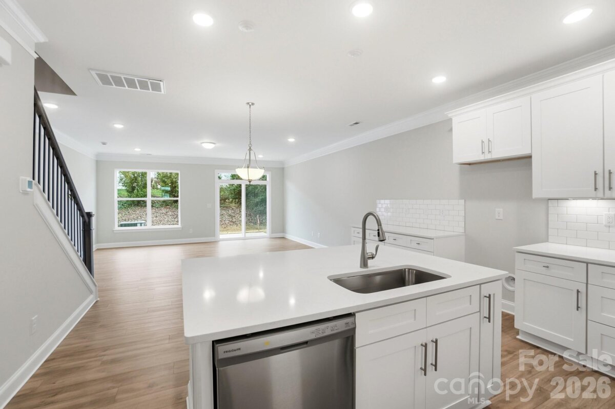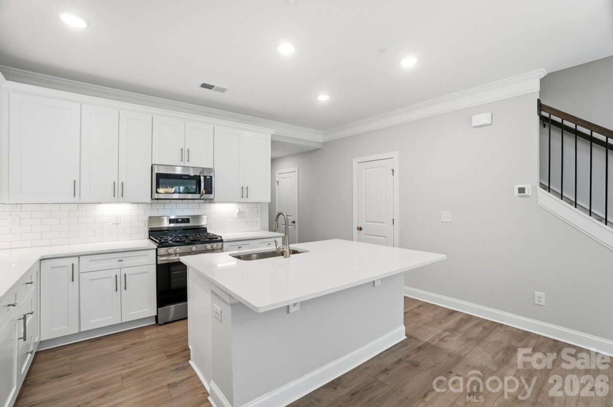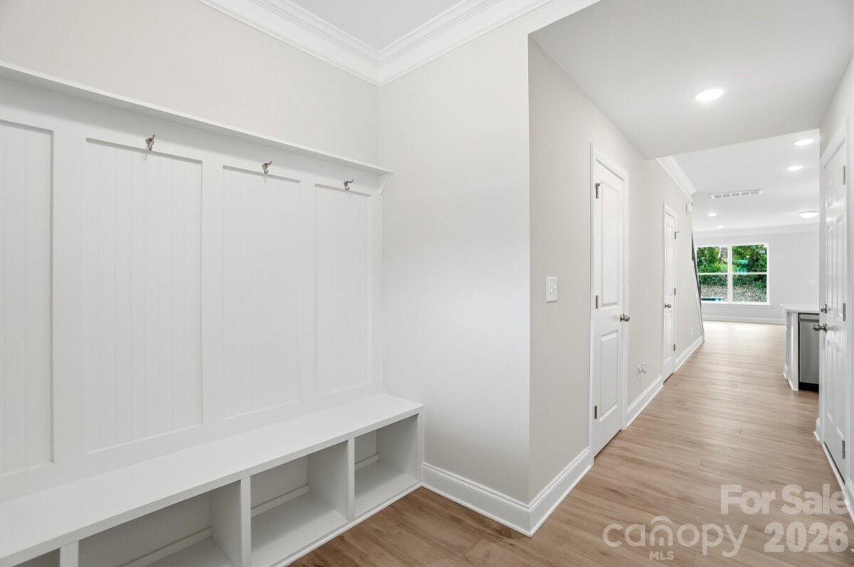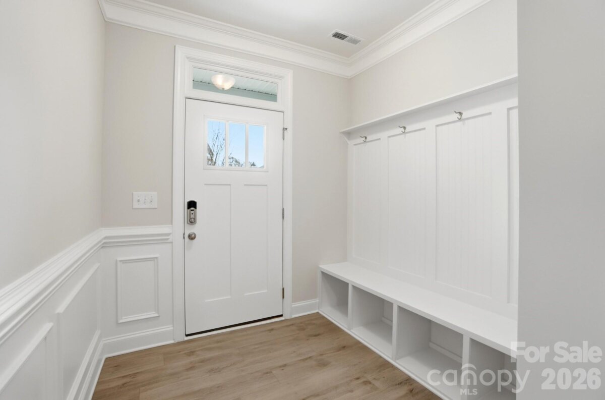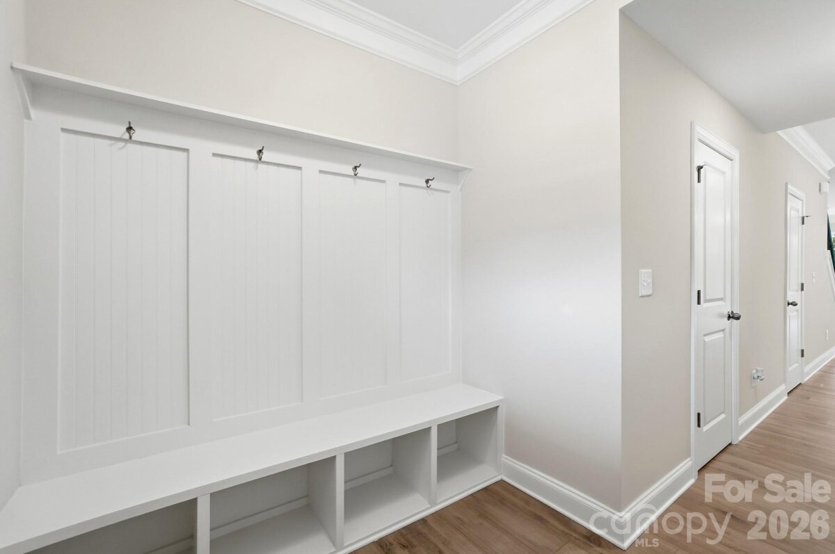READY NOW! This Bristol plan has 3 bedrooms, 2.5 baths, a 1-car garage, and more than 1,700 square feet of living space. The foyer has a beautiful, built-in, beadboard drop zone with cubbies and coat hooks. The kitchen features white cabinets, white quartz countertops, and a white subway tile backsplash, along with stainless appliances, including a gas range. The dining area has lower cabinets with quartz counter to create a buffet. Perfect for entertaining! Durable Enhanced Vinyl Plank (EVP) flooring runs throughout the main level. The primary suite, located on the upper floor, includes a large walk-in closet and the primary bath features a tiled shower with bench seat & built-in niches, and dual-sink vanity. The upper floor also features two additional bedrooms, a full bath with tub/shower combo, and the laundry space. Other design upgrades include crown molding in the main living areas and stairs with composite treads & metal balusters. Community amenities include outdoor pool & cabana, dog park, paved walking trail, and playground.