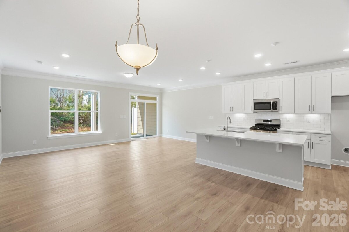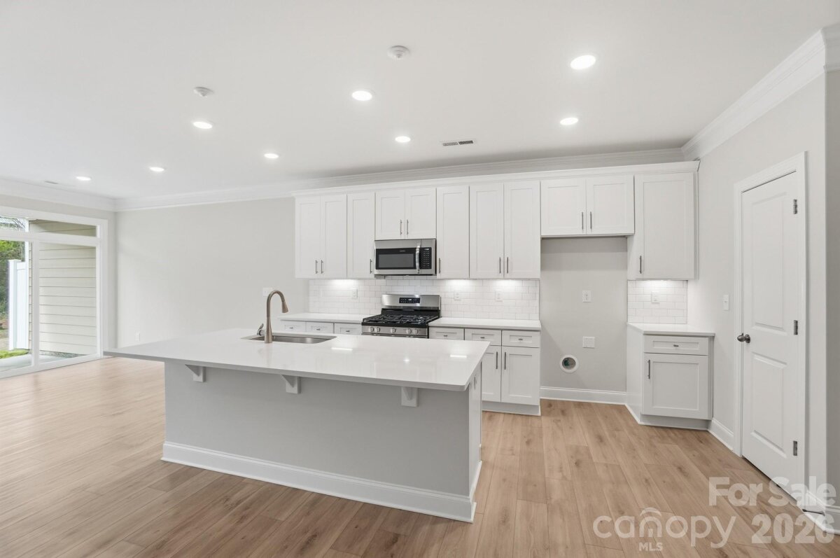 New townhomes in Harrisburg! This Ashland plan has 3 bedrooms, 2.5 baths, and more than 1,800 square feet of living space. The beautiful kitchen has Shaker-style, white cabinets, quartz counters, white tile backsplash, and stainless appliances, including a gas range. The kitchen opens into the dining area and family room. Stairs with metal balusters lead to the upper floor that has a loft, laundry room, two secondary bedrooms, a hall bath, and the spacious primary suite. The primary bath has a tiled shower with a bench seat, dual-sink vanity, and a linen closet. Additional extras include a foyer with tray ceiling and a built-in drop zone and quartz counters in all baths. This home has a rear covered porch and a privacy fence between rear yards. Community amenities feature a dog park, playground, paved walking trail, outdoor pool & cabana.