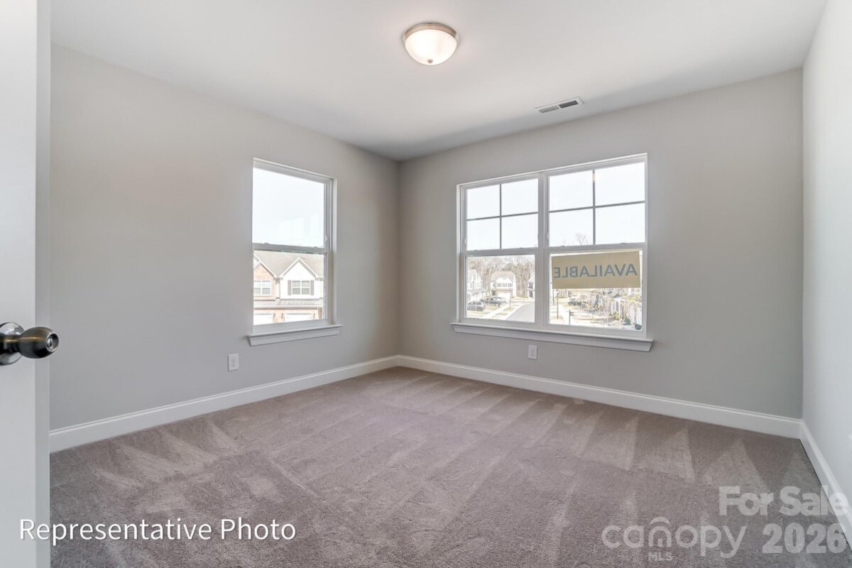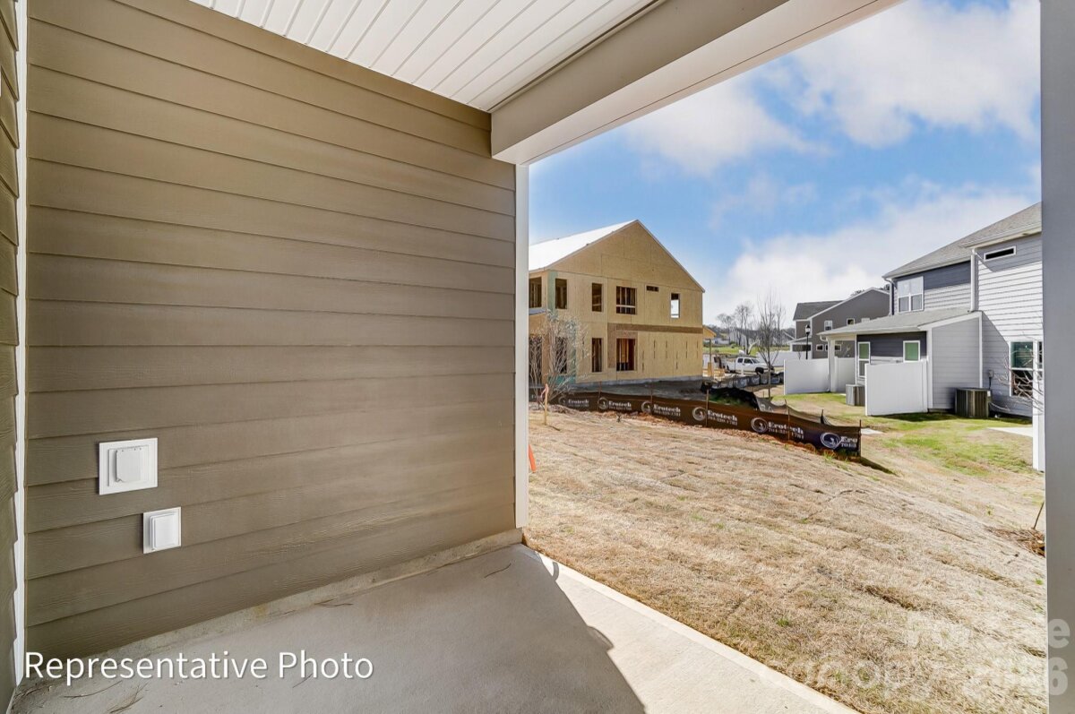 This end-unit Norman plan offers three bedrooms, 2.5 baths, a rear covered porch, and more than 1,900 square feet of living space. Beautiful and durable Enhanced Vinyl Plank (EVP) flooring runs throughout the main level, which includes the foyer with tray ceiling, a half bath, family room, dining area, and kitchen. The kitchen features Shaker-style white cabinets, quartz counters, white tile backsplash, and stainless appliances, including a gas range and microwave. The upper floor has a loft, the laundry space, two secondary bedrooms, a full bath with tub/shower combo, and the spacious primary suite. The primary bedroom has a large walk-in closet, and the primary bathroom has a tiled shower with bench seat, a double-bowl vanity, and linen closet. All bathrooms feature white cabinets and white quartz counters. Other extras include stairs with composite treads and metal balusters and upgraded wood trim. Community amenities include a dog park, walking trails, a playground, outdoor pool, and cabana.