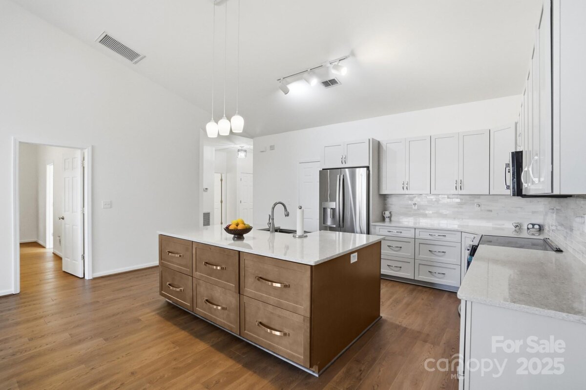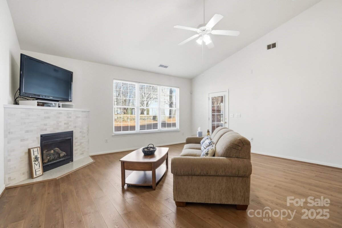 A MUST SEE!! Beautiful updated townhouse located in Harrisburg minutes from Town Center. Luxury vinyl plank installed throughout, as well as kitchen and bathroom updated in 2024. Kitchen features soft close cabinets, quartz countertops, stainless farmhouse sink, new appliances and huge island with deep drawers for extra storage. There is also has a great "flex" space off of kitchen for a home office or large pantry. Second bathroom features a new vanity and walk-in shower. Primary bedroom has vaulted ceiling, large walk-in closet and ensuite bath with double vanity, garden tub and separate shower. The open floorplan and vaulted ceilings give it a spacious feel, gas fireplace featuring a custom surround and sunroom off the great room make it a great space to relax or entertain. Located in a well maintained neighborhood with pool, playground, clubhouse and walking trails that is convenient to dining, shopping and interstate.