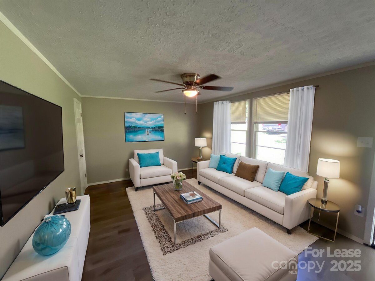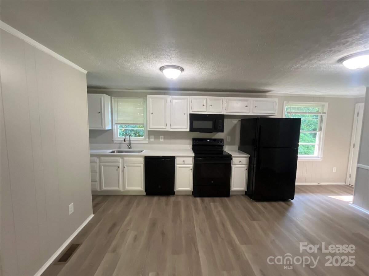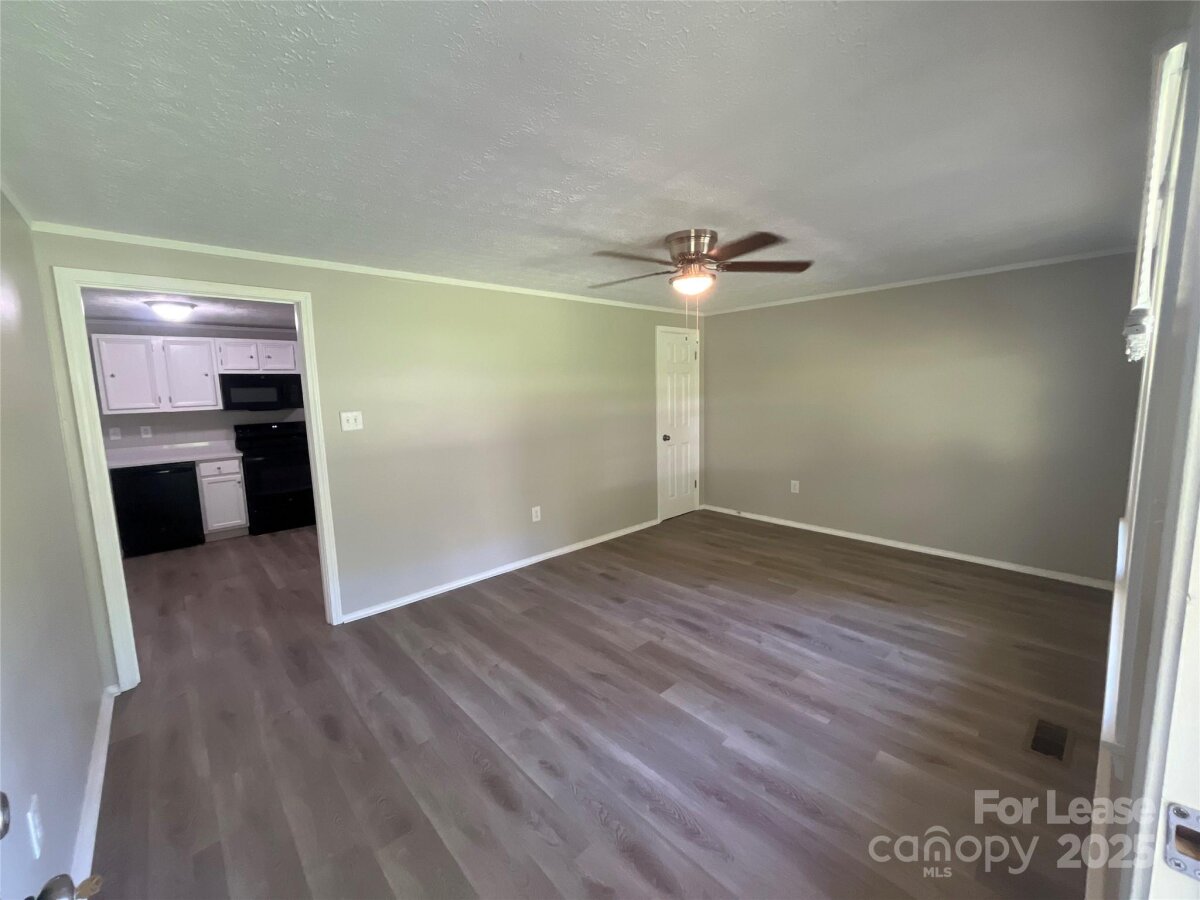 Experience comfortable one-story living in this updated 960 sq ft, 3-bedroom, 1-bathroom ranch-style home in Harrisburg, NC. Recently refreshed, this home features new LVP flooring in the common areas, plush carpet with padding in the bedrooms and a modern color palette throughout. *Please note this home is unfurnished. Virtual staging has been implemented to enhance visual placement of furniture. As you enter the home, you are welcomed by a bright living room filled with natural light and equipped with a ceiling fan to enhance comfort. The adjacent kitchen boasts new black appliances, stylish white cabinetry, and a sleek quartz countertop, making meal preparation a breeze. The primary bedroom offers a ceiling fan for added comfort, while the shared bathroom has been upgraded with contemporary fixtures. Additional conveniences include washer and dryer hook-ups. Central air conditioning and heating ensure a comfortable environment year-round. The home is complemented by a spacious yard, perfect for outdoor enjoyment.