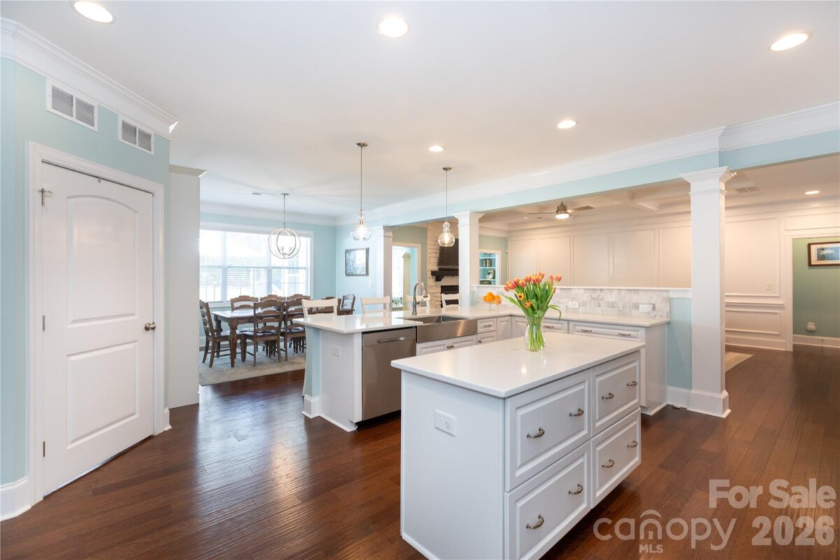 Spacious, thoughtfully designed, and impeccably maintained - this stunning 5 bedroom, 4 bath home offers over 4,600 square feet of comfortable, functional living - perfectly suited for multigenerational families. Designed with both everyday living and entertaining in mind, the main level features a luxurious primary suite with vaulted ceilings, a large walk-in closet, and a beautifully appointed ensuite bath. The heart of the home is the expansive kitchen with a generous breakfast area, seamlessly flowing into the great room and light-filled sunroom, creating an open and inviting space to gather. A formal dining room and dedicated office provide the perfect balance of elegance and practicality for hosting and working from home. Upstairs, you will find four spacious guest bedrooms along with a bonus room, offering incredible flexibility. Whether used as a secondary suite, media room, playroom, or private retreat, the layout adapts effortlessly to your needs. Step outside to enjoy a fully fenced backyard featuring an extended concrete patio and a large, flat grassy area -ideal for entertaining, pets, or play . Additional highlights include TWO laundry rooms (one on each level), 10 foot ceilings, a side facing three-car garage, extended driveway for ample parking, and a location within the desirable Grantham community, offering neighborhood amenities such as a pool, playground, and "Summer House" entertaining space. This immaculate home is better than new with its pristine condition and loving updates. It combines space, versatility, and modern comfort in one exceptional package. Just minutes from the 485 loop, great proximity to Uptown, Matthews, and Huntersville.