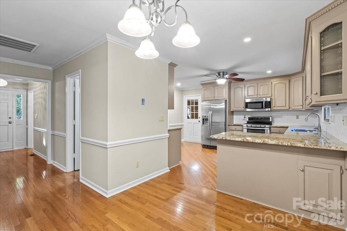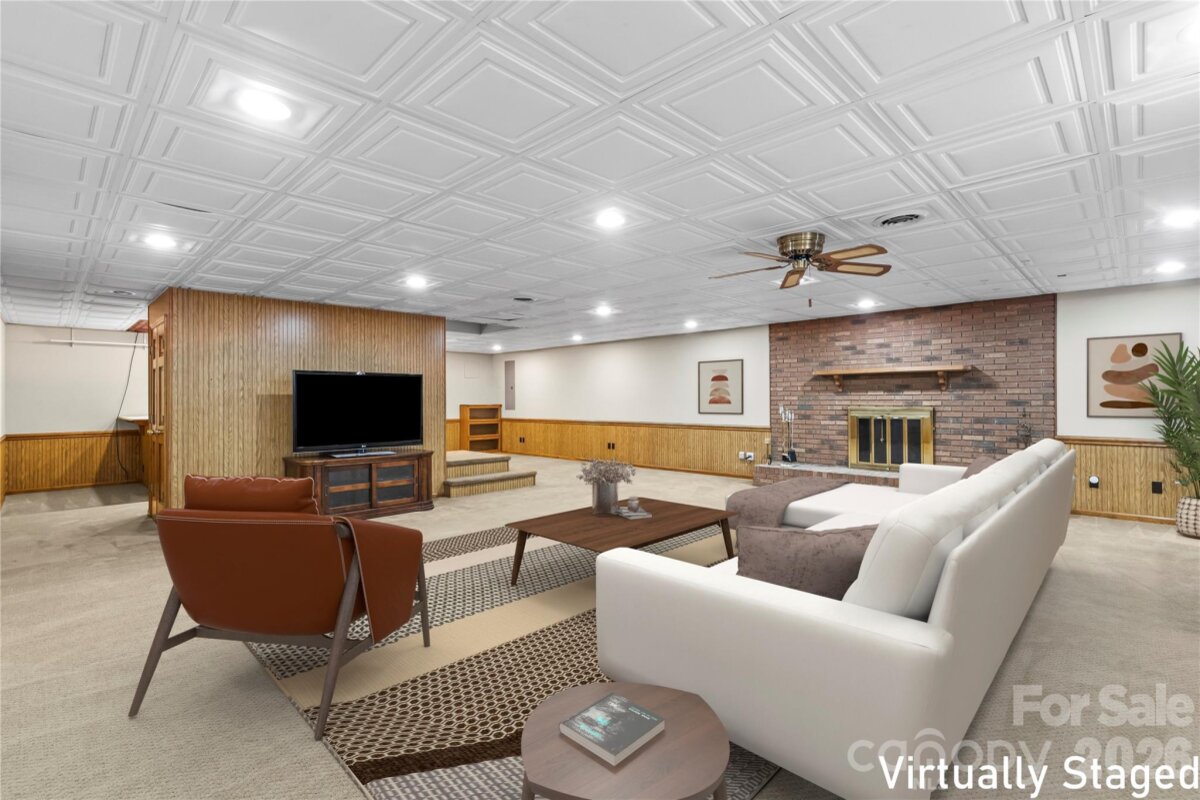 Welcome to 1061 Fairway Drive, a beautiful brick ranch set on a private 1.76-acre lot in Kannapolis, North Carolina, just across from Irish Creek Country Club. Built in 1990 with numerous updates, this spacious home offers approximately 3,851 square feet of refined living space that blends comfort, style, and functionality. While the home is officially listed as a 3-bedroom property per the septic permit, it features a fourth room with a closet and window that fully functions as a bedroom—offering valuable flexibility for guests, extended family, or a home office. A welcoming foyer opens into a bright, open-concept living area with hardwood floors, crown molding, and large windows that fill the space with natural light. The layout flows seamlessly into the dining area and gourmet kitchen, complete with granite countertops, stainless steel appliances, custom cabinetry, and a charming breakfast nook—ideal for both everyday living and entertaining. The primary suite serves as a private retreat with a walk-in closet and spa-inspired bath featuring dual vanities, a jetted tub, and an updated shower. Two additional bedrooms are located on the main level, while the finished basement includes the versatile fourth room (with closet and window), along with a cozy wood-burning fireplace, half bath, and additional flexible living space perfect for a media room, recreation area, or fitness studio. The lower level also offers a garage/workshop that opens directly to the backyard. Outside, the 1.76-acre lot provides privacy and endless possibilities for outdoor living, complemented by a large screened-in porch with a ceiling fan and electrical outlets. A private driveway and attached two-car garage complete the home’s impressive curb appeal. Combining nearly 4,000 square feet of living space with the flexibility of a functional fourth bedroom option, 1061 Fairway Drive offers exceptional versatility, space, and value in a desirable location.