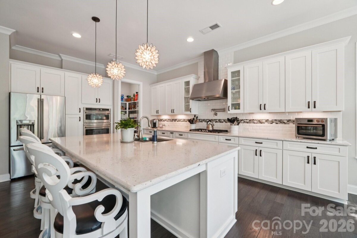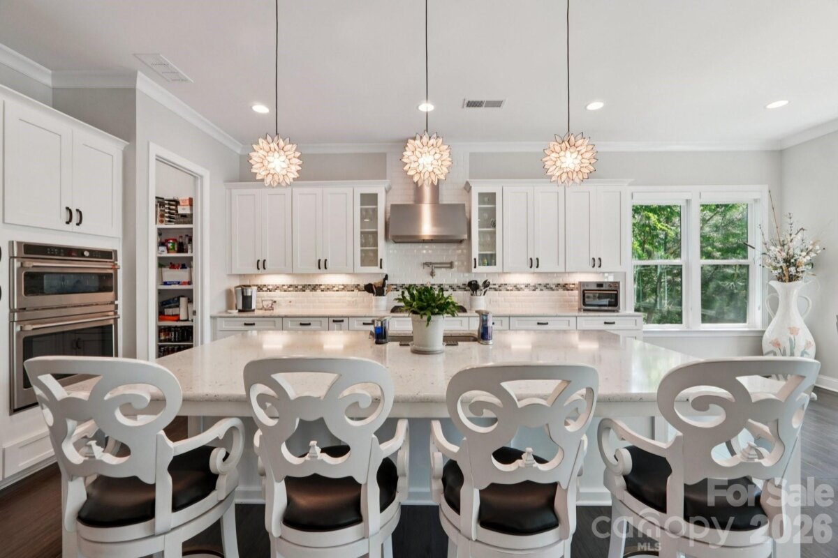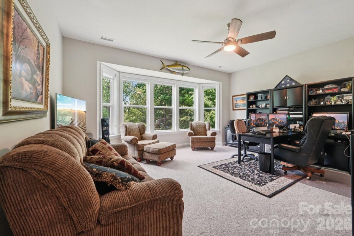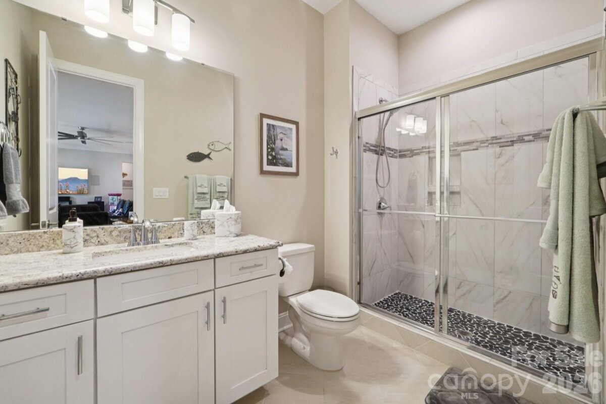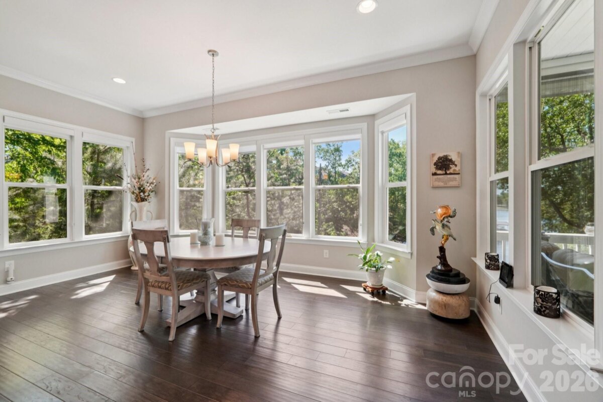 Welcome to resort-style living on the shores of Lake Wylie! This stunning lakefront masterpiece was thoughtfully positioned on the lot to maximize breathtaking sunset and lake views. With a spacious, open floorplan and upgrades too numerous to list, this move-in ready home on a cul-de-sac is the one you've been waiting for. The main level welcomes you with soaring ceilings, a grand great room anchored by a beautiful fireplace, and sweeping views that draw you straight to the oversized porch — the perfect place to unwind year-round. The gourmet chef's kitchen is an entertainer's dream, featuring a massive island, GE Café premium appliances, soft-close cabinetry throughout, under-cabinet lighting, and a walk-in pantry. The main-level primary suite is a true retreat, showcasing bay windows perfectly framed to capture the lake views, ensuite bath with double sinks and vanities, a separate soaking tub and shower, a private water closet, and a generous walk-in closet, all with a conveniently connected laundry room. A dedicated main-level office with closet, a guest bedroom with full bath, an additional half bath for guests, and a drop zone entry from garage round out the main level living areas. Downstairs, you'll forget you're in a basement — because this is truly a second living quarters. Featuring tall ceilings, a 2nd primary suite, an open living area, a fully equipped kitchenette (GE Café fridge, sink & island), a fully furnished wine room with double coolers, a 4th bedroom with a massive walk-in closet, a 4th full bath, a full surround sound system, a walk out patio, and large finished storage — it's a home within a home. Step outside to your private waterfront paradise. The low-maintenance aluminum dock features a solar-powered boat lift and cover with lighting, paddleboard/kayak storage, fishing chairs, bench, and umbrella for shade. Deeper water accommodates a wide variety of boats and watercraft. Unwind at the sandy beach area with a firepit and adirondack chairs — the ultimate lakeside retreat. A tri toon boat (under 100 hrs, 4 yrs old) is available for separate purchase. Additional highlights include built-in porch speakers, programmable landscape lighting, up-lighting on trees, Leafguard gutters, bay windows on upper and lower levels for extended lake views, and a radon mitigation system. Pristine curb appeal, lush surroundings, and easy dock access complete this one-of-a-kind offering. Perfectly situated for both lakefront serenity and everyday convenience, 17914 Culross Lane offers the best of both worlds. Golf enthusiasts will love the proximity to The Palisades Country Club, while the charming communities of Tega Cay and Fort Mill are just minutes away — offering an abundance of shopping, dining, and everyday amenities. Easy access to major corridors makes commuting to Uptown Charlotte and beyond a breeze, all while coming home to your own private lakeside paradise on Lake Wylie. Welcome home!