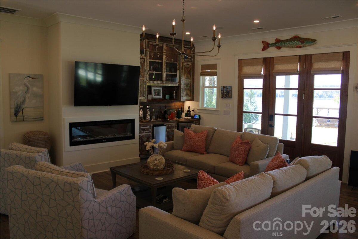 Experience elevated lakefront living on beautiful Lake Wylie in Charlotte, NC. This stunning 4-bedroom, 5-bath home blends comfort, style, and effortless entertaining in a prime location just minutes from shopping, dining ,uptown Charlotte, and airport. Step inside to an open-concept floorplan filled with natural light, anchored by a spacious family room featuring a custom wet bar complete with beverage fridge and icemaker—perfect for hosting gatherings. The chef’s kitchen is a true centerpiece, highlighted by a large island, ample workspace, propane cooktop and seamless flow into the main living areas. The owner’s suite is a private retreat, offering generous space and a spa-inspired bath with a soaking tub, walk-in shower, and luxurious finishes designed for relaxation. Outdoor living is just as impressive. Enjoy peaceful mornings and sunset views from the expansive covered front and back porches. The private covered dock with lift and seating makes lake days effortless, while the large backyard propane firepit area creates the perfect setting for evenings under the stars, entertaining, or simply unwinding by the water. A detached garage adds versatility with an incredible bunkhouse featuring a flex space/office and bath—ideal for guests, extended family, or a private office retreat. With room to enjoy both indoors and out, plus direct access to watersports and all that Lake Wylie has to offer, this property is a rare opportunity to own your own slice of waterfront paradise.