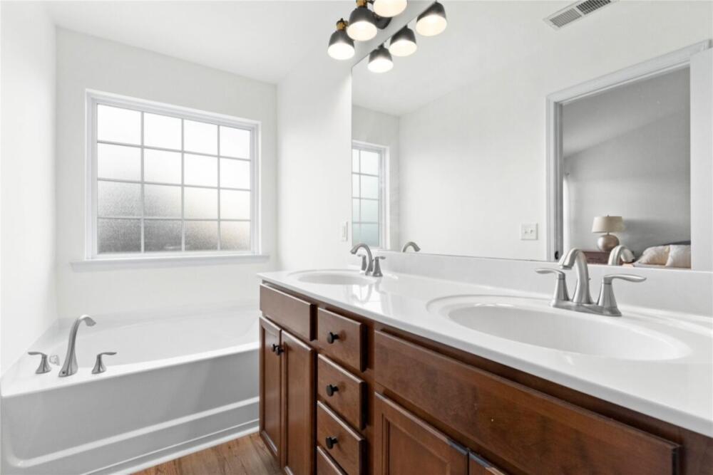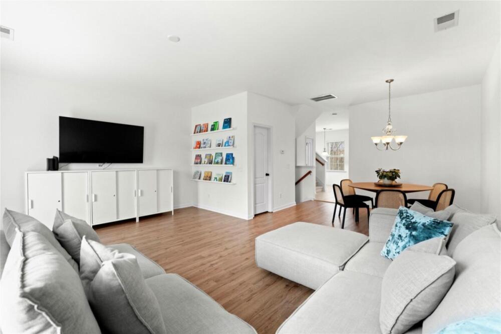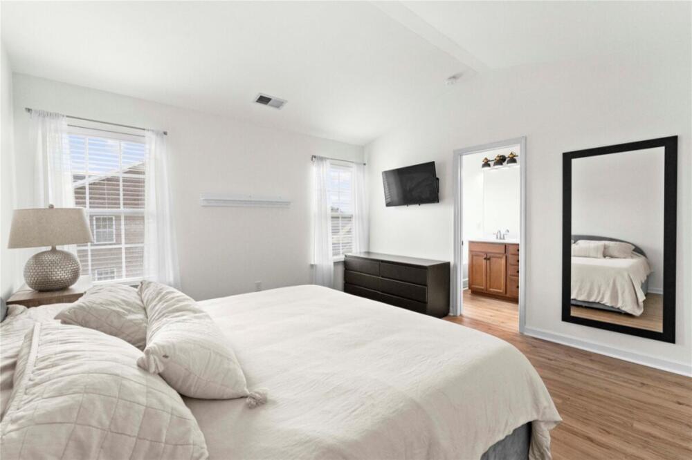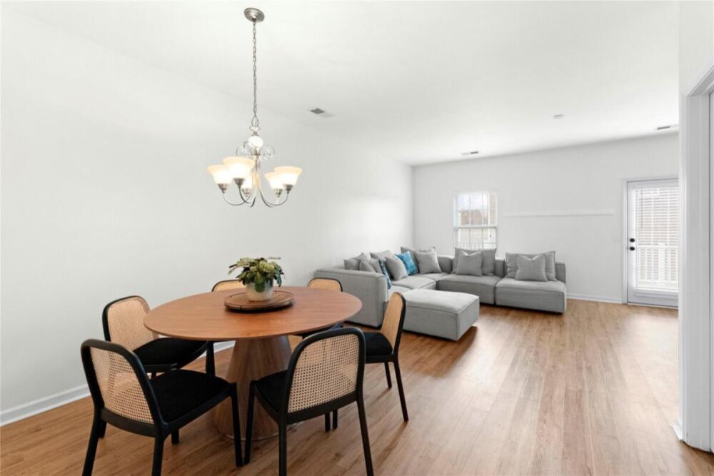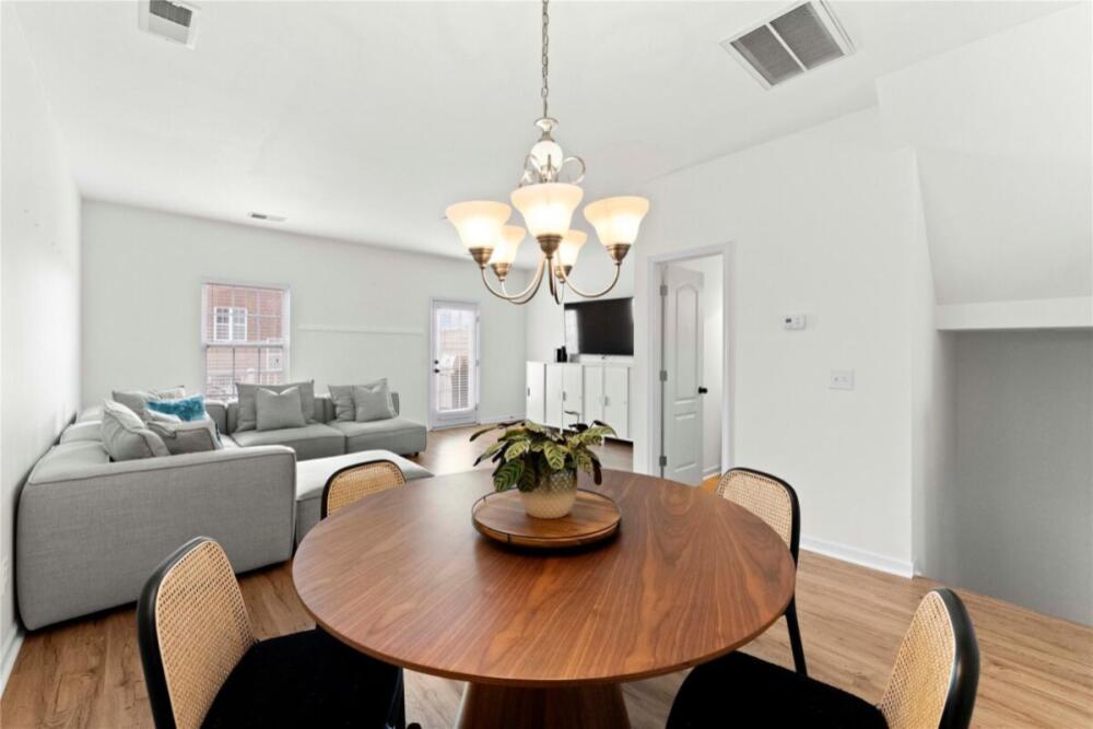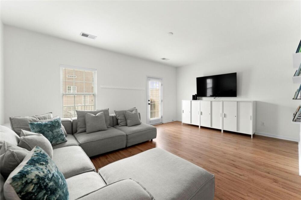 Beautifully positioned on leafy Kemptown Square, this 3-bed, 4-bath townhouse offers the very best of contemporary suburban living with its elegant 3-story floor plan, flawless presentation and sought after location. The frontage offers a heartfelt welcome with its eye-catching classic style, while the interior creates a real sense of ease and comfort with its high ceilings, lovely natural light, and a color palette that combines soft tones with warm wood. Daily activity will be enjoyable, with a cozy downstairs living room, and the open-plan second floor offering a spacious living and dining room, as well as an eat-in kitchen that showcases pristine stone countertops and modern appliances. The huge deck is perfect for summer entertaining and relaxing, and all of the bedrooms are generously sized with comfort in mind. With an internal double garage and a large driveway, residents have access to plentiful parking space. Brand new water heater, dishwasher, and LVP floors throughout!