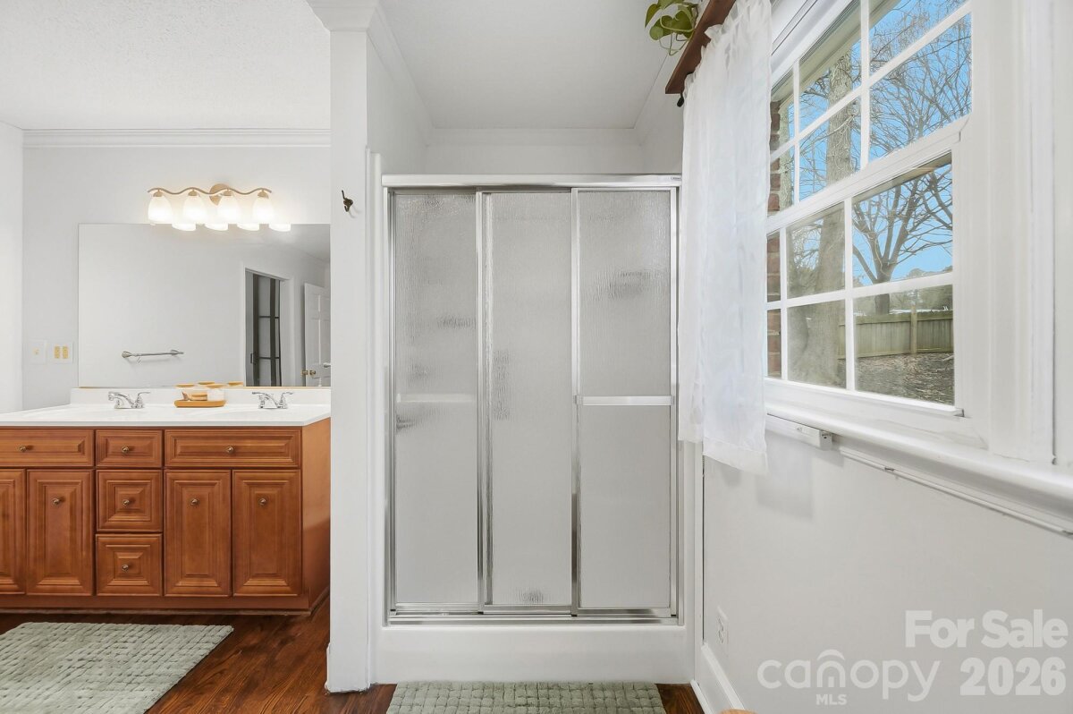 Welcome home to Farmwood - one of Mint Hill’s most desirable neighborhoods. Located on more than an acre of land with a golf course view, this full brick, 4 bedroom, 4 bath home features TWO primary bedrooms, a fenced back yard, storage shed and a greenhouse for all your gardening needs. Step inside to the entry hall where you will find a generous size formal dining room that opens to the well equipped kitchen, cozy great room, and one of two primary suites featuring a private bath and walk-in closet. A second full bath, conveniently located laundry room and mudroom entry off the garage completes the main level. On the upper level you will find the second primary suite with a private bath and walk-in closet, 2 generous size secondary bedrooms and a full hall bath. There are plenty of storage closets throughout the home plus a two car side load garage provides additional storage along with a storage shed and a greenhouse. Enjoying the outdoors is easy from the patio overlooking the fenced back yard or golf course views from the front porch. There is no HOA but buyers can inquire about membership costs at Pine Lake Country Club directly across the street. Great location positioned between Mint Hill and Matthews giving you quick access to both downtown areas where you can enjoy walking to outdoor dining spots & farmers markets!