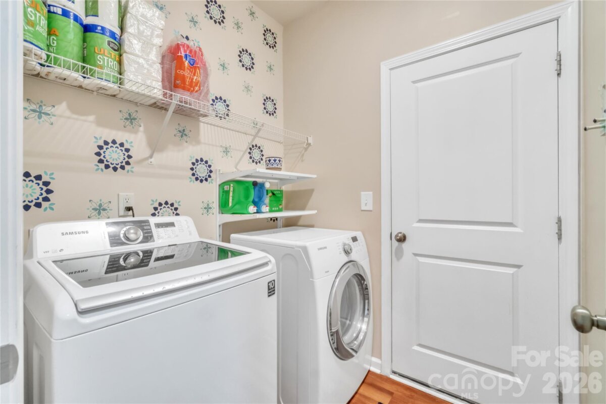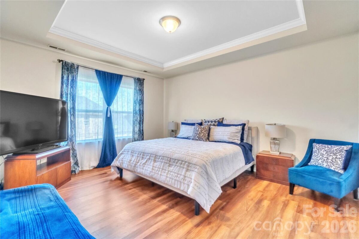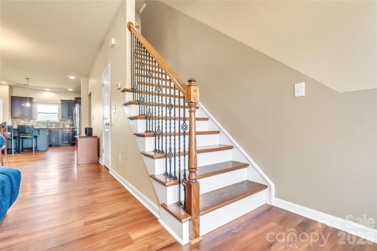 The home is a MUST SEE! Upon entering, you will find an open floor plan with durable wood flooring throughout the main level. Open family room and dining room creates a perfect layout for everyday living or entertaining. Beautiful kitchen with a spacious island with bar seating. Stainless steel appliances, gas stove, granite counter tops, backsplash and ample cabinet space compliments the kitchen's design. Recessed lighting and pendant lighting above island. Primary bedroom located on main level. Primary bath offers dual vanities and a walk in shower. Large walk in closet, great for additional storage. Oversize bonus room, great for additional gathering space, playroom, office space or media room. Nice size secondary bedrooms. Large backyard featuring oversized patio space, great for grilling, entertaining or relaxing. Don't miss out on the opportunity to make this beautiful home yours!