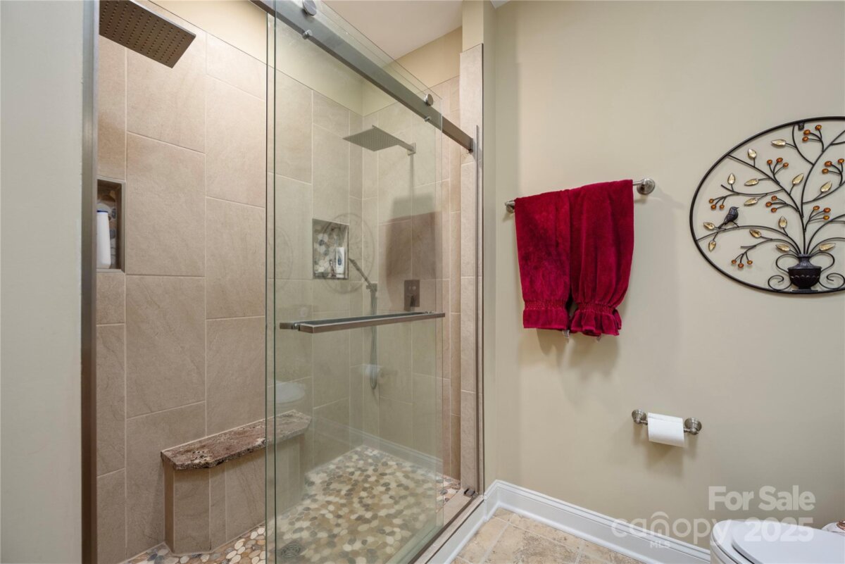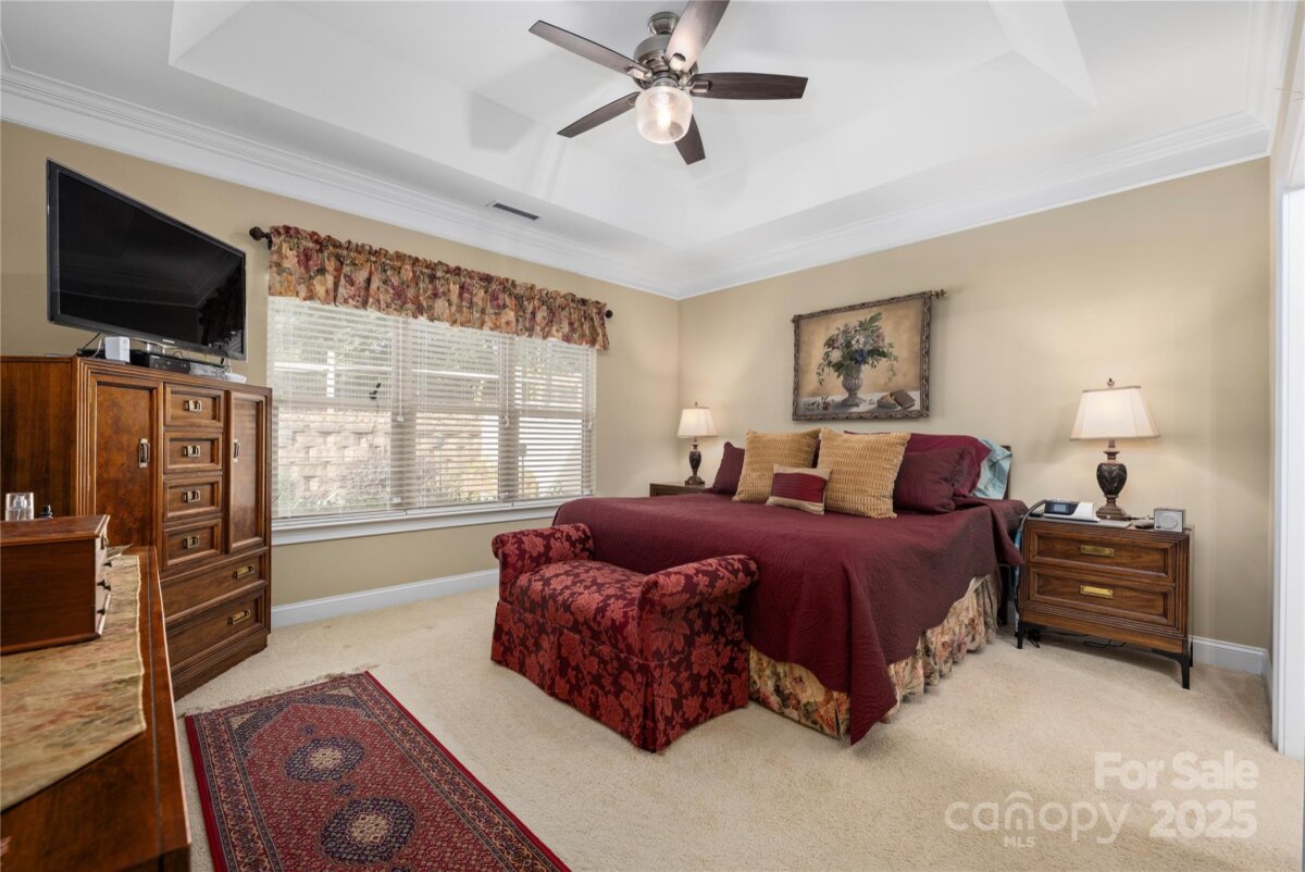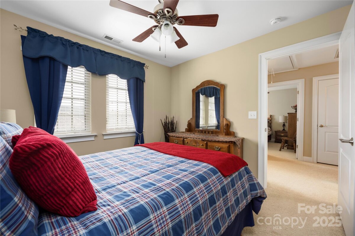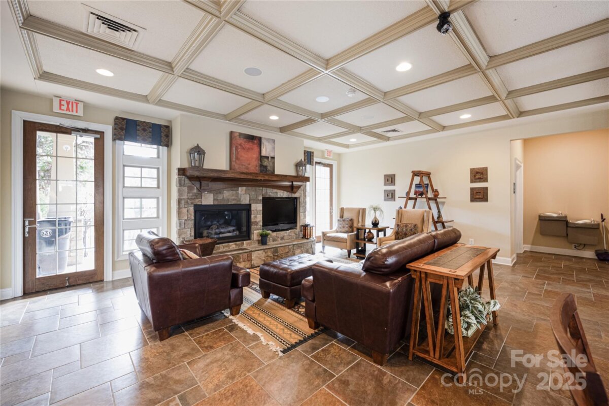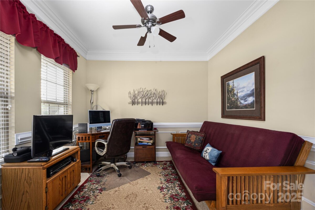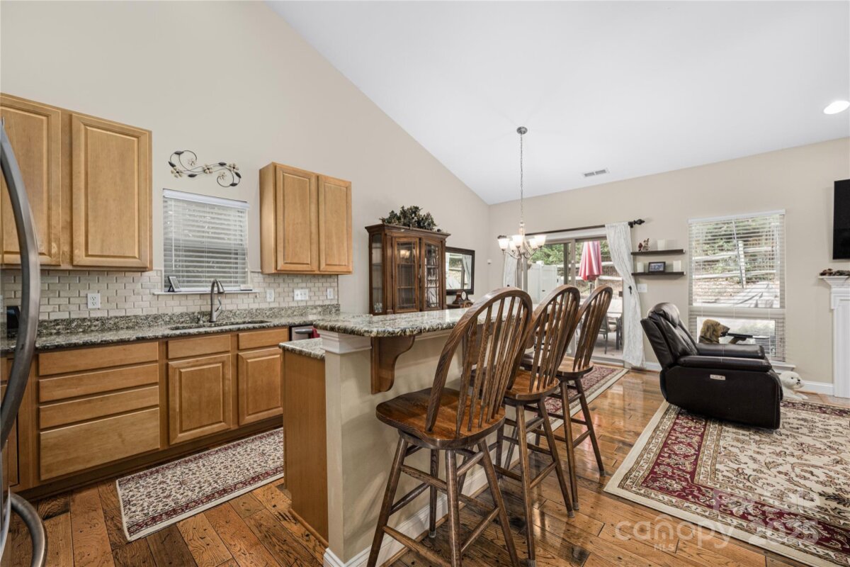 Quality Craftsman-style duet townhome featuring a hard-to-find main-level Primary Bedroom En suite and attached 2-car garage. This former model, end unit home was built with upgraded finishes, detailed crown molding, and hardwoods throughout the main level. A rocking-chair front porch with flagstone sets a welcoming first impression. Inside, the foyer opens to a versatile office/flex room with French doors. The open-concept kitchen includes recently updated Gallery stainless steel appliances, granite counters, ample pantry space with custom storage, and a functional layout ideal for everyday living. The kitchen flows into the vaulted two-story great room with gas-log fireplace and adjoining dining area. New Andersen sliders lead to a private, low-maintenance Trex deck and paver patio, perfect for outdoor enjoyment. The main-level Primary Suite features a coffered ceiling, large walk-in closet, and a newly updated ensuite bath with a dual walk-in tile shower, granite counters, and refreshed fixtures. Upstairs offers a cozy reading nook, two comfortable bedrooms—one with a walk-in closet—and an updated full bath with granite counters and a new toilet. Recent Updates - Roof 2024, HVAC 2023, Tankless hot water heater 2021, New Gas Logs w/ remote. Simply Safe security conveys, Ring doorbell, Video garage door key pad w/ MyQ app. Clubhouse with fitness equipment just steps away, plus a fantastic gathering area featuring a full kitchen, a see-through fireplace on the covered rear patio, beautifully maintained English gardens, and community walking trails. Located in a prime Mooresville location, close to shopping, hospitals, and everyday conveniences, this property delivers comfort, flexibility, and low-maintenance living in a highly desirable community.