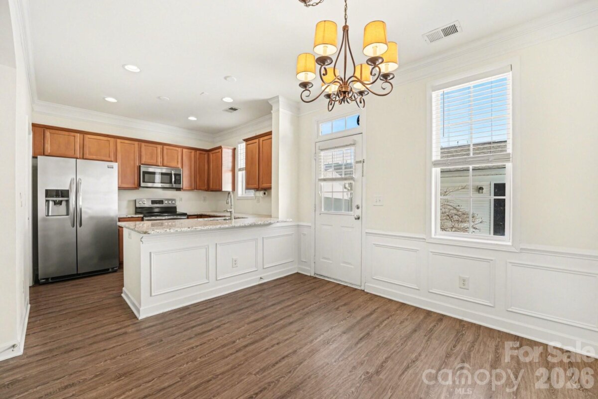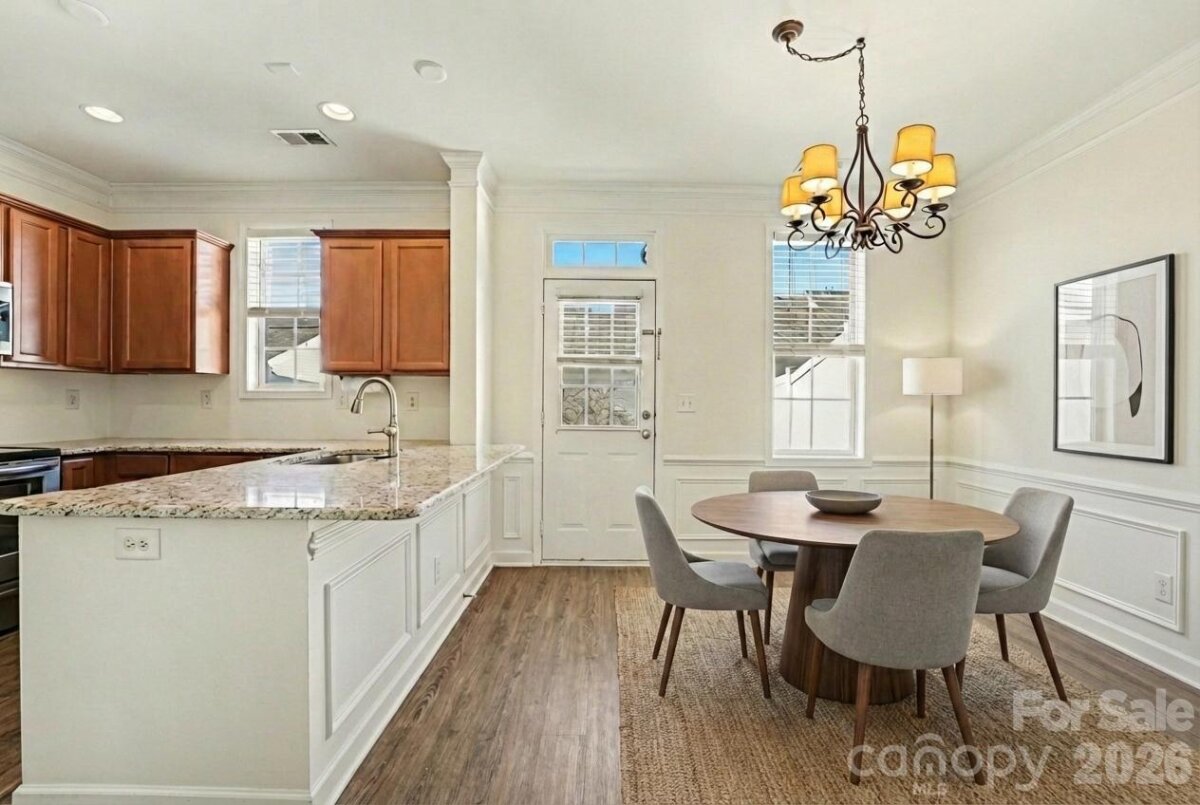 Welcome to **180 Singleton Road** in the Townhomes of Morrison Plantation, in the heart of Mooresville. Surrounded by a beautiful tree canopy and charming Charleston-style streetscape, this full brick, 3-sided end unit (built 2005) offers abundant natural light, added privacy, and excellent airflow. Featuring 3 bedrooms, 2.5 baths, and a gas log fireplace, the home blends comfort and timeless style. LPV flooring on the main and carpet upstairs were updated in 2017. The 2017 kitchen renovation includes granite countertops, a lowered bar, and stainless-steel appliances. Additional improvements: 40-gallon water heater, garbage disposal, and NEW roof in 2023. Enjoy a private fenced yard leading to a detached 2-car garage for better air quality - a rare find. HOA is just $140/month. Located in a vibrant, established community known for mature trees, great schools, and unmatched walkability. Sidewalks connect you to groceries, farmers markets, coffee shops, banks, restaurants, breweries, salons, boutiques, auto services, the YMCA, plus more! Pet-friendly with two fenced dog parks. Only 3.5 miles to Lake Norman for boating and recreation. Luxury, location, and lifestyle - all in one of Mooresville’s most sought-after neighborhoods.