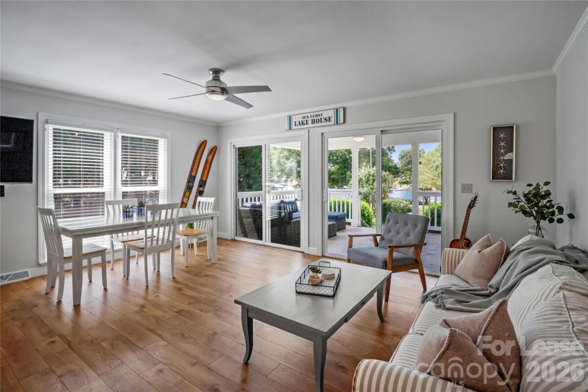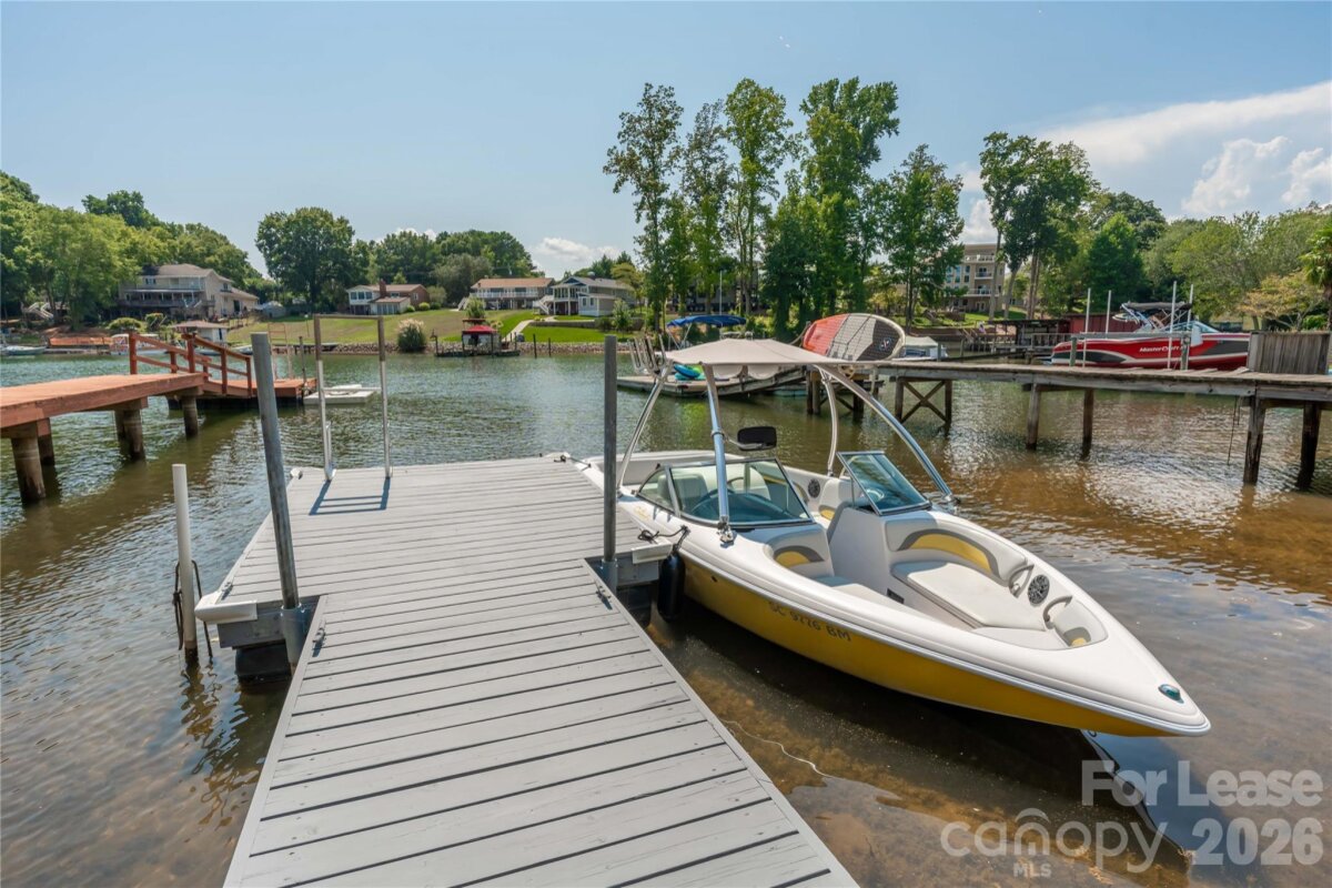 WATERFRONT! Furnished, short-term rental which includes all utilities, trash, & lawn care. The home is available as a weekly rental at seasonal rates and also longer terms. This property is nestled along the shores of Lake Norman in a cove just off the main channel. Upon arriving, you will notice a circular drive with abundant parking. The kitchen, living, and dining areas are open to each other, which is great for entertaining. Each bedroom is adequately sized. Two bedrooms provide water views of Lake Norman. There is a floating dock that will accommodate a pontoon boat. There is a large covered patio with furniture and a deck that overlooks the private backyard surrounded by trees for privacy.