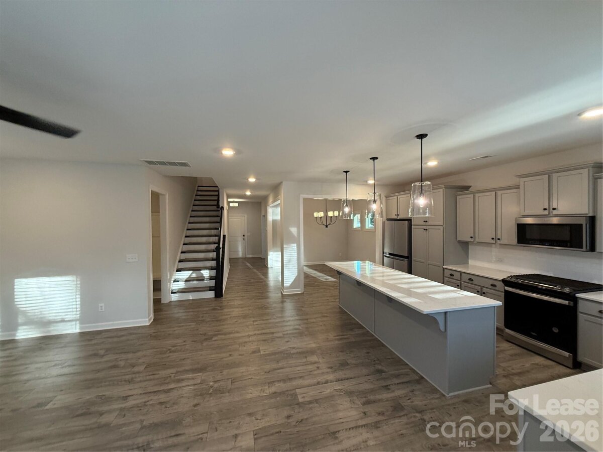 Private lot adjoined to a neighborhood with NO HOA. Mooresville schools and minutes away from Lake Norman, Main Street Mooresville and Davidson. Spacious Riley 5BR / 4BA floorplan plan with 3,163 SF heated living area and 2-car garage situated on a large 0.251 acre lot. The Riley features 9ft ceilings on main with private study, dining room, kitchen overlooking large great room with gas fireplace, access to rear 11x12 deck, and guest bedroom with full bathroom. Second level features 3 spacious secondary bedrooms, 2 additional full bathrooms, bonus room, laundry room, and large owner's suite with luxury rain head shower in ensuite. Cptions/Upgrades include electronic deadbolt, garage door opener, stainless steel appliances, including gas range, upgraded tile backsplash, quartz countertop, and much more!