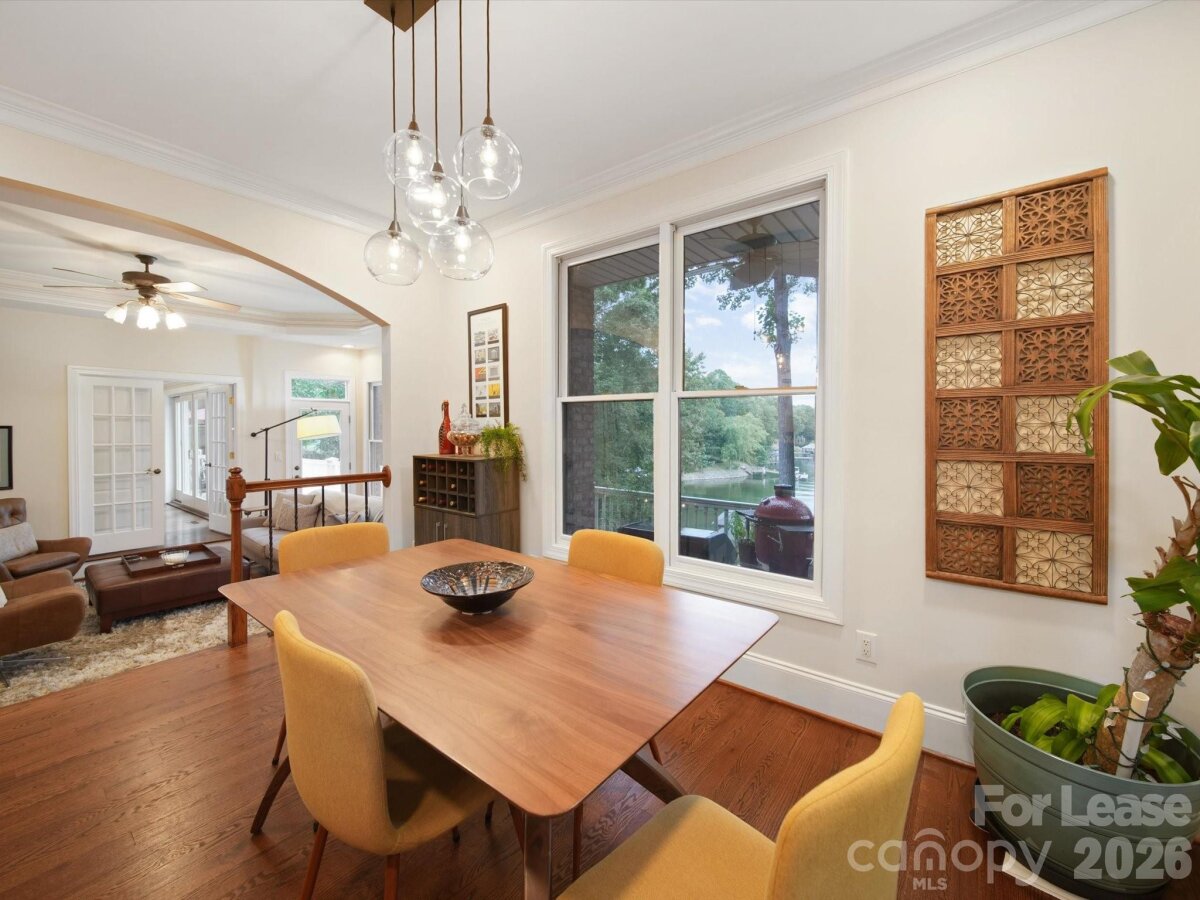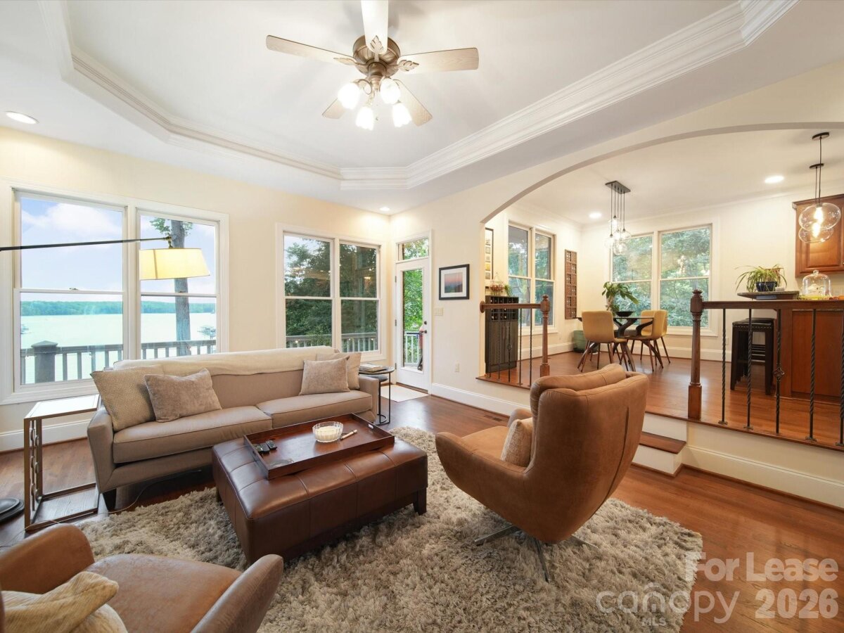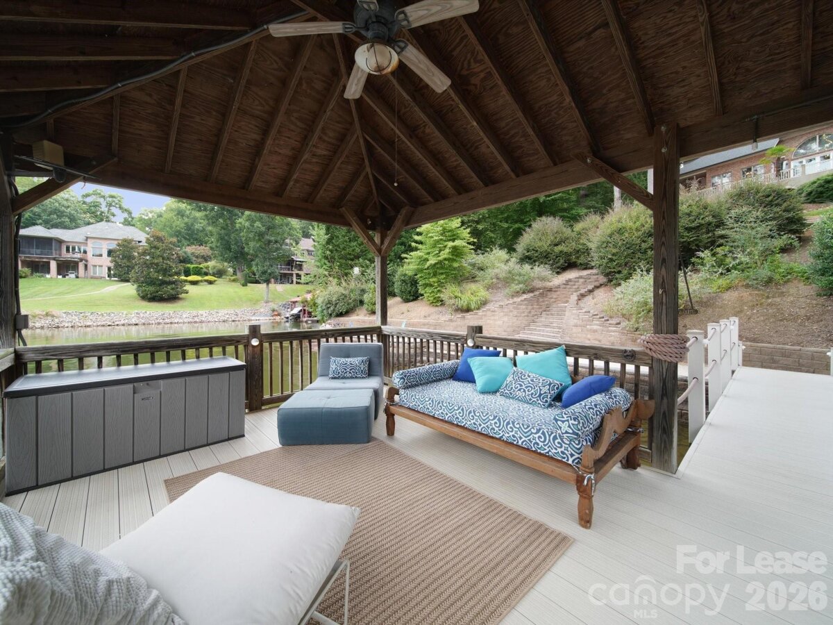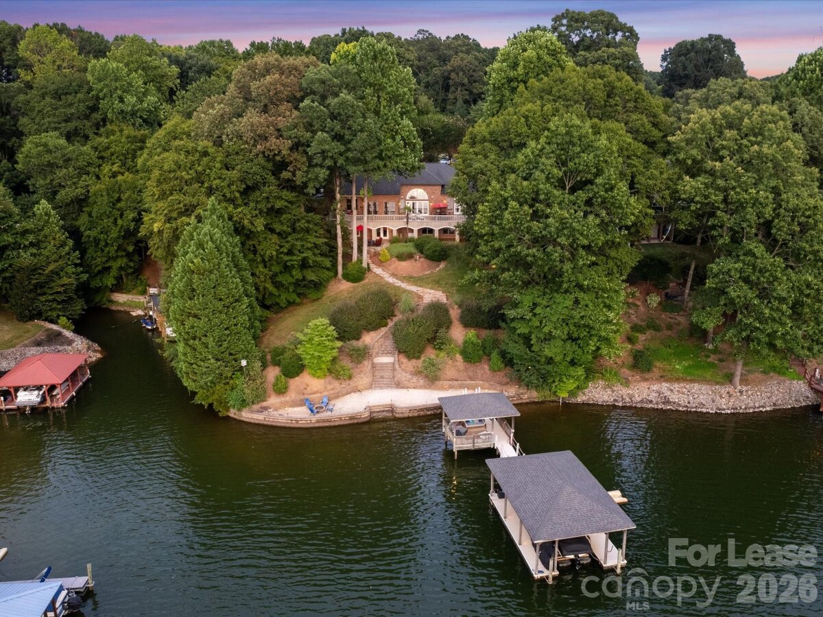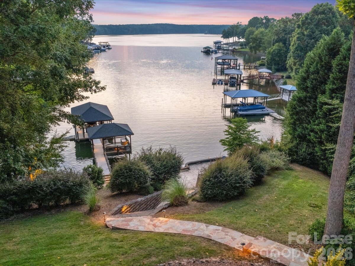 Experience gorgeous sunsets daily on this Lake Norman waterfront luxury home! This sophisticatedly decorated home comes fully furnished offering over 5,000 sq ft of living space. The home features hardwood floors throughout main level, gas fire place, panoramic windows with expansive views of the lake, filling the home with natural light. A formal dining room, a dedicated office space, as well as a sitting room with water views, that connects to the breakfast room and kitchen. The kitchen has been upgraded with an induction cook top, new dishwasher, microwave/oven combo, granite countertops, and breakfast bar. Primary suite is located on main level, water views, with a luxurious spa like bathroom including heated floors and remote controlled water settings for shower. Up the stairs you will find additional bedrooms, bonus room with workout area, and a private office with built in shelving and beautiful windows with natural light. The basement can be used as a second living quarters featuring a large bedroom and full bathroom, a large family room and billiard room with pool table, and kitchenette, perfect for entertaining guests with direct access to walk out to the lake. Outside relax on the breathtaking terrace. The yard is beautifully landscaped, with a stone walkway leading down to the private beach area with a fire pit and covered boat dock. Bring your own boat, the dock includes a boat lift, and jet ski ramp. The home is located close to nearby restaurants and entertainment that you can boat over to easily. Rent does include utilities with a cap, based on average monthly utilities.