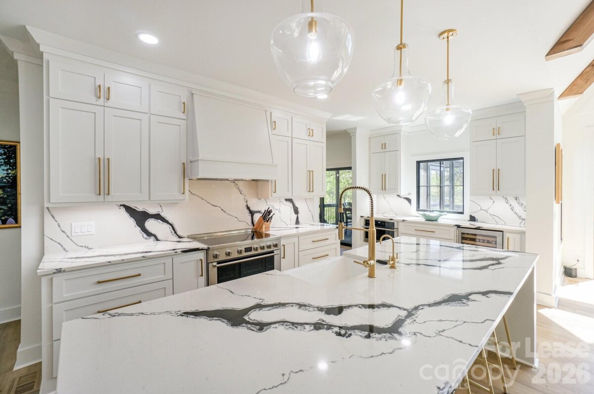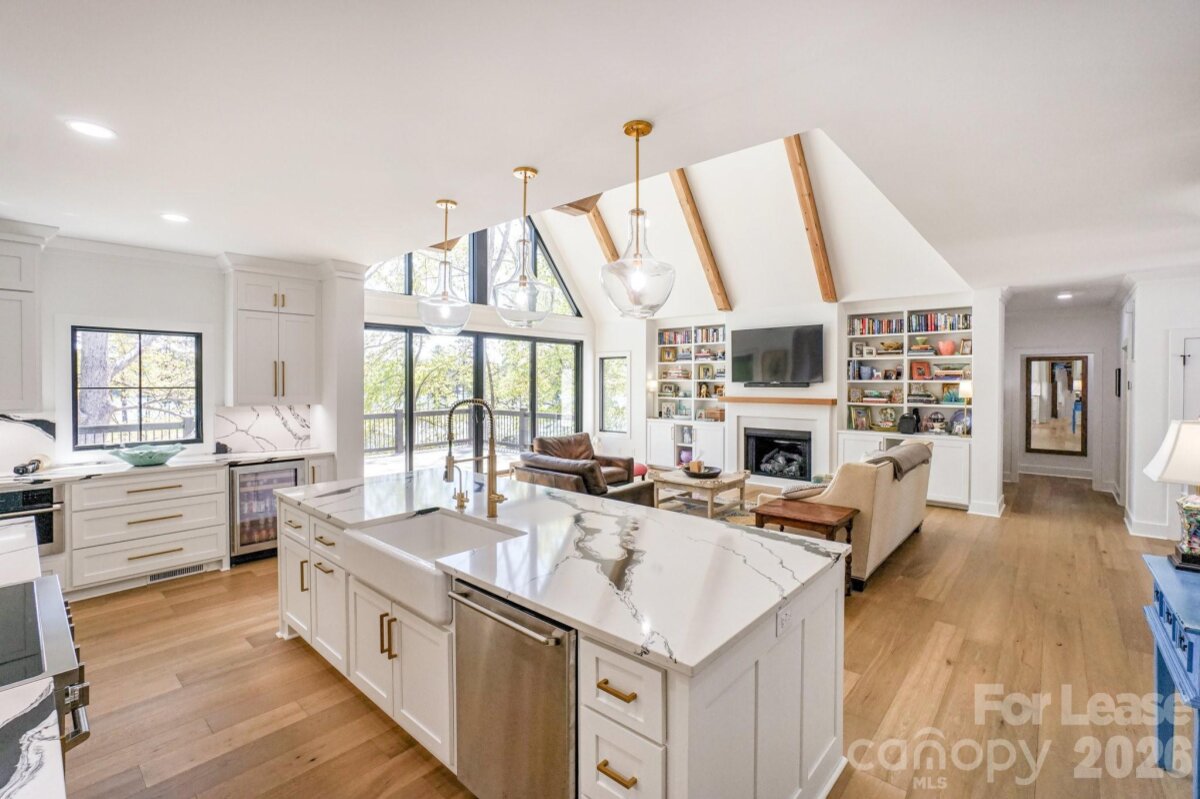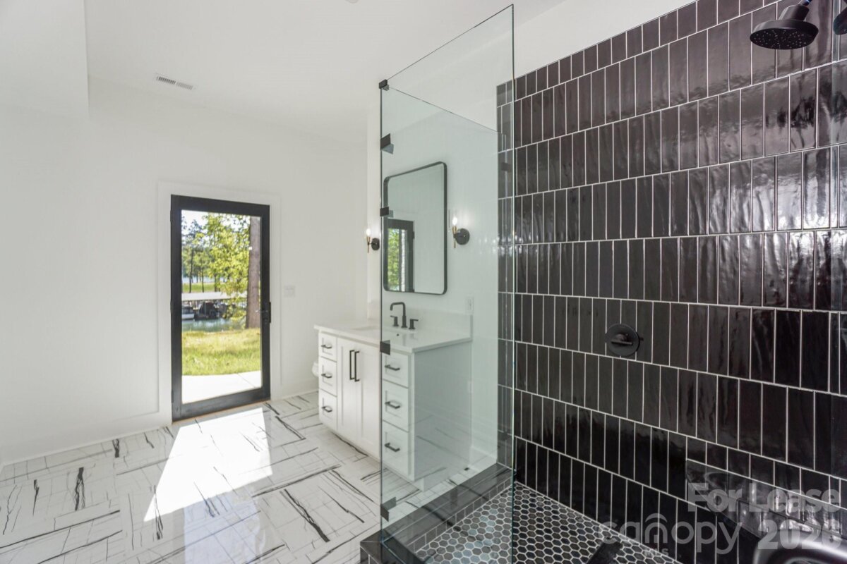 It is rare for a home of this caliber to be available for rent on Lake Norman. This exceptional, custom built home has been built with the highest quality materials and care. This 6,300 square foot home with a full walk out basement features 4 bedrooms, 5 full and 1 half bathroom, exercise room, office, several bonus rooms and an abundance of storage. The main floor of this stunning home features a soaring 2 story family room with beautiful fireplace and built-in's, floor to ceiling windows overlooking Lake Norman. The family room blends seamlessly into the entertainers kitchen featuring custom cabinets & Level 5 premium Panda White Quartz on the counters and back splash for a dramatic, show stopping style. Massive eat-at bar, commercial grade appliances and a huge walk in pantry make this kitchen a chefs delight. The private dining room leads to an oversized screened in porch connected to the huge deck! The home also features 2 primary bedrooms on the main level with a shared black & white bathroom with luxurious soaking tub and rain shower. Both walk in closets have custom closet systems. A lovely laundry room with direct access outside and powder room complete the main level. The main floor has direct access to the 1,000+ square foot 3 car side load garage. Upstairs features a lovely loft with lots of closet storage, 2 large bedrooms with private bathrooms with dramatic cabinetry, quartz counters, floor to ceiling tile showers and large light filled windows. The huge bonus room has a private black & white bathroom with quartz counter tops & floor to ceiling tile shower. The walk-out basement features a family room, exercise room, office and flex space. There is also a reverse osmosis water filtration system housed in the basement. The dramatic black and white bathroom has a door with direct access outside - my favorite feature - now wet towels and swim suits can be dropped off in the bathroom and not run through the house! The backyard leads to a beautiful staircase leading to your private, covered dock with boat and jet ski lifts. This is a deep water dock on a quiet cove. Across the cove a is quiet, well maintained, private marina with very little boat traffic. Beyond the marina you see endless water, trees and can even catch a glimpse of the Vitale Lakeside (formally Queens Landing) a new restaurant & lounge on the lake. You can drive your boat right there or to the other dining & entertainment options throughout the lake. The home is located in beautiful Pinnacle Shores that offers a pool, club house, boat storage, etc. While you have a peaceful location on the lake you are only a few miles from a new Publix, restaurants, dining & entertainment. Small/Medium dogs are allowed - breed restrictions apply - NO CATS. Home is also listed For Sale.