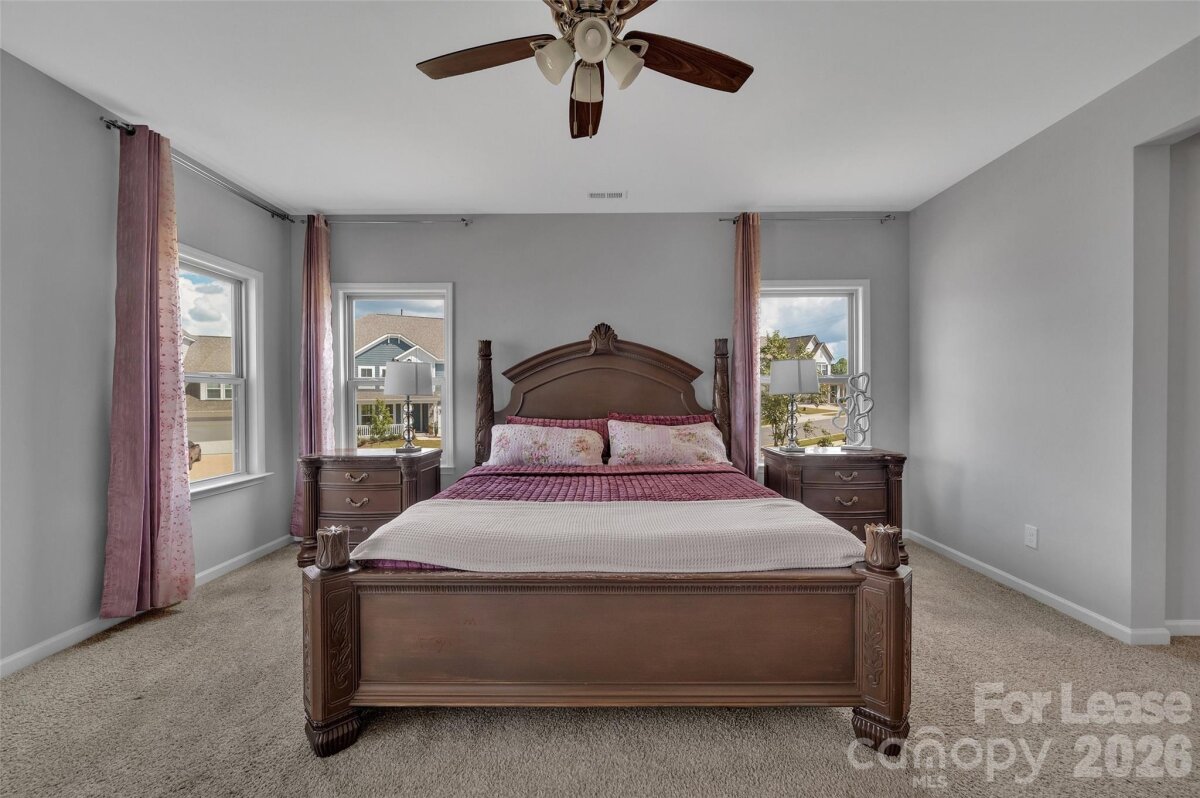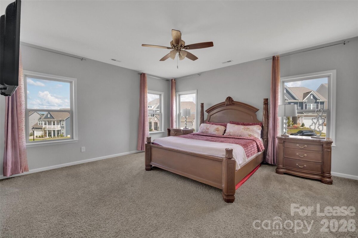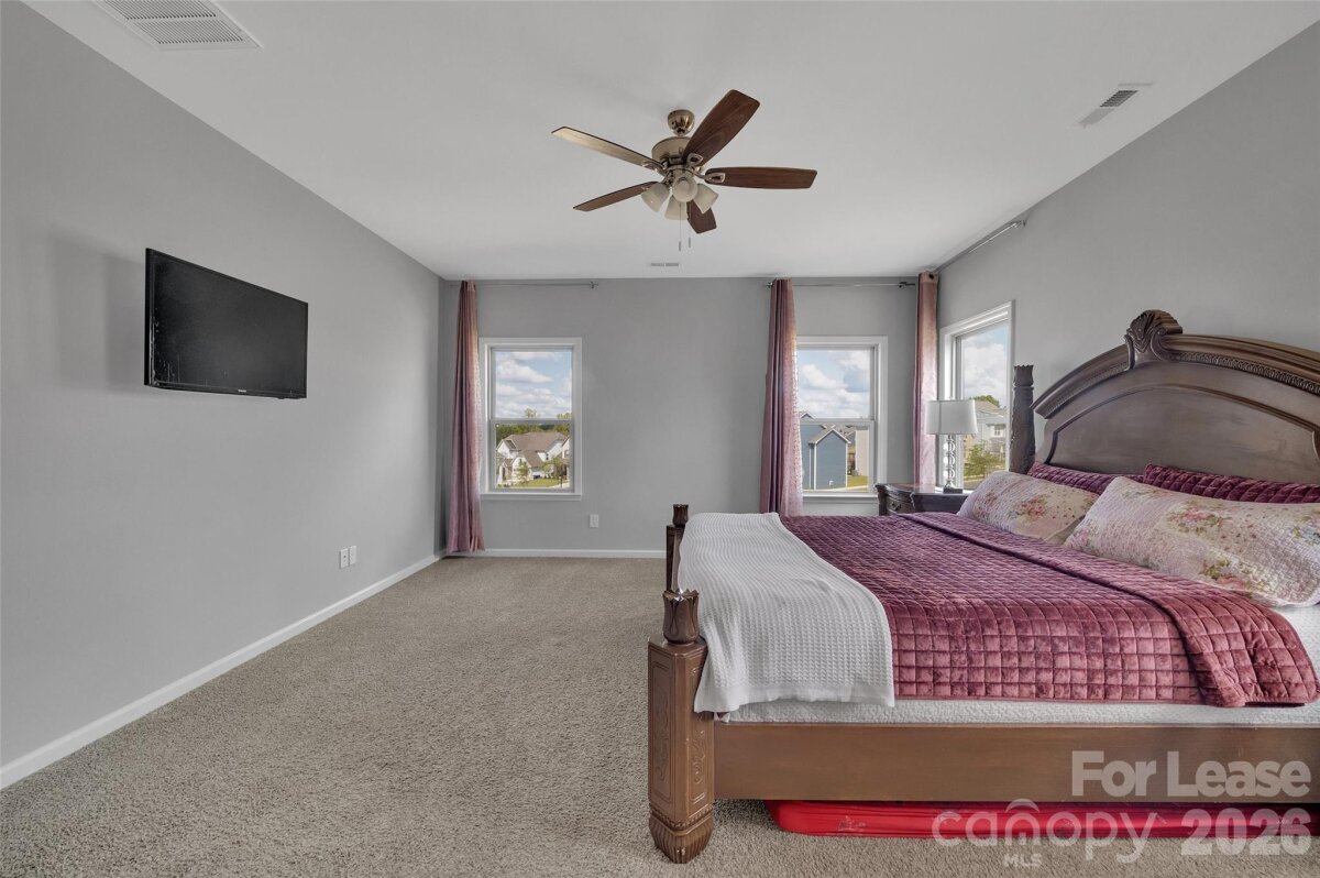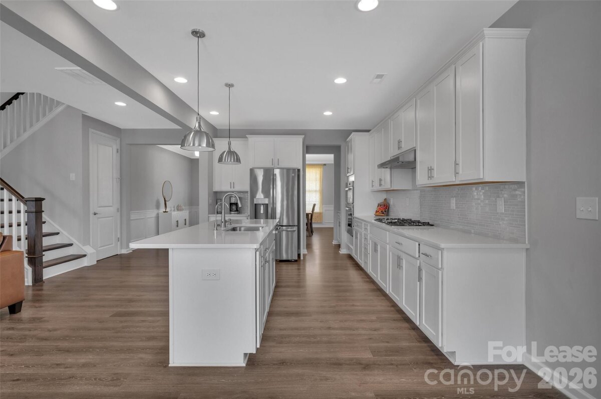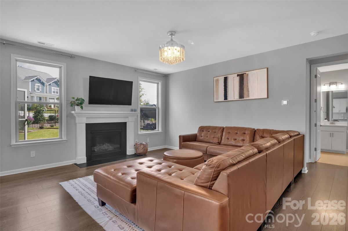 Welcome to this exceptional home in the desirable Reids Cove community in Mooresville, conveniently located near I-77 (Exit 33). Situated on a quiet cul-de-sac, this Waverly floor plan offers a great combination of comfort and style. The main level features an open-concept layout with abundant natural light, a spacious living area with a fireplace, and a modern kitchen with white cabinetry, quartz countertops, stainless steel appliances, gas cooktop, wall oven, and a walk-in pantry. A main-level guest bedroom adds flexibility and convenience. Upstairs, the primary suite provides a comfortable retreat with two walk-in closets and a private bath featuring dual vanities, a soaking tub, and a separate shower. The upper level also includes three additional bedrooms, two full bathrooms with a Jack-and-Jill layout, a loft area, and a dedicated laundry room. A covered outdoor space offers the perfect setting for relaxing or entertaining. Located just minutes from shopping, dining, and everyday amenities, this home offers a perfect balance of convenience and comfortable living.