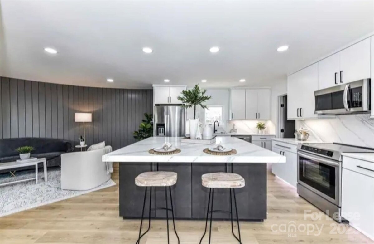 Beautifully designed, Waterfront home w/ year round, long range, Lake Norman views! It has a open floor plan with an upgraded kitchen that has an island/breakfast bar, upgraded appliances, quartz countertops, and a large walk-in pantry. There is a deck off the main level where you can go sit and relax while enjoying the amazing water views this house has to offer! The primary suite that is located on the main level offers the amazing views and vaulted ceilings in the bedroom while the bathroom has dual vanities, a garden style tub with a separate tiled shower! **This gorgeous home can be rented as $5,000 unfurnished or $5,500 furnished!!