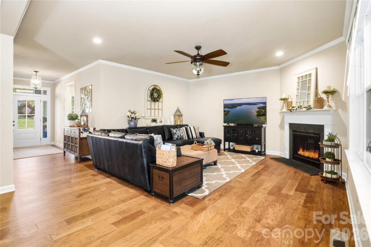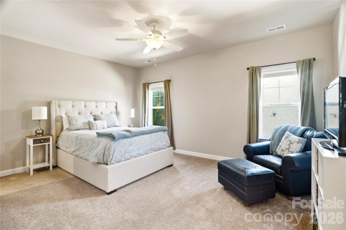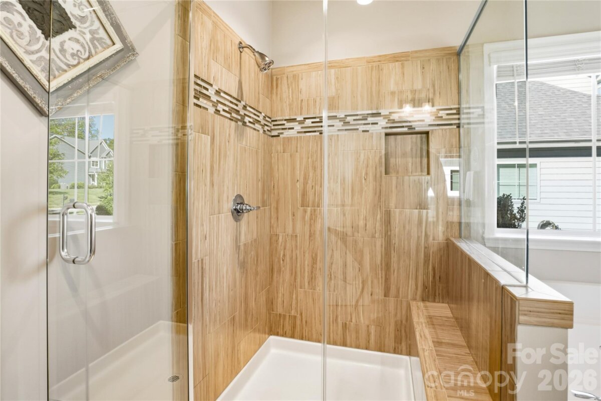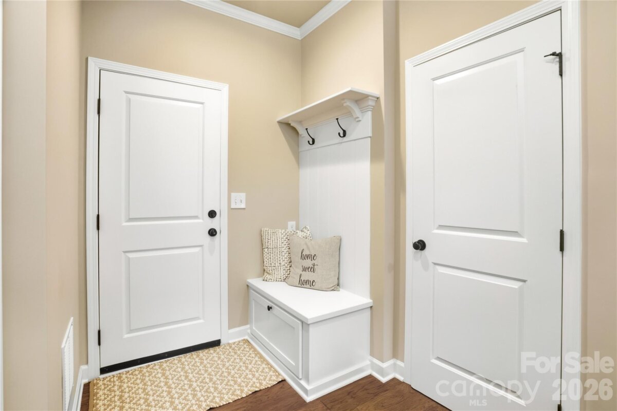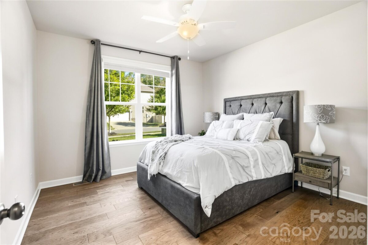 Now available in Ashlyn Creek! This impeccably maintained and upgraded home is available for showings starting Friday, 3/27. Step inside to a bright, open floor plan featuring brand new wood floors and an inviting living space, ideal for both everyday living as well as entertaining. Start your mornings on the charming front porch or unwind in the evening on the screened rear porch. The spacious kitchen is equipped with modern appliances and flows seamlessly into the dining area. The fully fenced backyard, complete with in-ground irrigation, backs to serene wooded common space, providing a rare sense of privacy. The main level features a luxurious primary suite, along with a secondary bedroom and full bath - perfect for guests or flexible living. Upstairs, you'll find a private third bedroom, full bath, oversized bonus room and abundant walk-in attic storage. Thoughtful upgrades throughout mean this home is truly move-in ready. Highlights include custom closet systems in all the bedrooms, ceiling fans throughout and a well-equipped laundry room with washer and dryer included. Additional system upgrades provide comfort and peace of mind including a whole-house surge protector, humidifier and dehumidifier, REME Halo LED air purification system and a meticulously maintained HVAC. The crawl space boasts updated insulation, vapor barrier and recently cleaned ductwork. Ashlyn Creek offers a neighborhood pool and tree-lined sidewalks for walking. The proximity to MGSD schools and a brand new Publix make this a fantastic location - close to downtown Mooresville, Liberty Park, shopping and dining! Don’t miss your first opportunity to tour this home at the Open House Friday from 4–6 PM. Private showings also available - schedule your tour and experience all that 189 Branchview Drive has to offer!