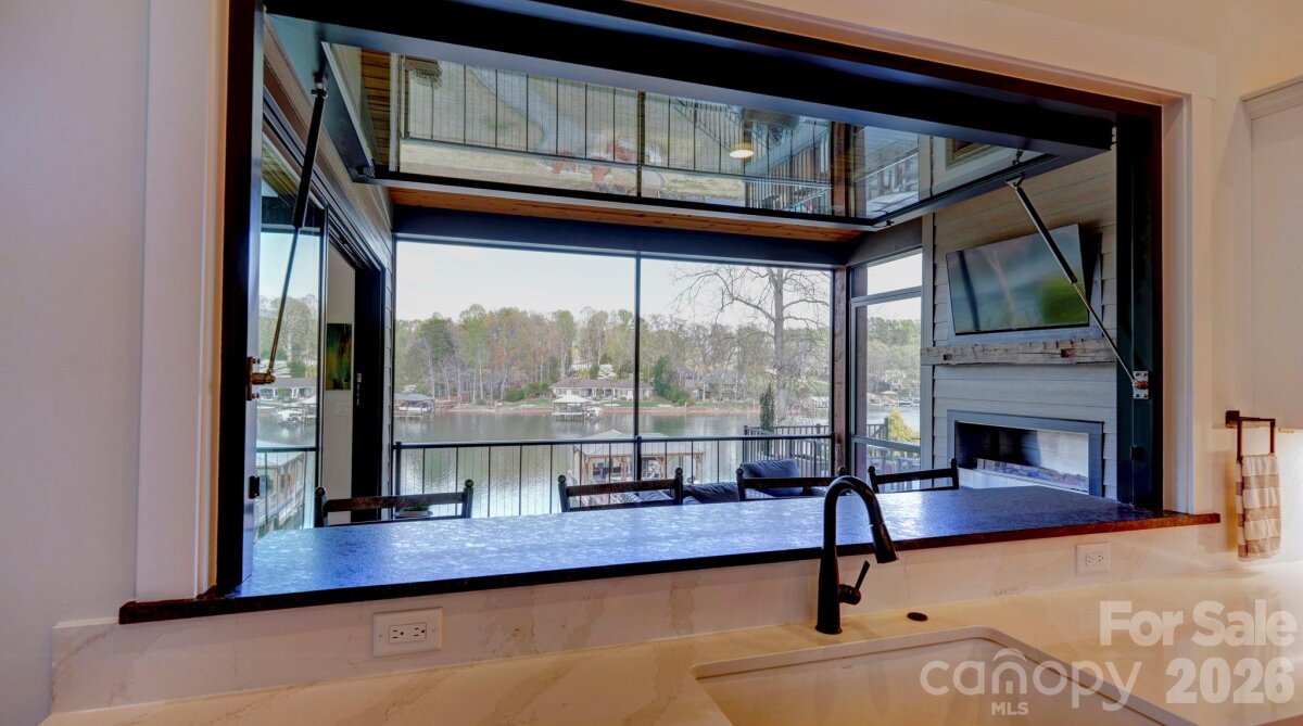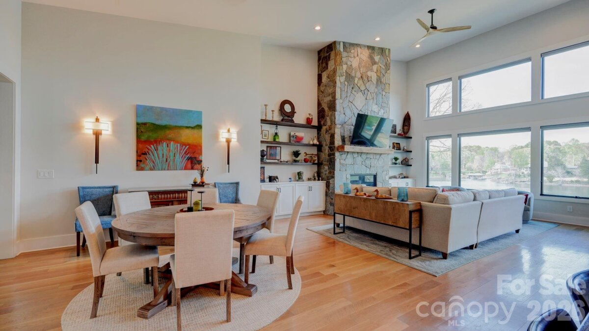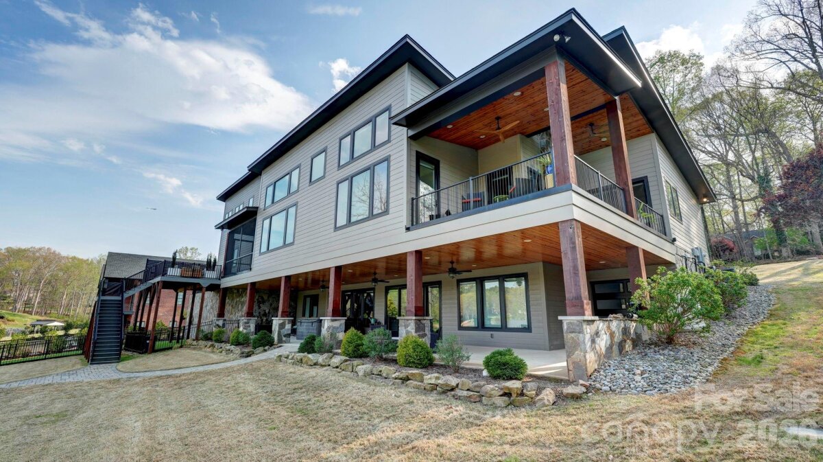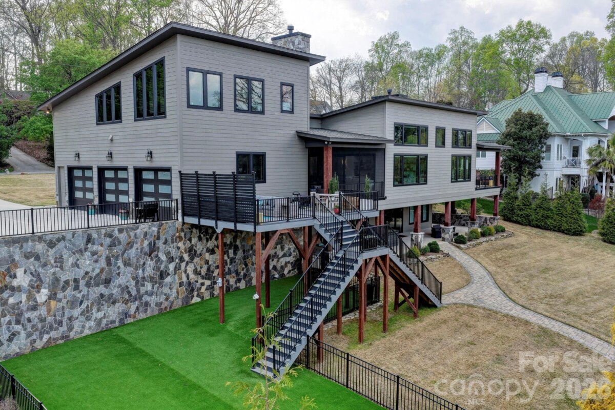 Experience luxury lake living in this custom Modern Craftsman home built in 2021, perfectly situated on a large lot in Mooresville with no HOA. Thoughtfully designed with exceptional craftsmanship and one-of-a-kind details, this home offers a truly elevated lifestyle. At the heart of the home is a grand chef’s kitchen featuring custom cabinetry and stunning black walnut accents milled directly from a tree on the property, showcased in the trim, floating shelves, range hood, and island. The adjoining family room continues the theme with custom walnut built-ins, creating a warm yet refined gathering space. Designed for flexibility and comfort, the home offers side by side, dual primary suites, each complete with a private bathroom, walk-in closet, and dedicated office area—ideal for multi-generational living or ultimate guest accommodations. The main primary suite also features a private covered and screened porch for a peaceful retreat. This home is an entertainer’s dream, highlighted by expansive sliding doors and a custom pass-through kitchen window that seamlessly connect indoor and outdoor living to a large screened porch with fireplace and an oversized deck. The walk-out basement is equally impressive, featuring two additional bedrooms with custom built-in bunk beds and private baths, a spacious living area, exercise room, and a must see, custom wine cellar. Step outside to enjoy the beautifully designed exterior, including a huge covered patio, custom fire-pit, and a fenced in, turf dog run. Just off the lower patio, you’ll find a large storage area perfect for all your lake gear and outdoor essentials. Waterfront living is complete with a newly built 1,000 sq ft covered dock and 7,000 lb boat lift, making this property ideal for enjoying Lake Norman to the fullest. With abundant storage, custom built-ins throughout, and unmatched attention to detail, this home is a rare opportunity in one of Mooresville’s most desirable locations.