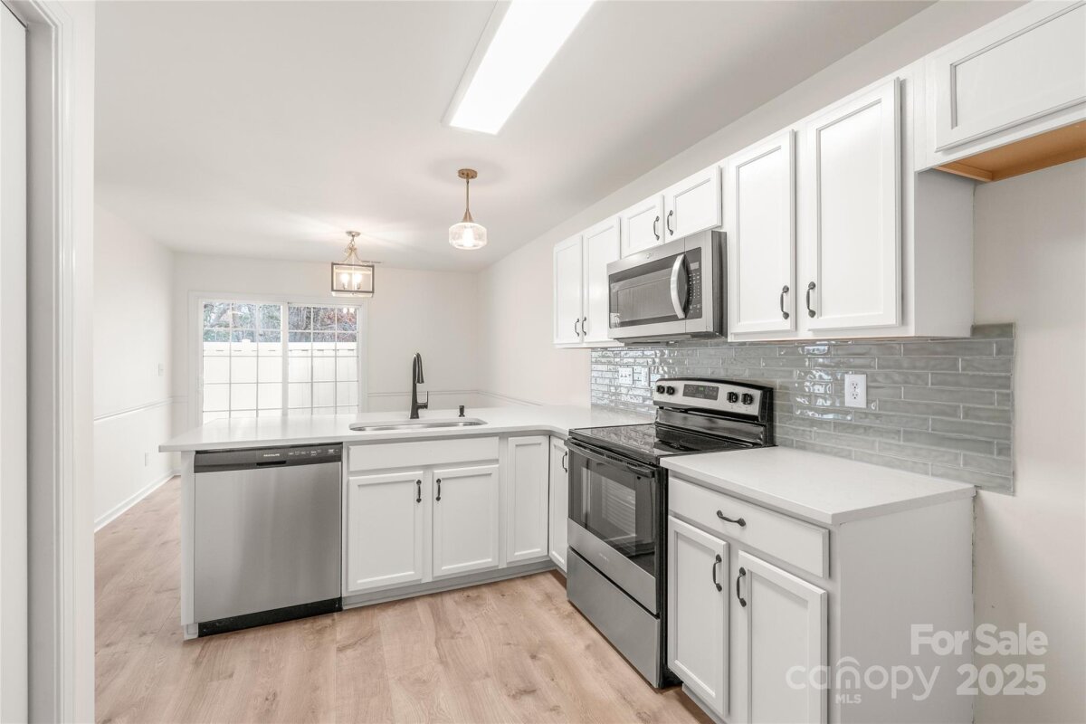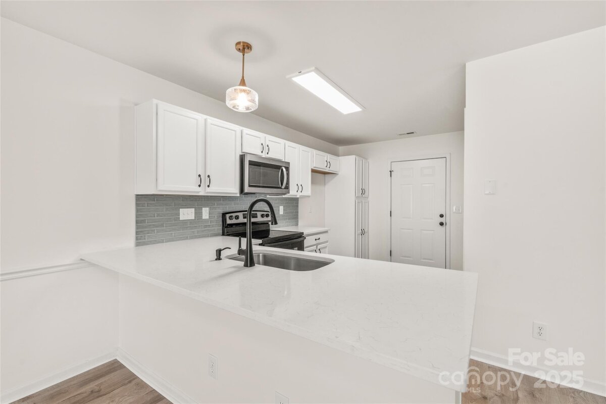 Located in Mount Holly is a Fully renovated, Move-in ready Ranch Townhome with a one car garage! Walk inside and you will see a spacious living room, a upgraded kitchen, and LVP flooring throughout. The kitchen features Quartz countertops, stainless steel appliances, and a breakfast bar. The Primary bedroom includes an en-suite Bathroom with a fully tiled shower, new vanity, and new toilet. Other upgrades include: New HVAC system, new water heater, all new appliances, light fixtures. Conveniently located minutes away from Downtown Mount Holly, Charlotte Douglas Airport, US National White Water Center, and I-485. 35 minute drive to Crowders Mountain State Park. Schedule an appointment to check out this Beautiful home!